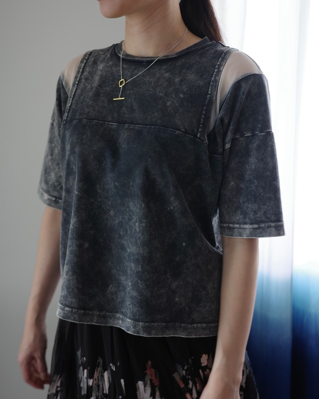 NAKAGAMI / ケミカル加工肩メッシュTシャツ