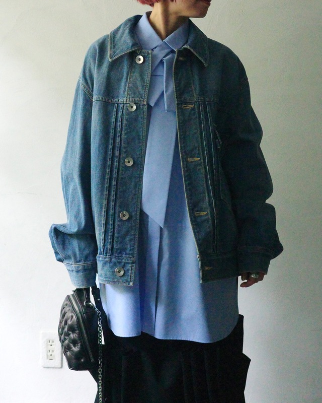 -item info- US NAVYのCPOシャツをベースとしたカジュアルなブラウスを、ショート丈で女性らしくアップデート。大き目のパッチポケットとたっぷりとボリュームを持たせた袖がデザインの特徴となっております。フロントサイドに1箇所、バックサイドに2箇所タックを入れることで立体的になり、ショート丈との最適なバランスを構築しています。肩回りと袖はゆったりとした設計で、袖を少し長めの設計にすることでカフスがブラウジングされ、袖口のタックにより更にボリュームを持たせています。また、釦は使用箇所によりサイズを変え、すっきりとしたディテールに仕上げています。高級感溢れる柔らかな質感と独自のパターン設計で、ミリタリーアイテムをモダンに進化させたTHE RERACSならではの一枚です。 ( 着用149cm / 36) 【 THE RERACS (ザ リラクス) 】 2010年デビューの新鋭ジャパニーズブランド「THE RERACS(ザ・リラクス)」。 デザイナーの倉橋直実氏は、セレクトショップ勤務中にパターンメイキングやテキスタイルを学び、その後ブランド活動をスタート。 ベーシックでありながらも既成概念に捉われず、時代に合ったシルエットや素材を追求しながら、着る人に依存する、着る人を美しくするデザインを提案している。 - THE RERACS 24FW - 2024年秋冬のテーマは“INVENTOR” 春夏のテーマ“INVENTION”に続くシーズンです。 普遍的・日常的なものの組み合わせによる摩擦によって生まれる新しいクリエーション。 一見してトラディショナルなアイテムでも、 耐久性と質感のラグジュアリーを両立させた素材や継続可能性を考慮したハイブリット素材を使用し、 「ザ・リラクス」らしいパターン設計に落とし込むことで、 時代に合ったバランスかつ本質的なラグジュアリーを提案しています。 color : black size:36,38 36 / 身幅124cm,袖丈75.6cm, レングス45cm 38 / 身幅128cm,袖丈77.4cm, レングス46cm material: WOOL 100%