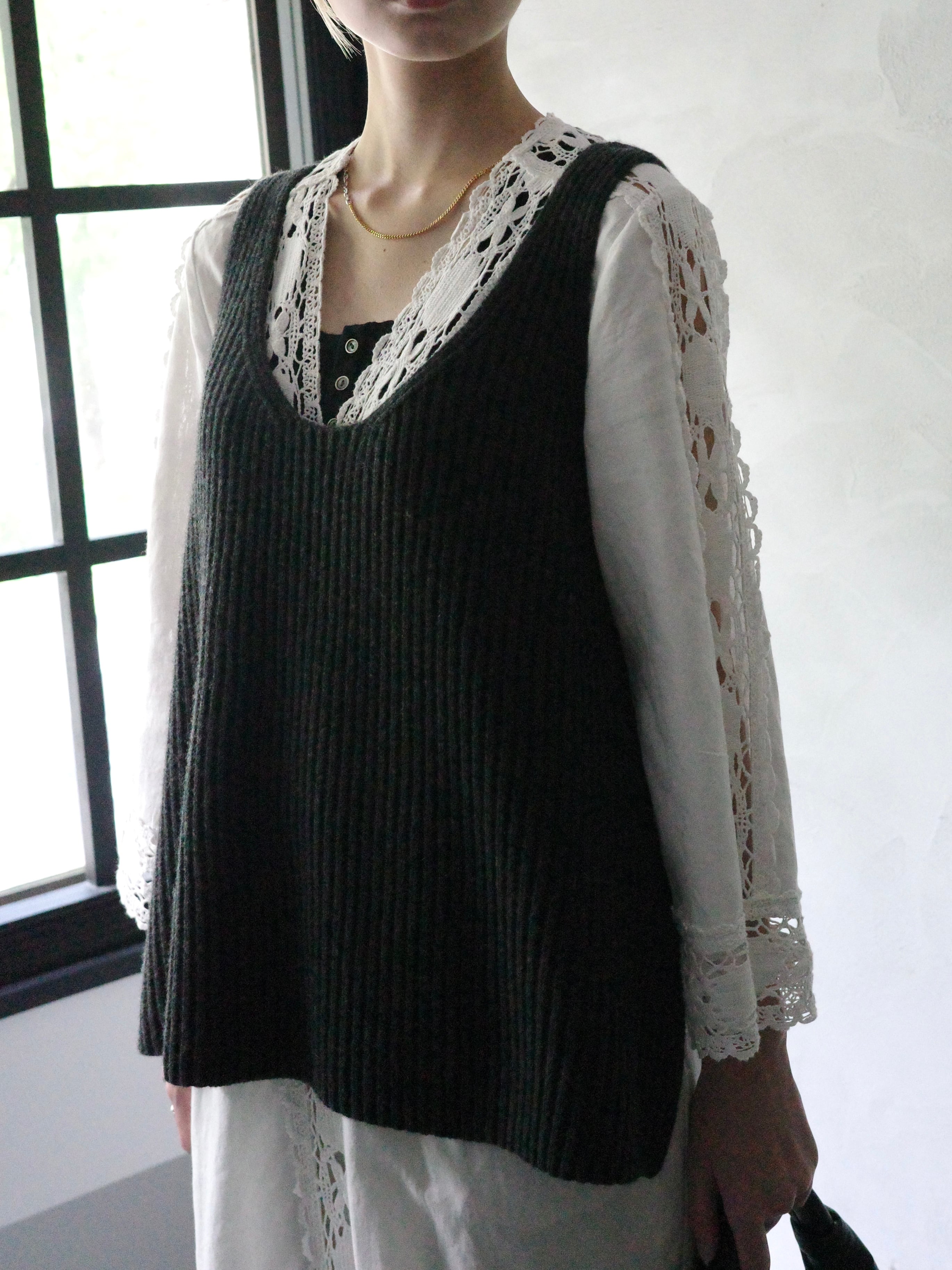 同系色の透かしレースが施されたリラックスしながらもエレガントな一枚。