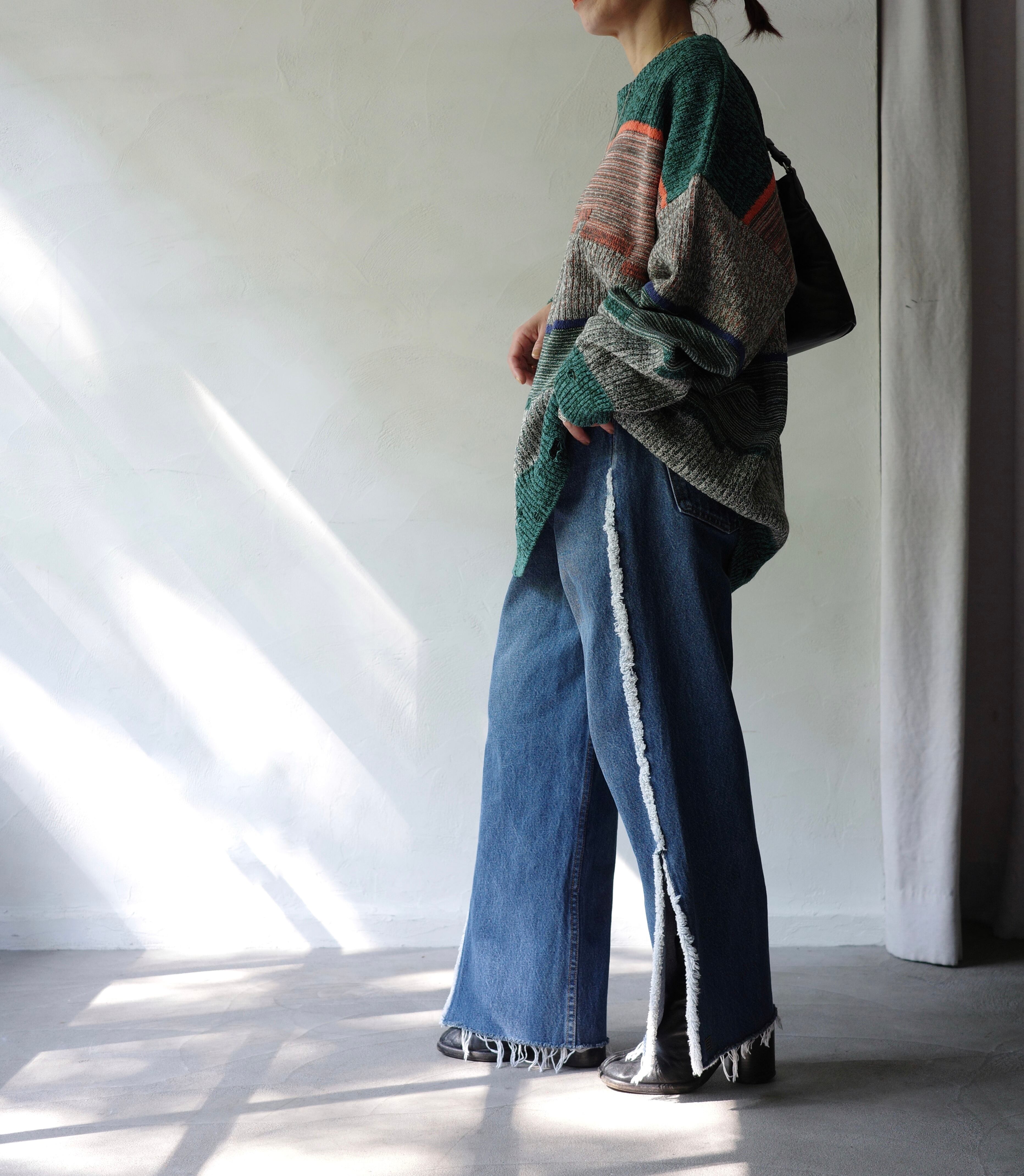 Levi's USEDデニムを職人の手作業によりリメイクしたパンツです。