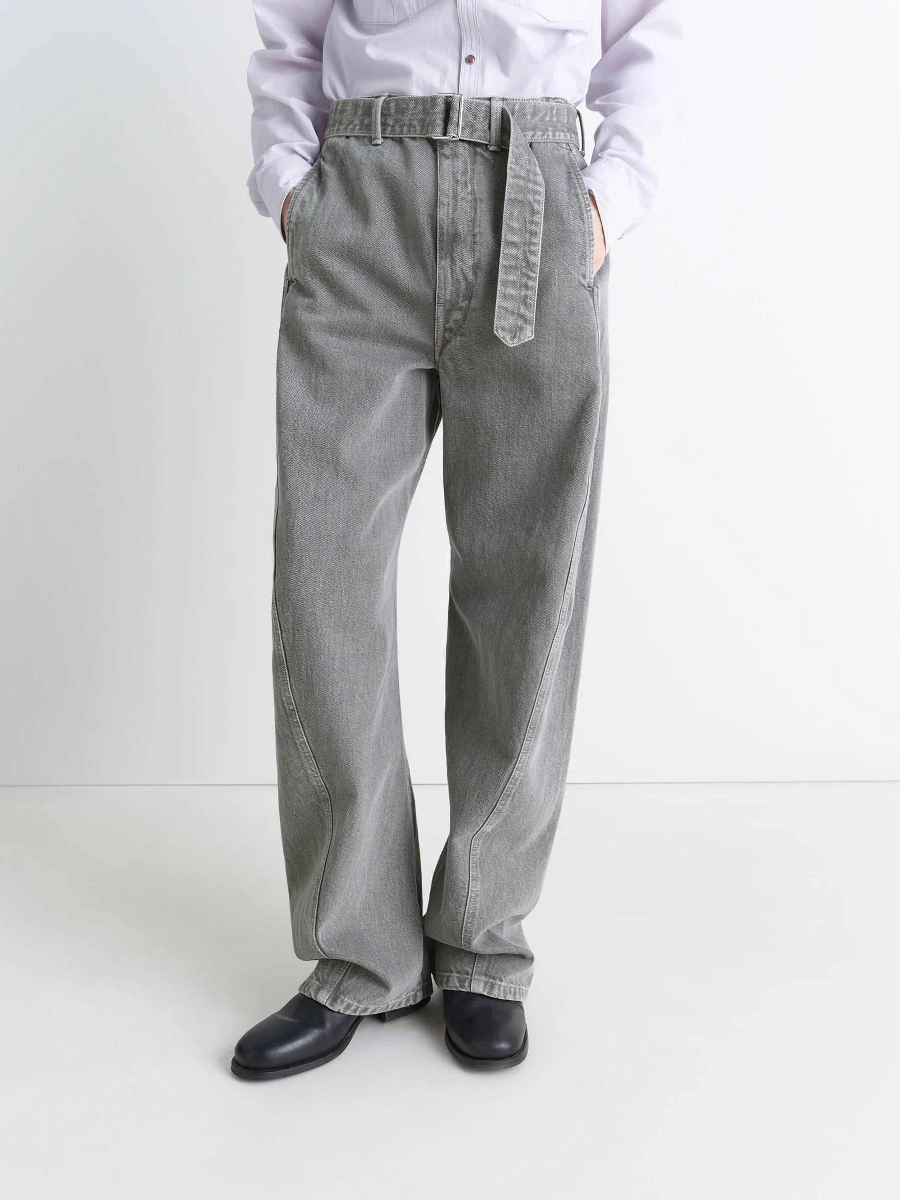 ルーメールの定番アイテムであるこのユニセックスパンツは、アイコニックなツイストパンツを現代風にアレンジした一着です。ルメール定番素材である、厚手で丸みのある生地に、雪面を思わせる顔料染めを施した、ガーメントダイ加工のスノーヘビーデニムを使用。