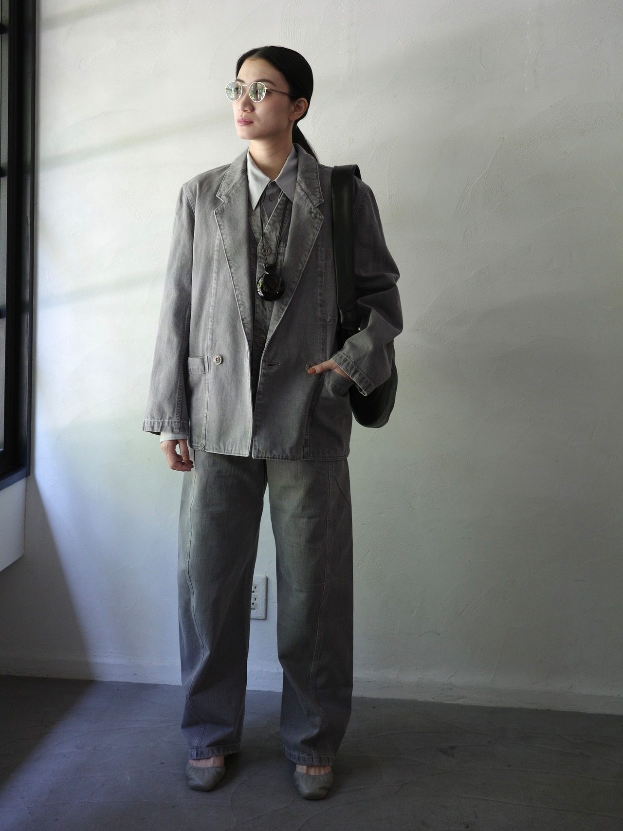 素材やカラーも、日常に寄り添う温かみが特徴だ。ニットには、暖かみあるヤク、アルパカ、メリノウールなどをブレンド。デニムにはウォッシュ加工を施し、力まぬ余裕を漂わせる。カラーにおいても、ライトグレーやトープ、オフホワイトなど、柔らかなトーンを軸に、スカーレット、インディゴ、コバルトブルーでアクセントを加えている。