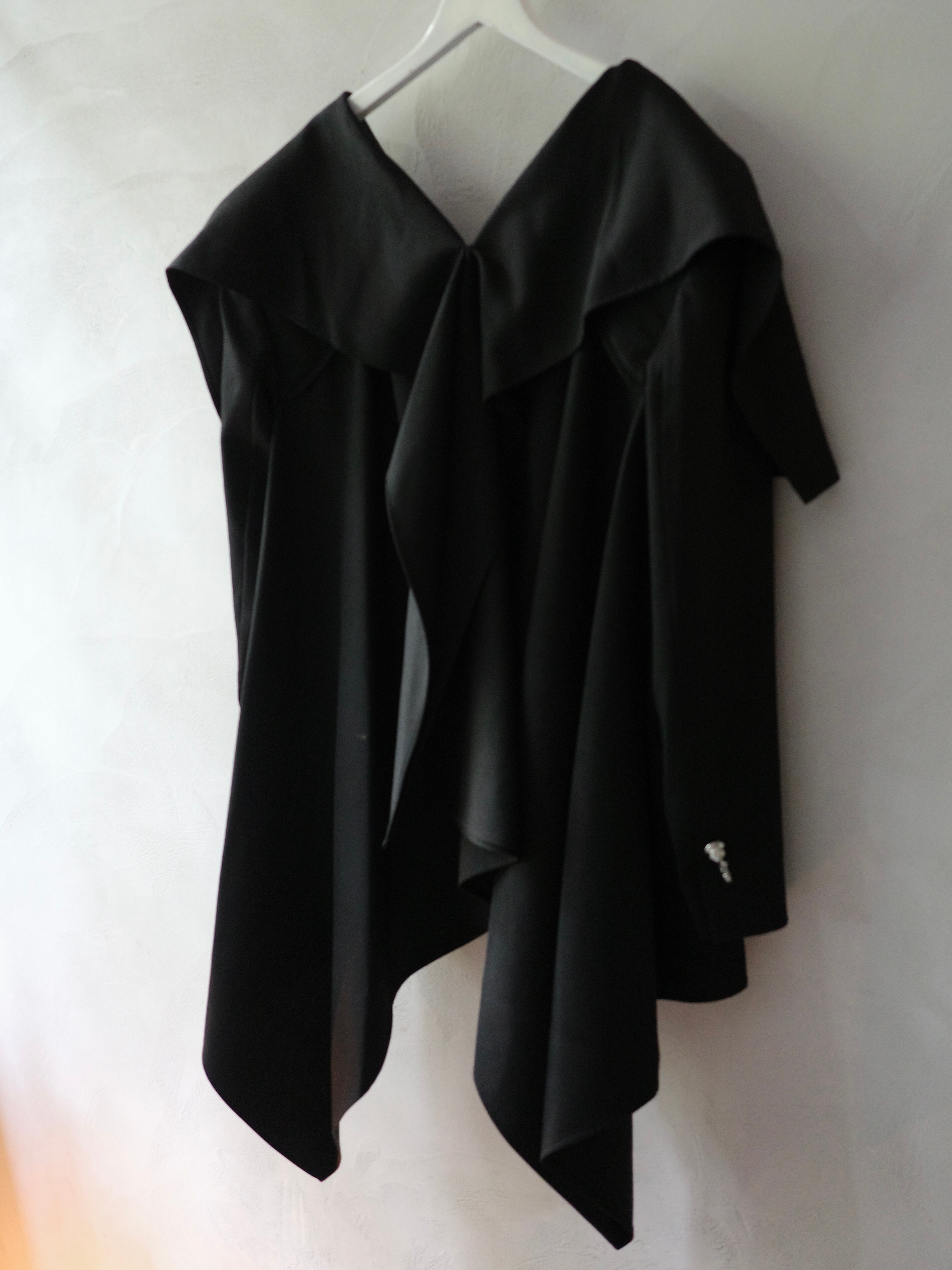 「四角形の布に穴をあけて、袖(肩)をとりつける。」というアイデアから生まれたジャケット。