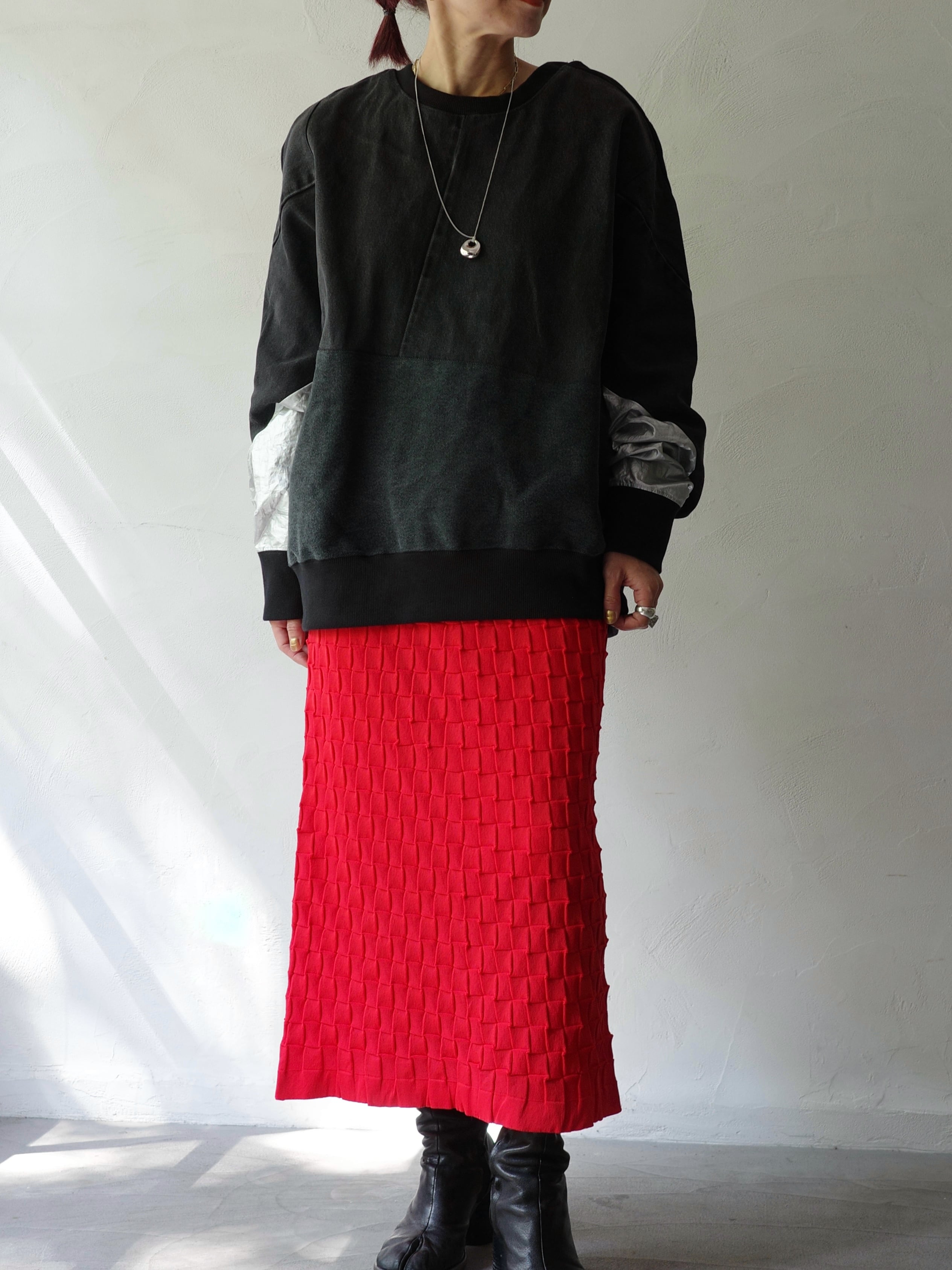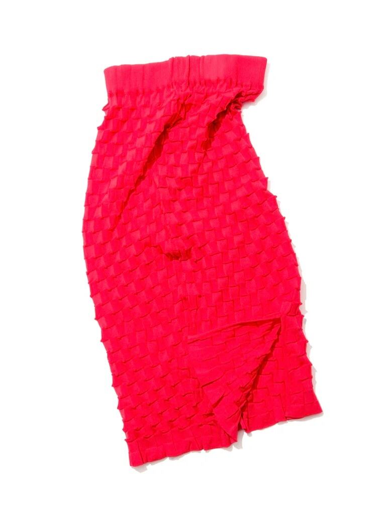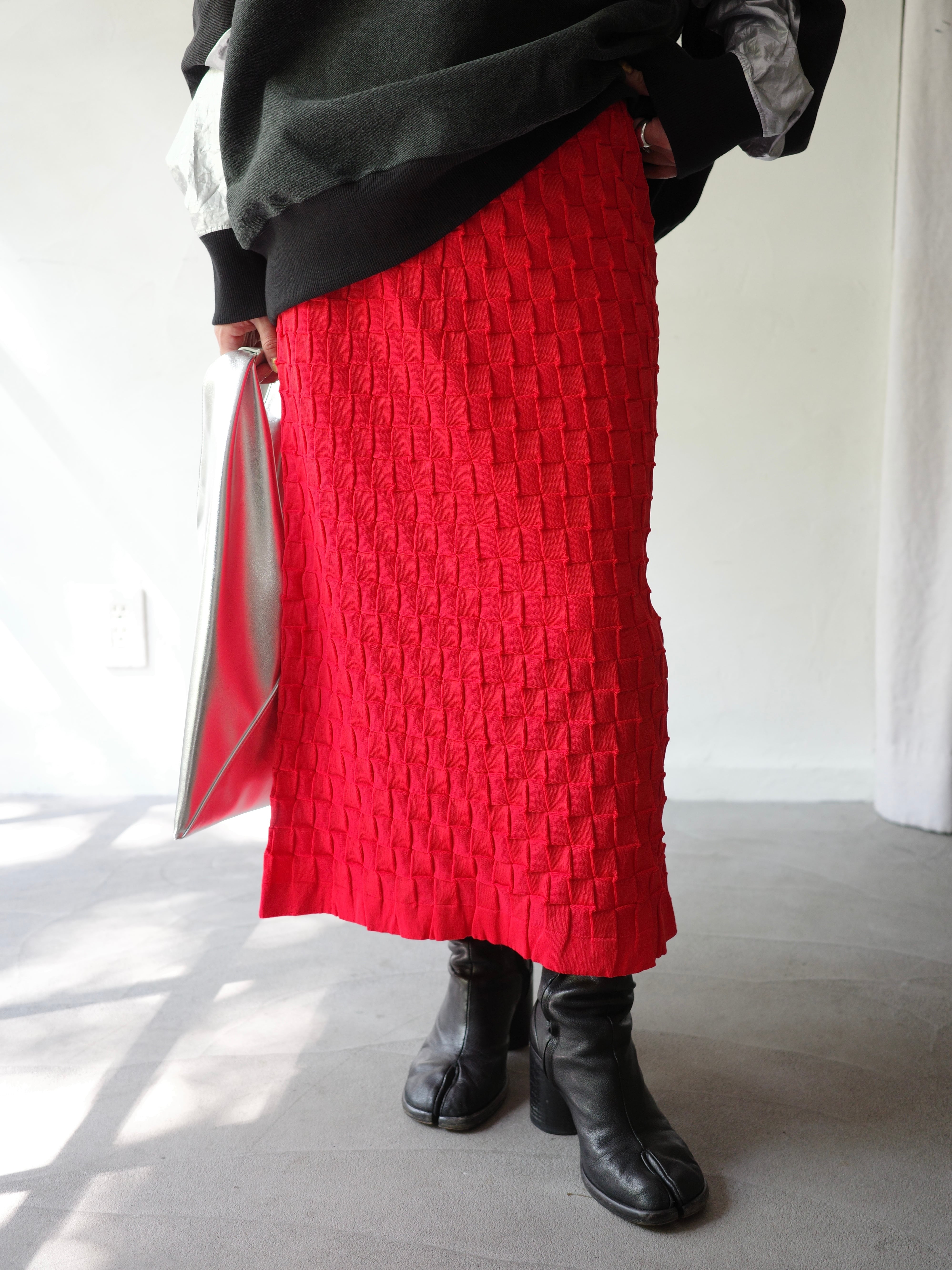 ポコポコと立体感のあるデザインがかわいいニットスカートです。