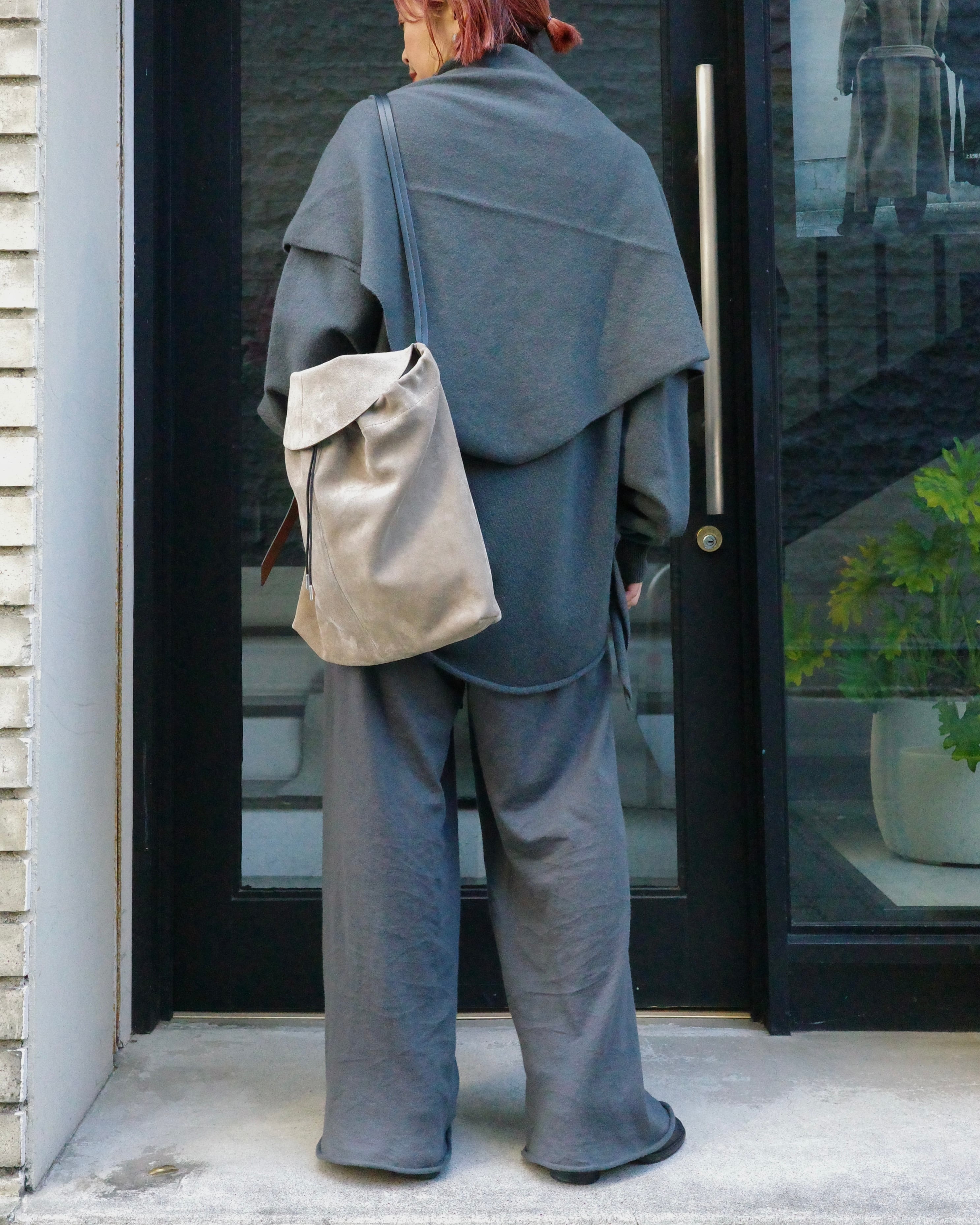 軽量コットンカシミア混紡素材を使用した、ややテーパードのニットパンツ。