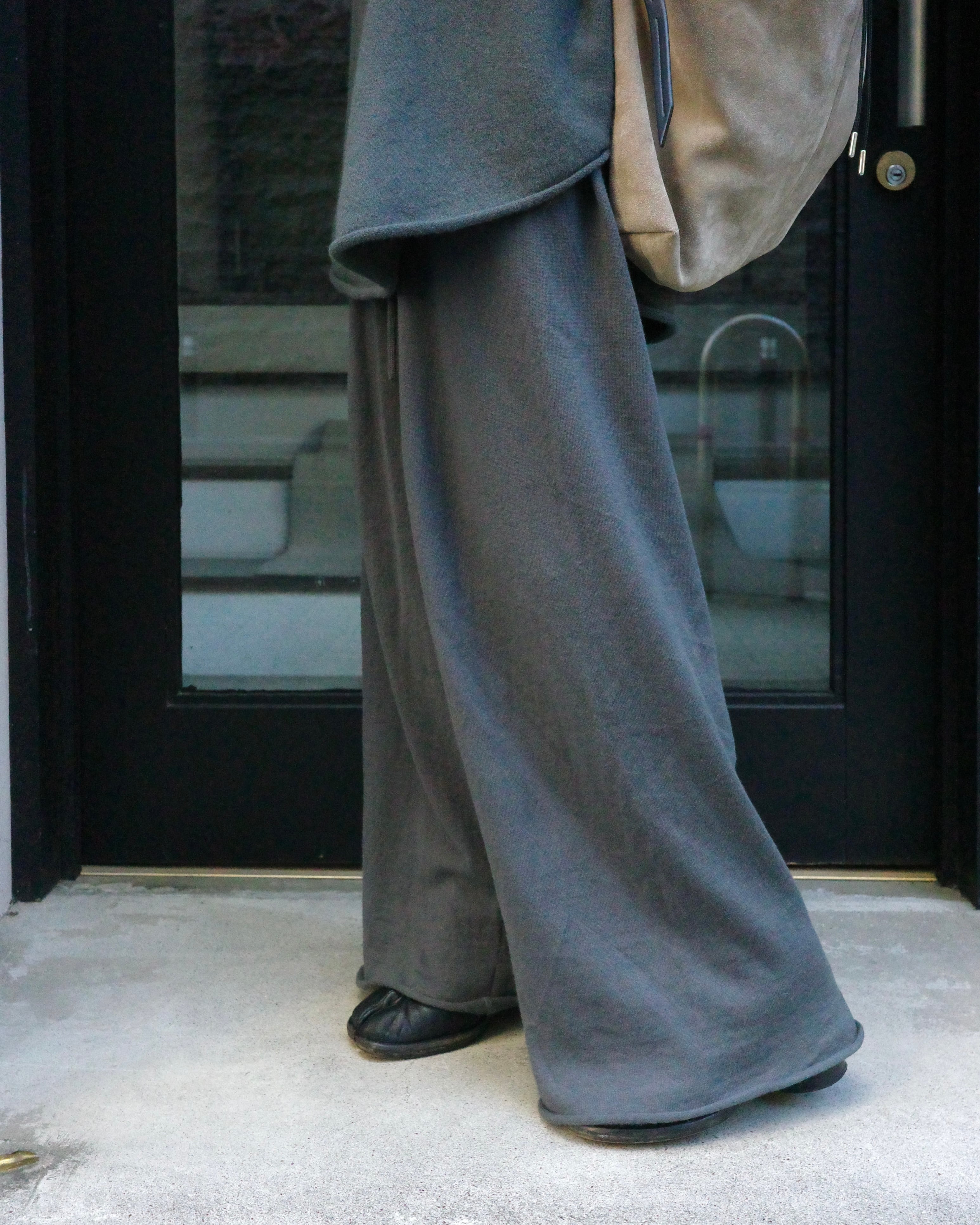 スリットポケットが2つ付いています。内側にドローストリングが付いており、フィット感を調節できます。裾は切りっぱなしの裾で仕上げられているため、お好みの長さに簡単にカットできます.