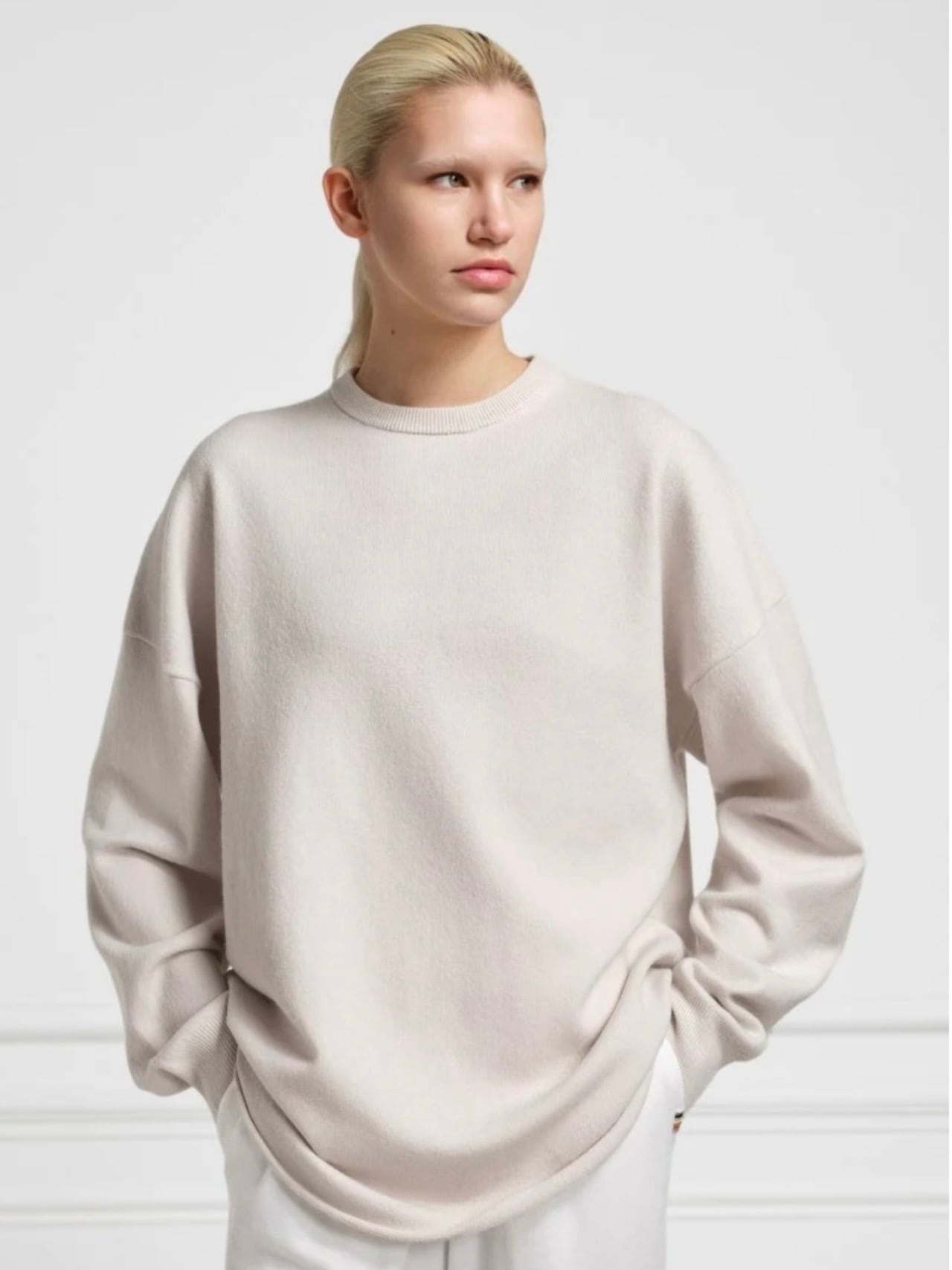 クルーホップは、extreme cashmrerベストセラーのアイテムでもあり、初めてデザインされたカシミヤセーターです。ジェンダーレスで単一のサイズですべてを生産するコンセプトの始まりです。 デザインは特大の形状とラウンドヘムラインを持つ快適なフィットカシミヤクルーネックセーターです。