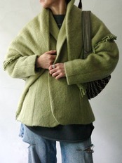 muller of yoshiokubo / MOHAIR JACKET W/FRINGE STOLE -SAGE-