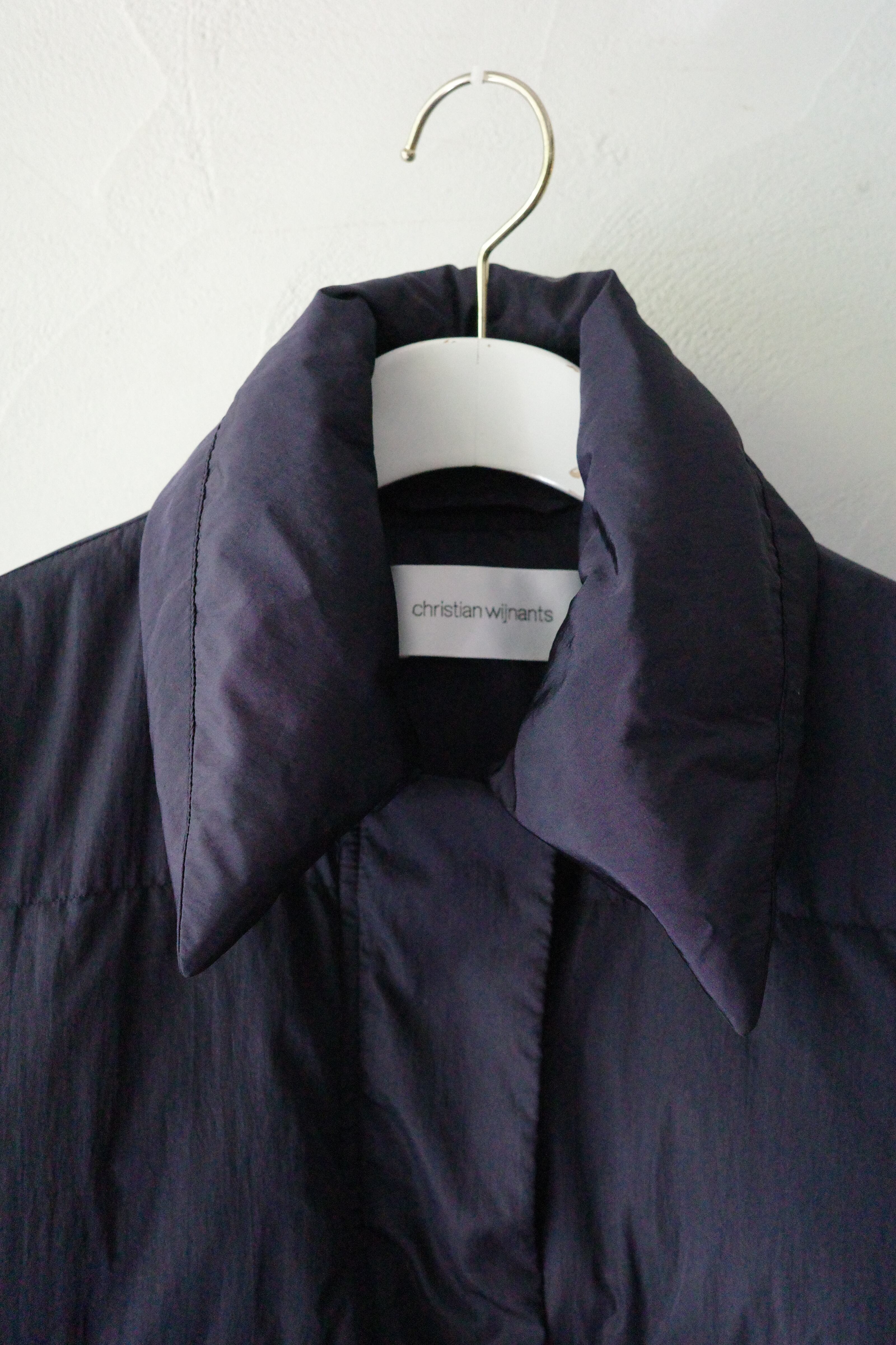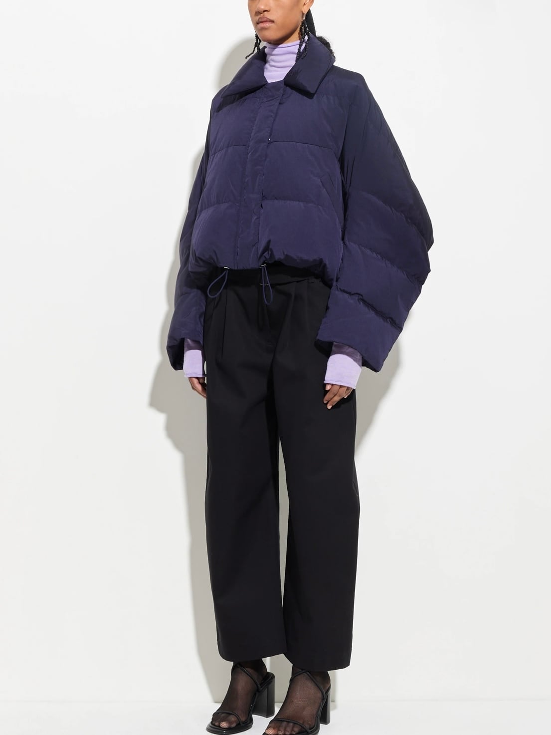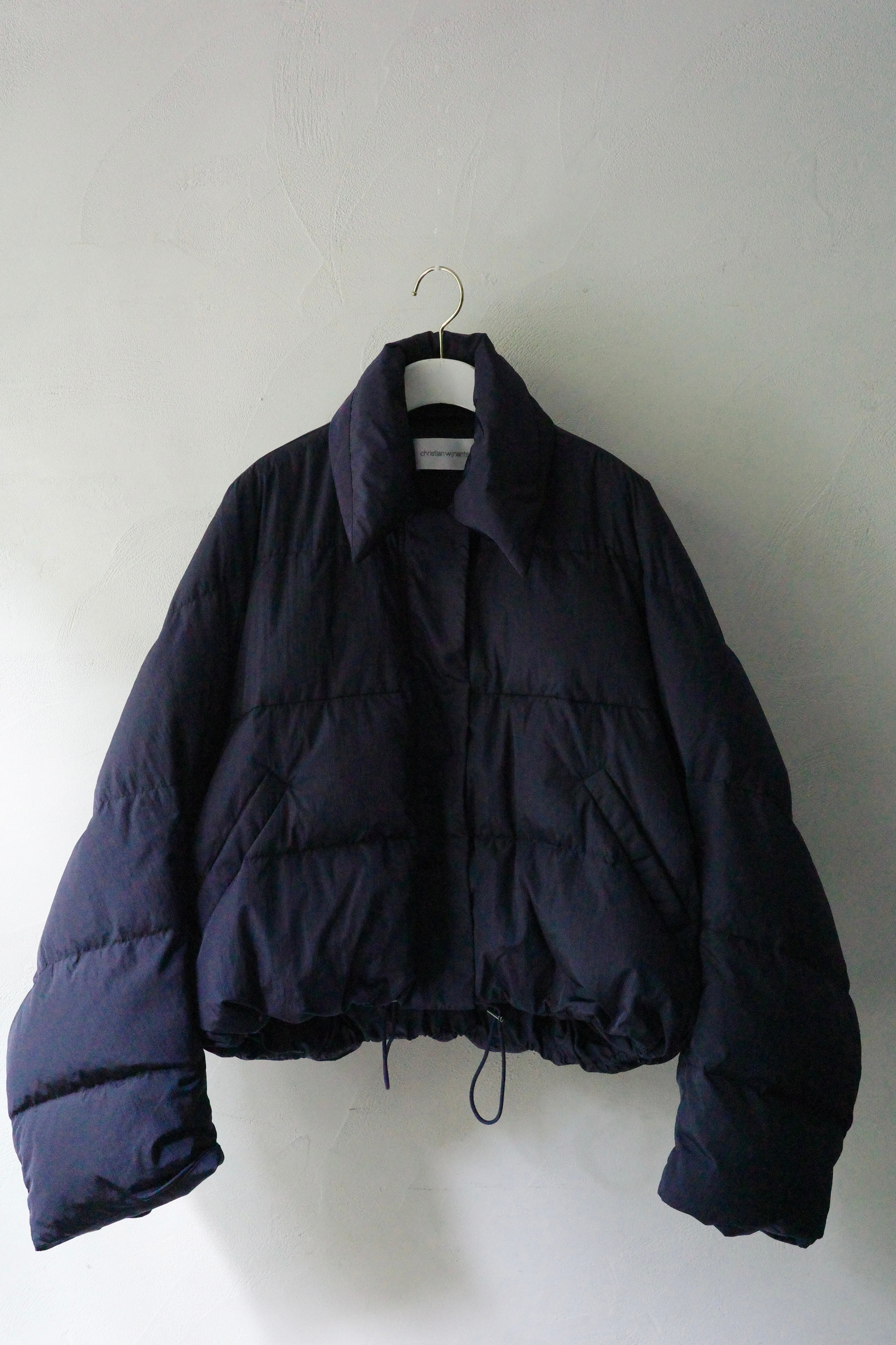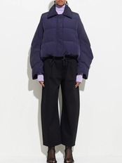 彫刻的なボリュームと柔らかな構造が特徴のクロップド丈パファーダウンジャケット。