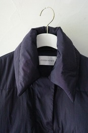 ほのかな光沢感のあるナイロン素材を使用。ゆったりとした襟と、袖口に向かって緩やかにテーパードするワイドスリーブが特徴です。