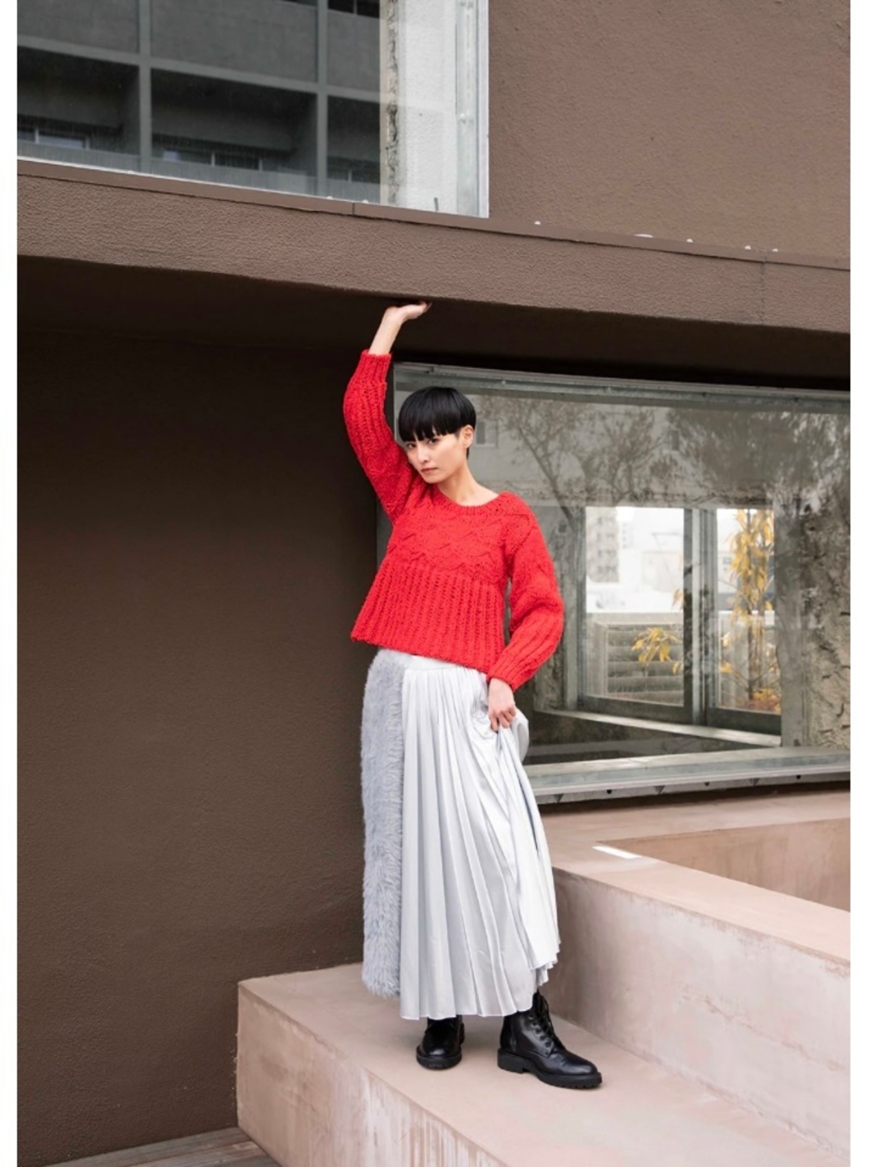 建築の強固さとニットの柔らかさ、そしてカラーを組み合わせて、豊かな都市空間をイメージしました。