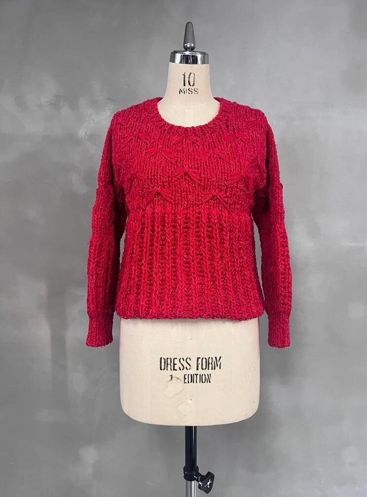 リボンの編み目がかわいいコンパクトに設計されたハンドニットです。
