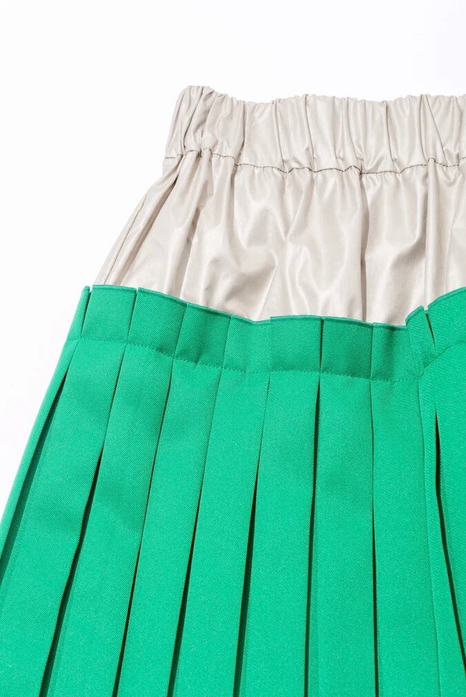 ウエスト部分を柔らかいタフタで切替たデザインプリーツスカートです。