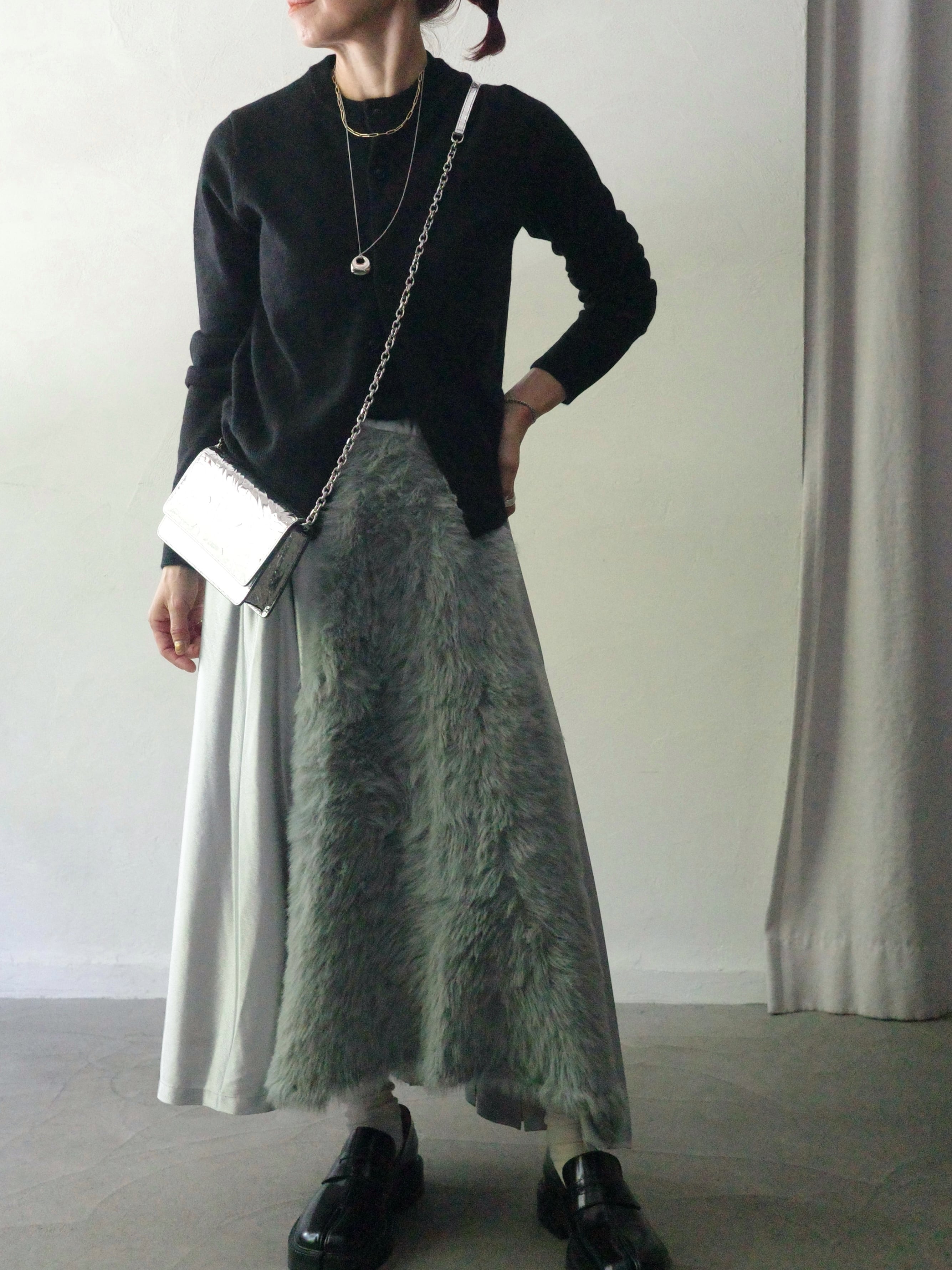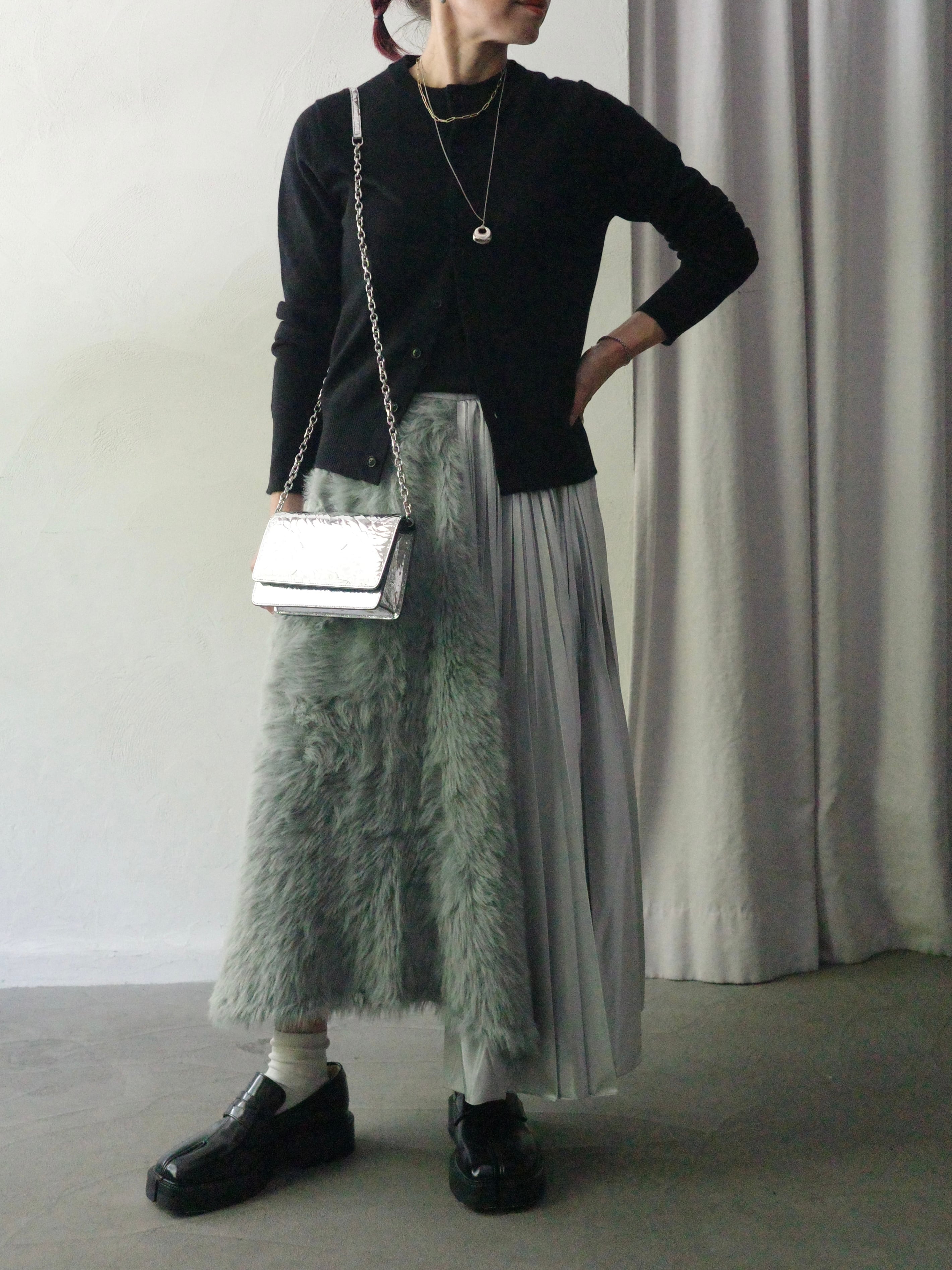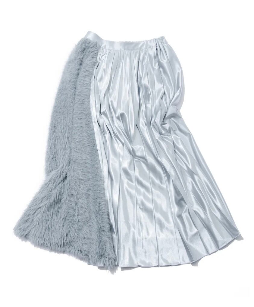 NAKAGAMI / ファー切替プリーツスカート -silver-