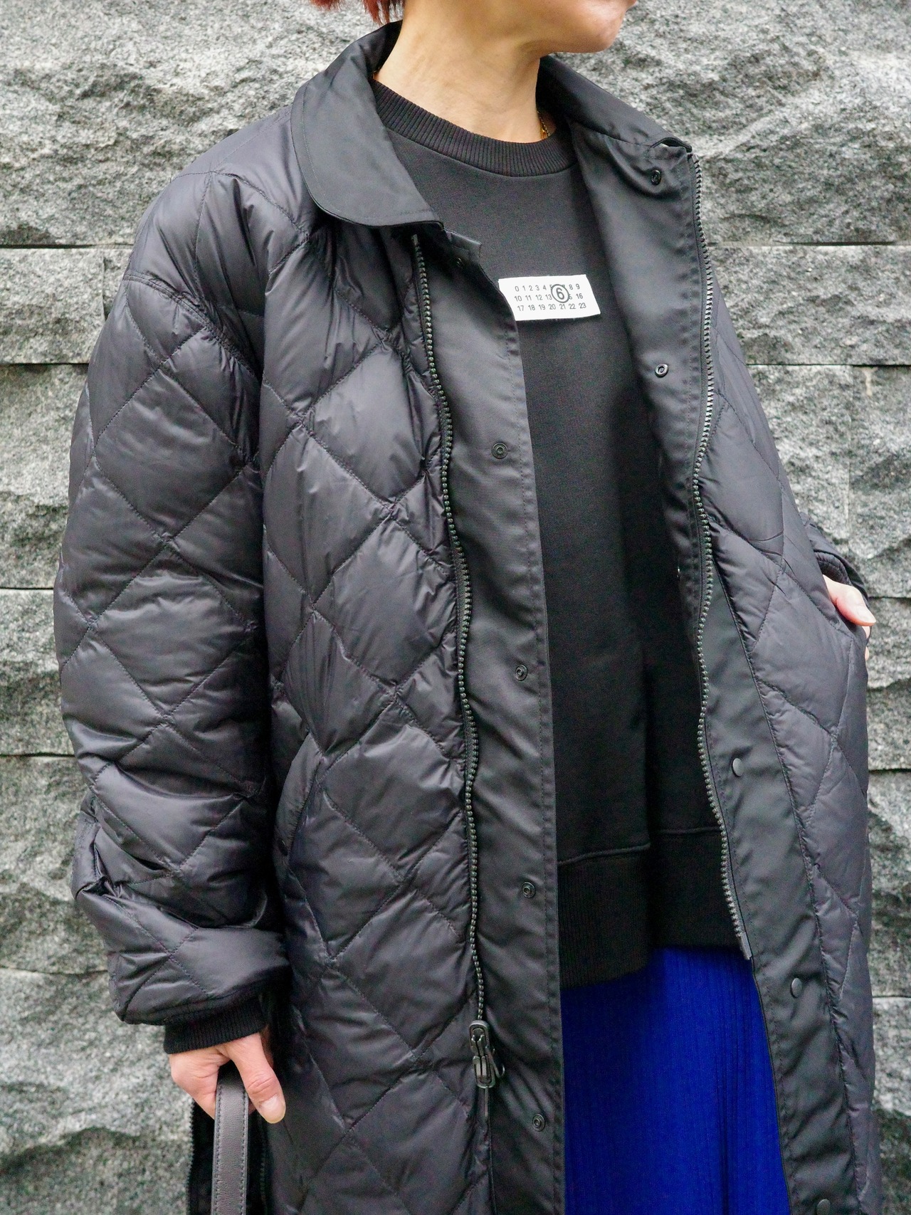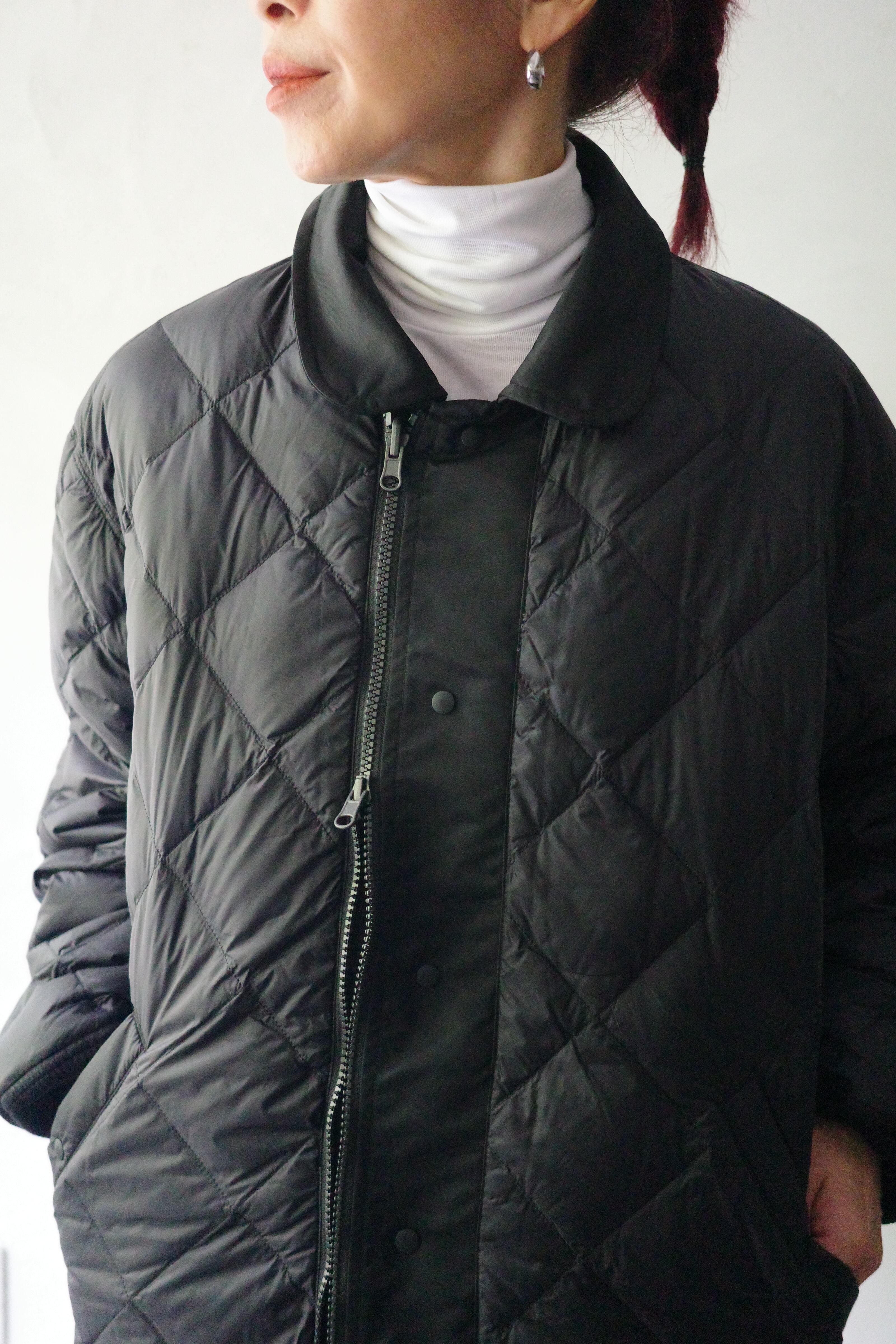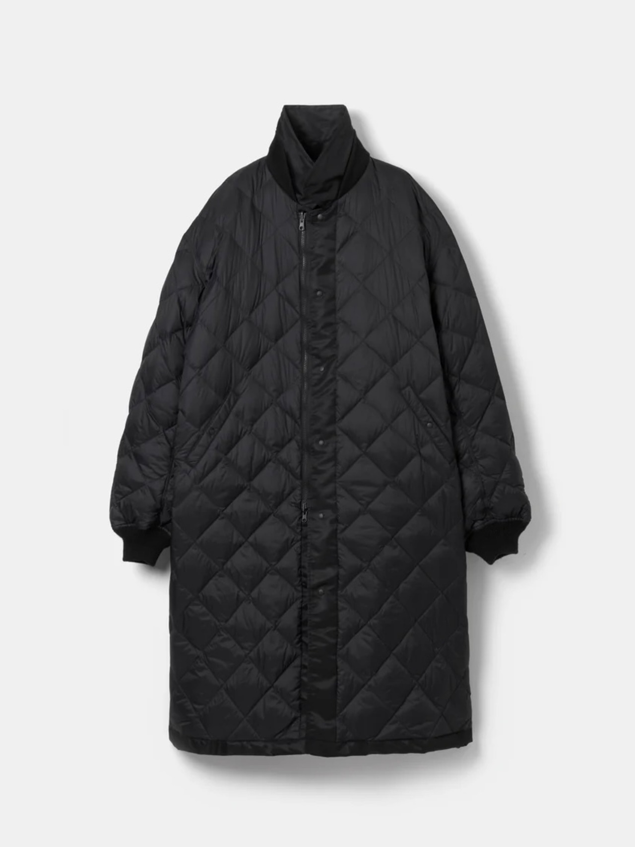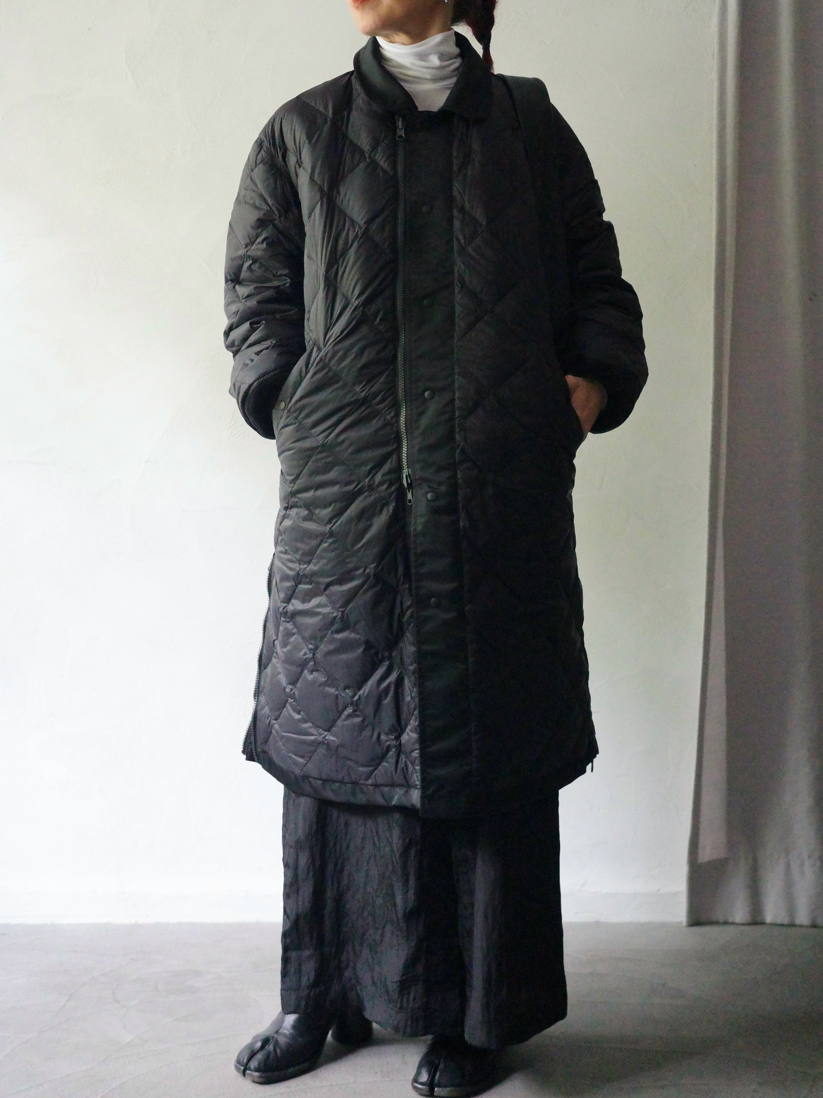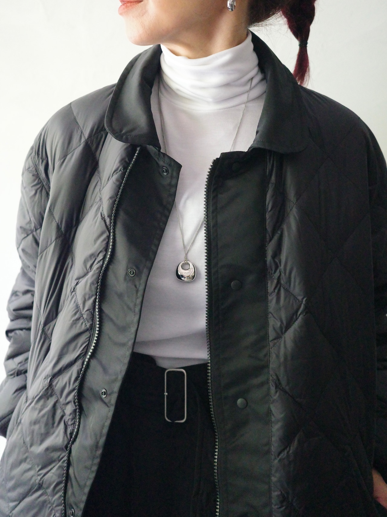表面はマットでエレガントなナイロン、裏面はダウンのキルティング構造という異なる表情を持ち、気分やスタイリングに応じた着こなしが可能。