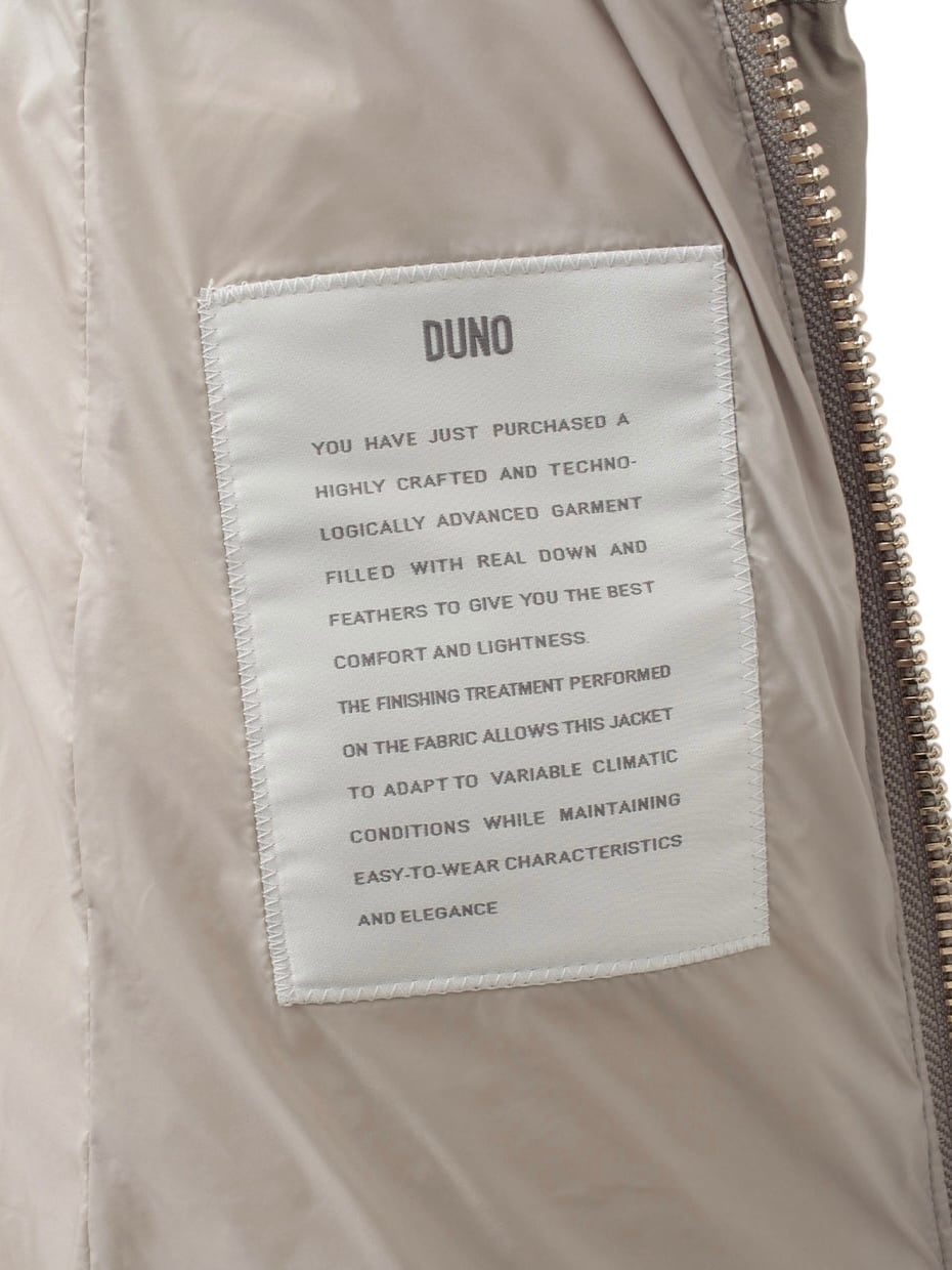 DUNO(デュノ)のダウンは保温性を維持するのに最適な混紡率である、ダウン90%、フェザー10%。