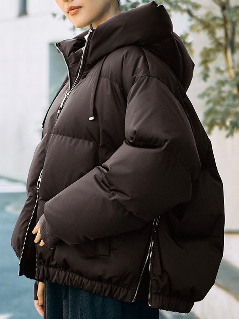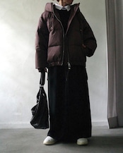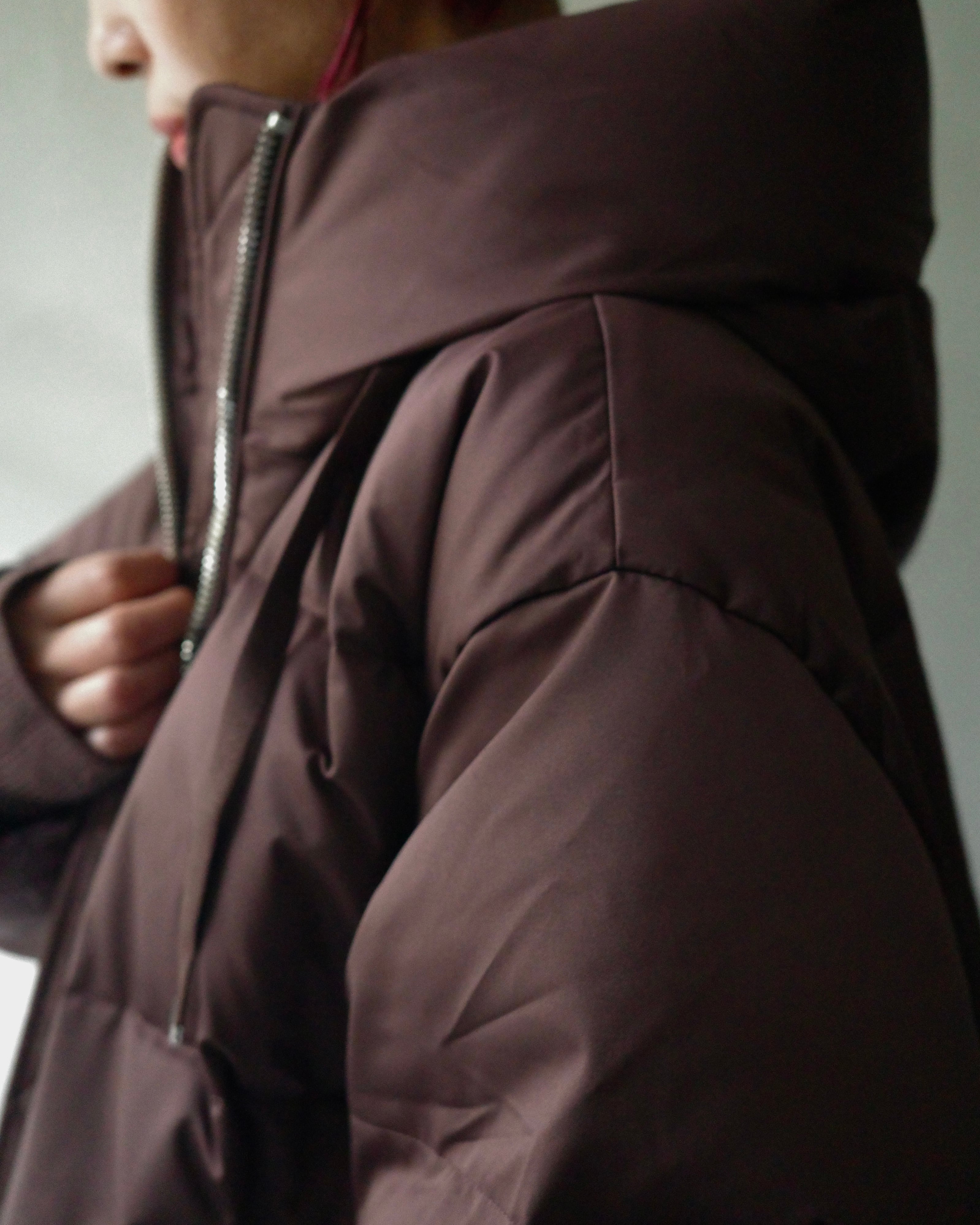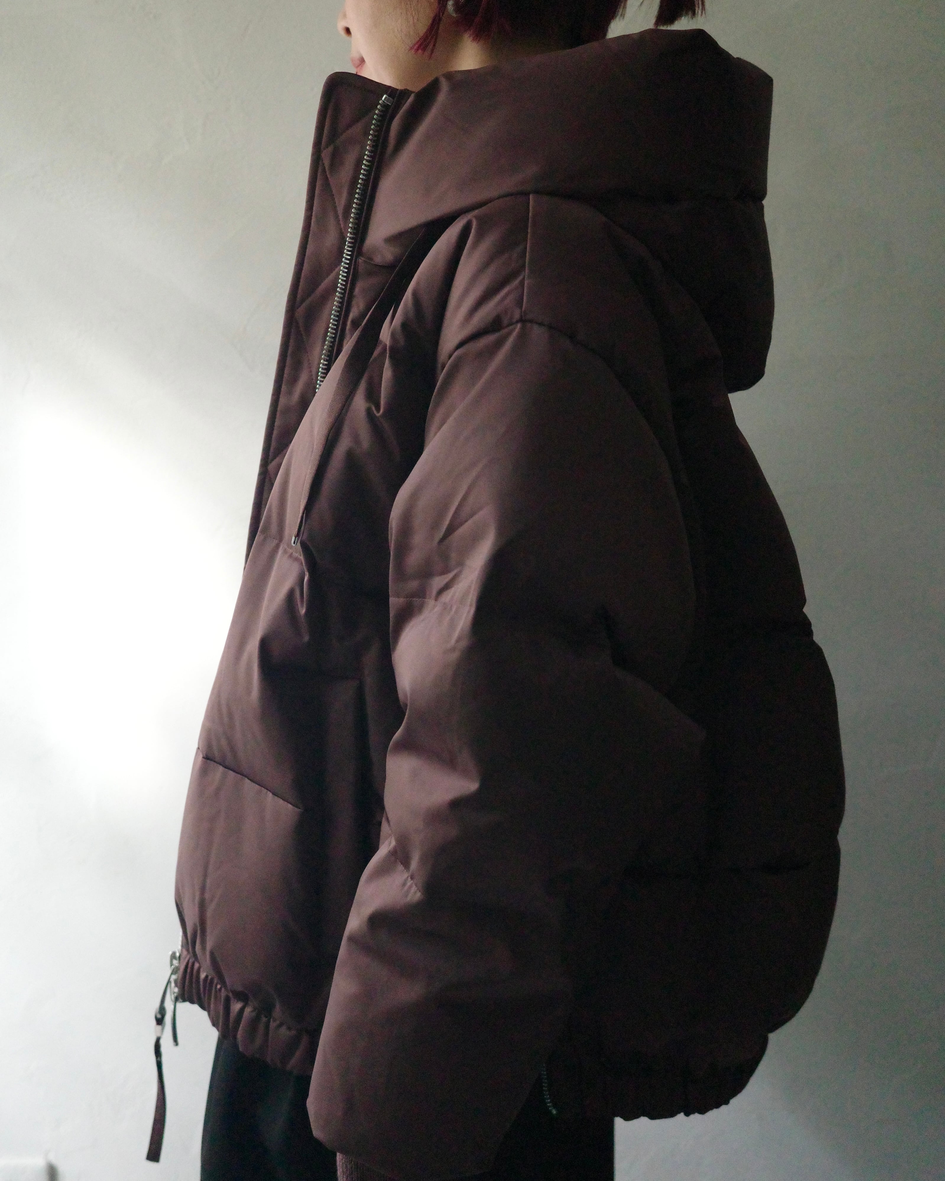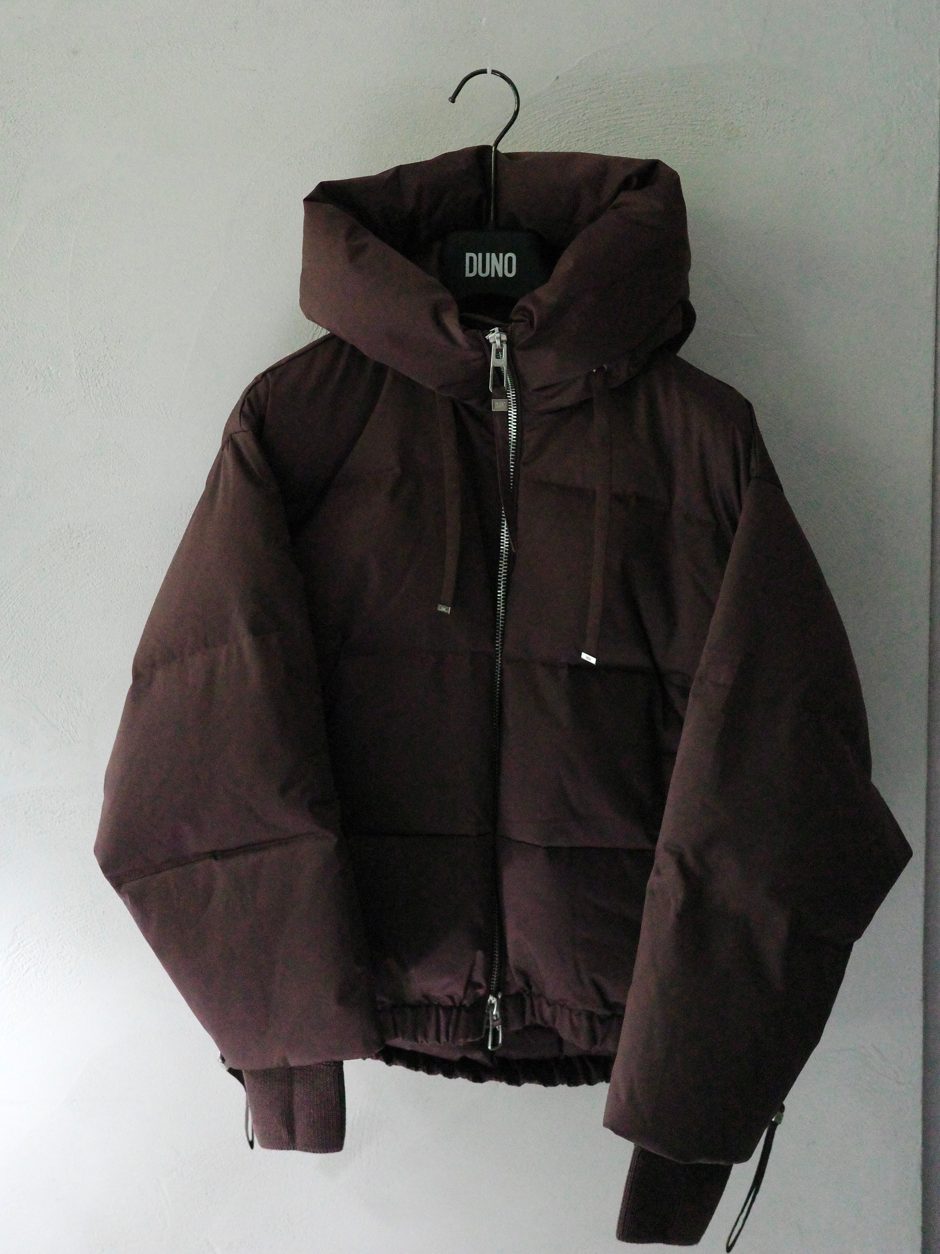 DUNO / HEKA サイドジップ フーデッド ダウンブルゾン -brown-