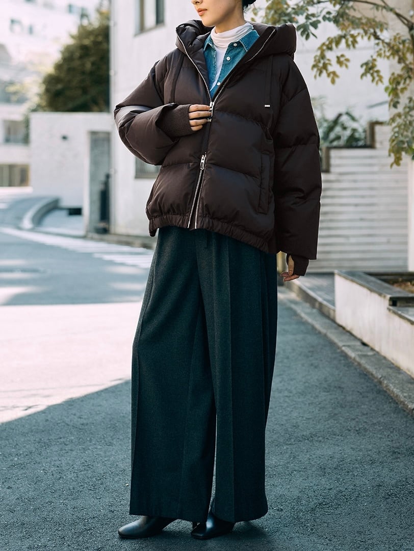 機能性と女性らしいシルエットを両立したショート丈のダウンジャケット。