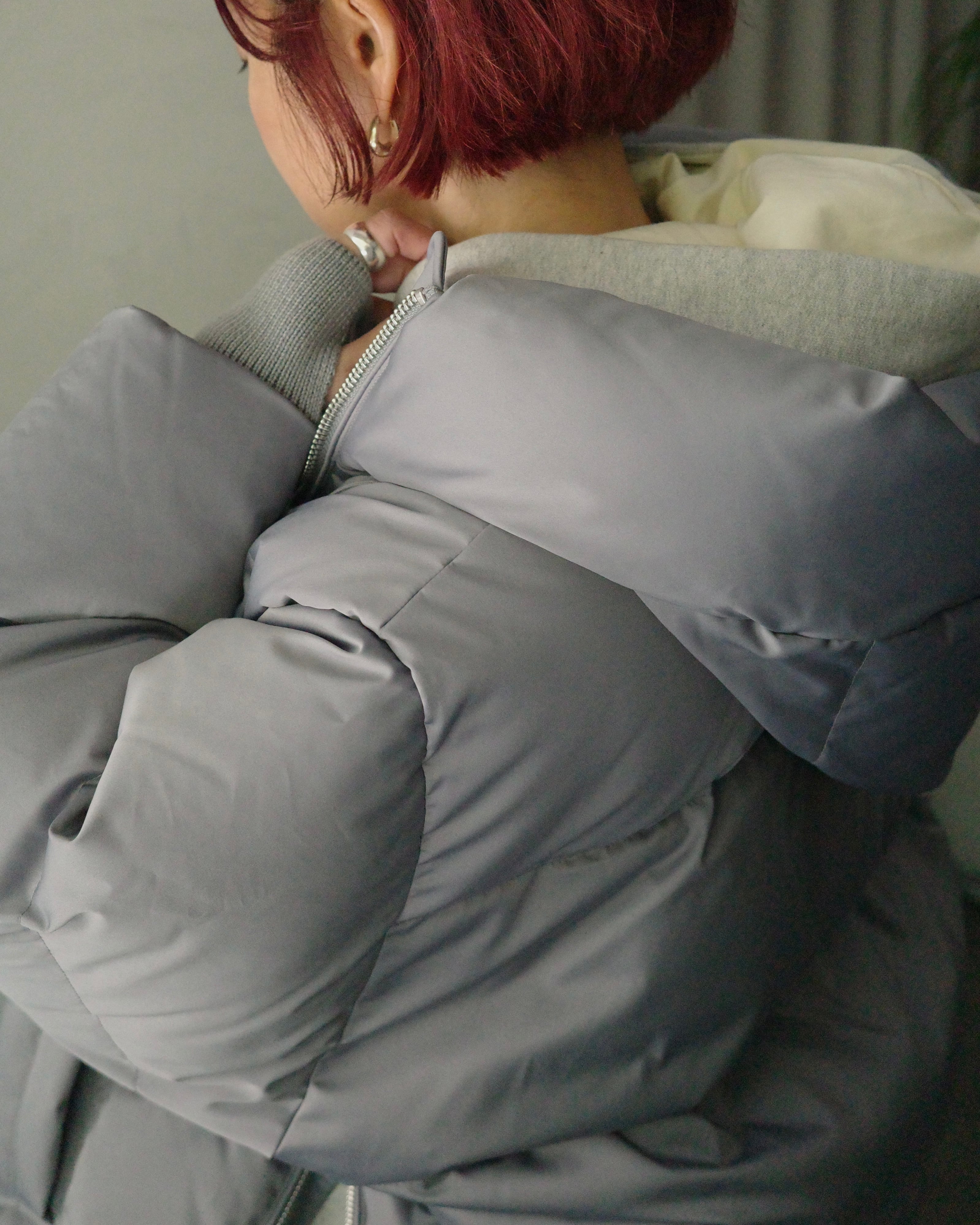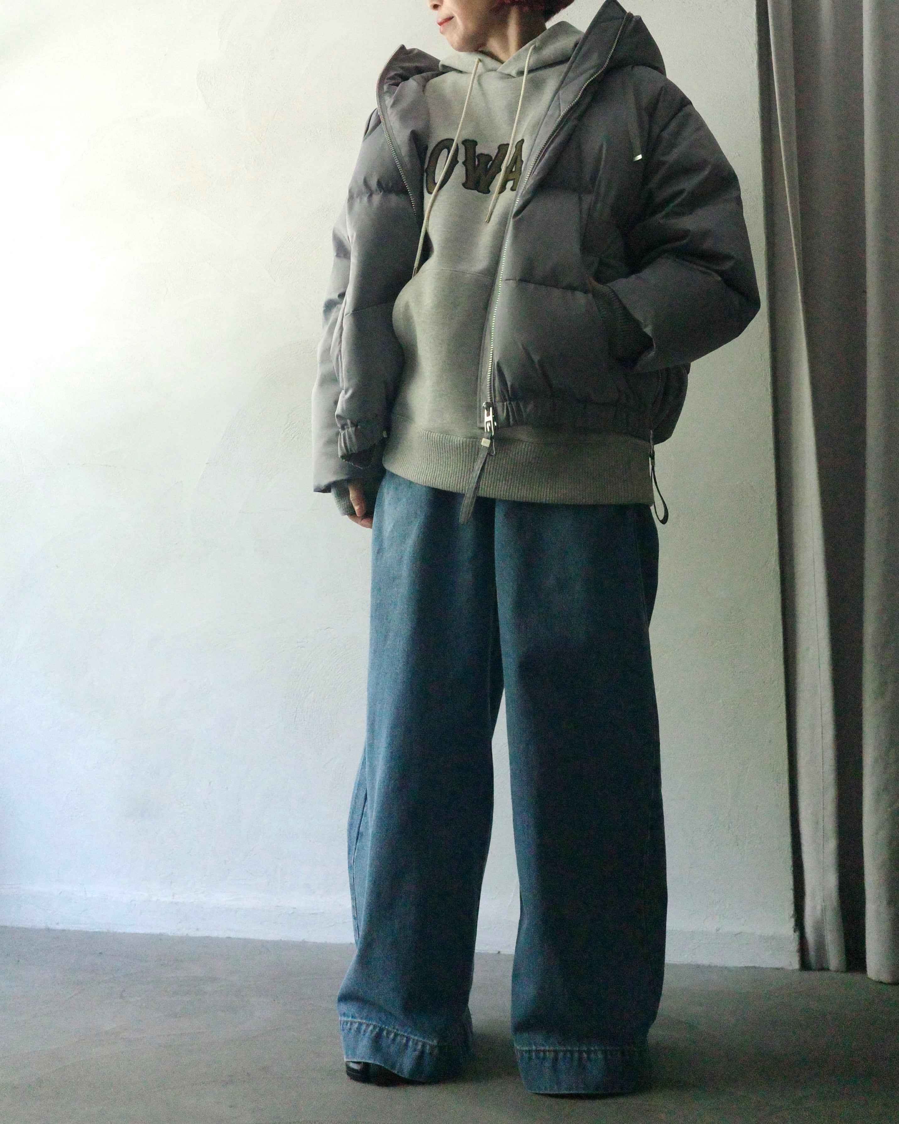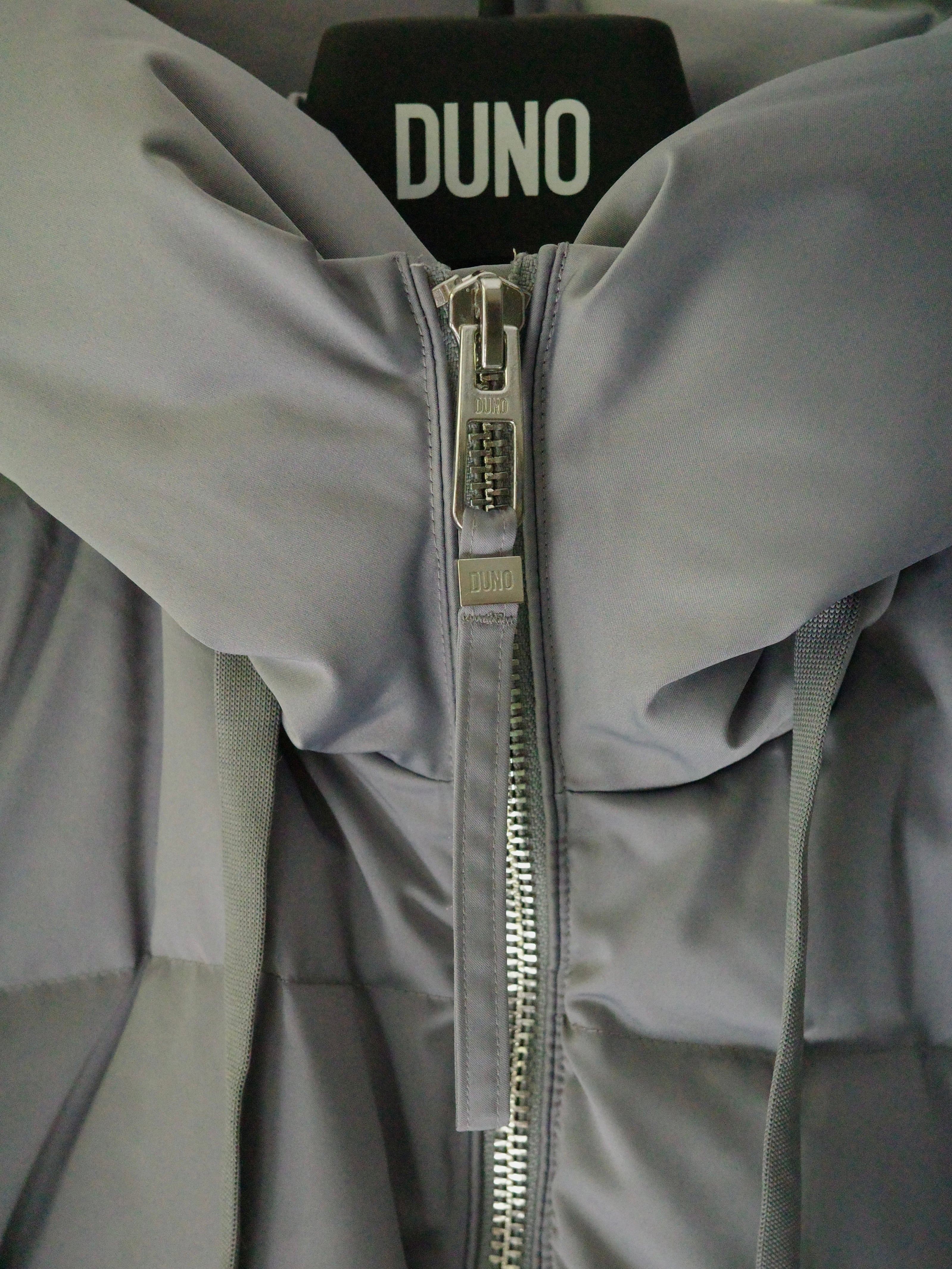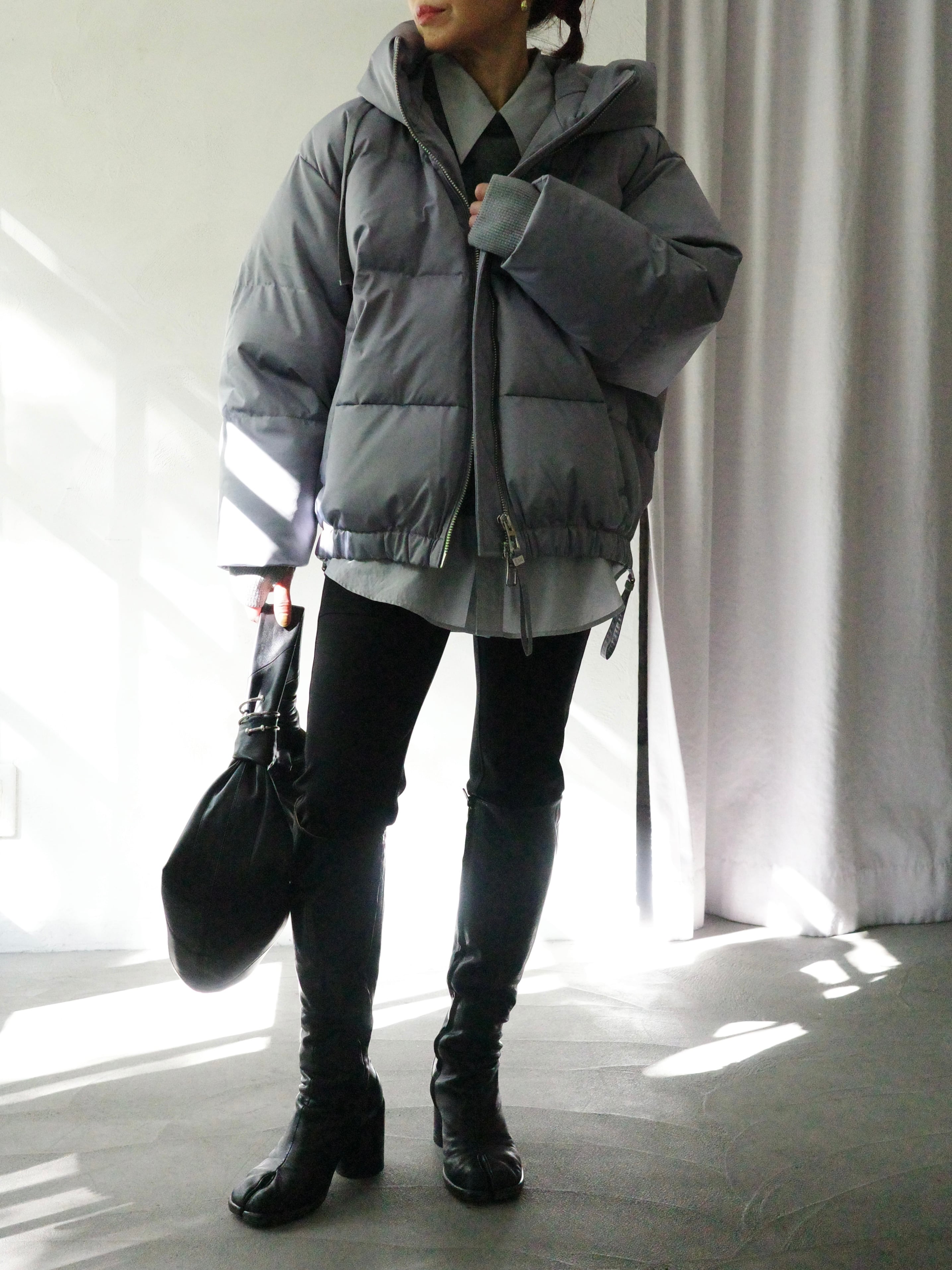 DUNO / HEKA サイドジップ フーデッド ダウンブルゾン -gray-