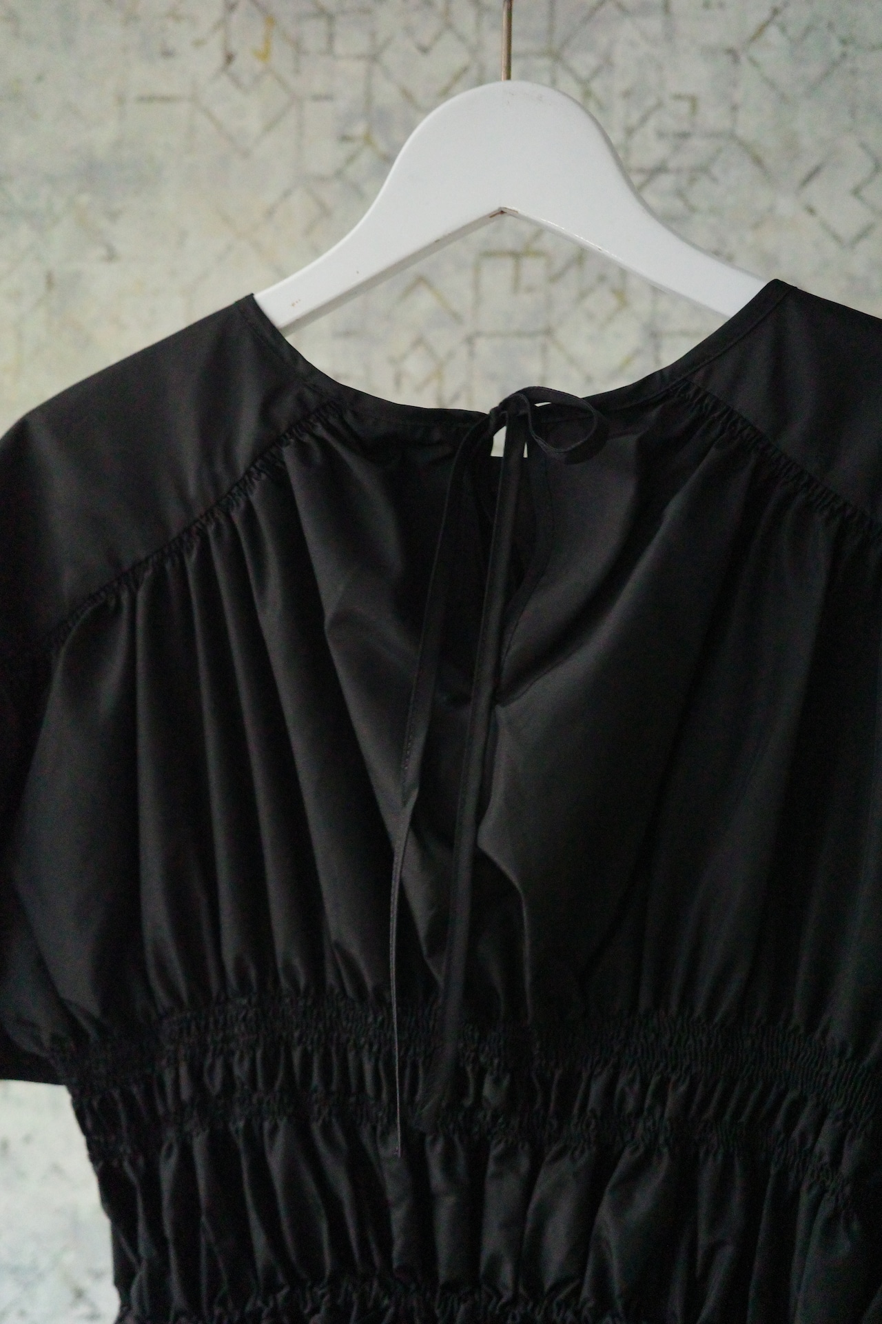 バックネックもリボンでさりげない華やぎをオン。