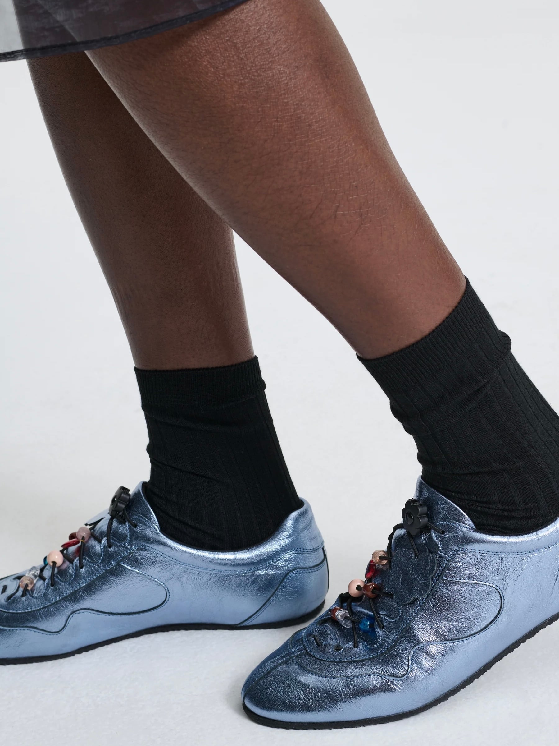 メタリックなアイスブルーカラーがコーディネートの鮮度を高める<セシリー バンセン>のスニーカーです。