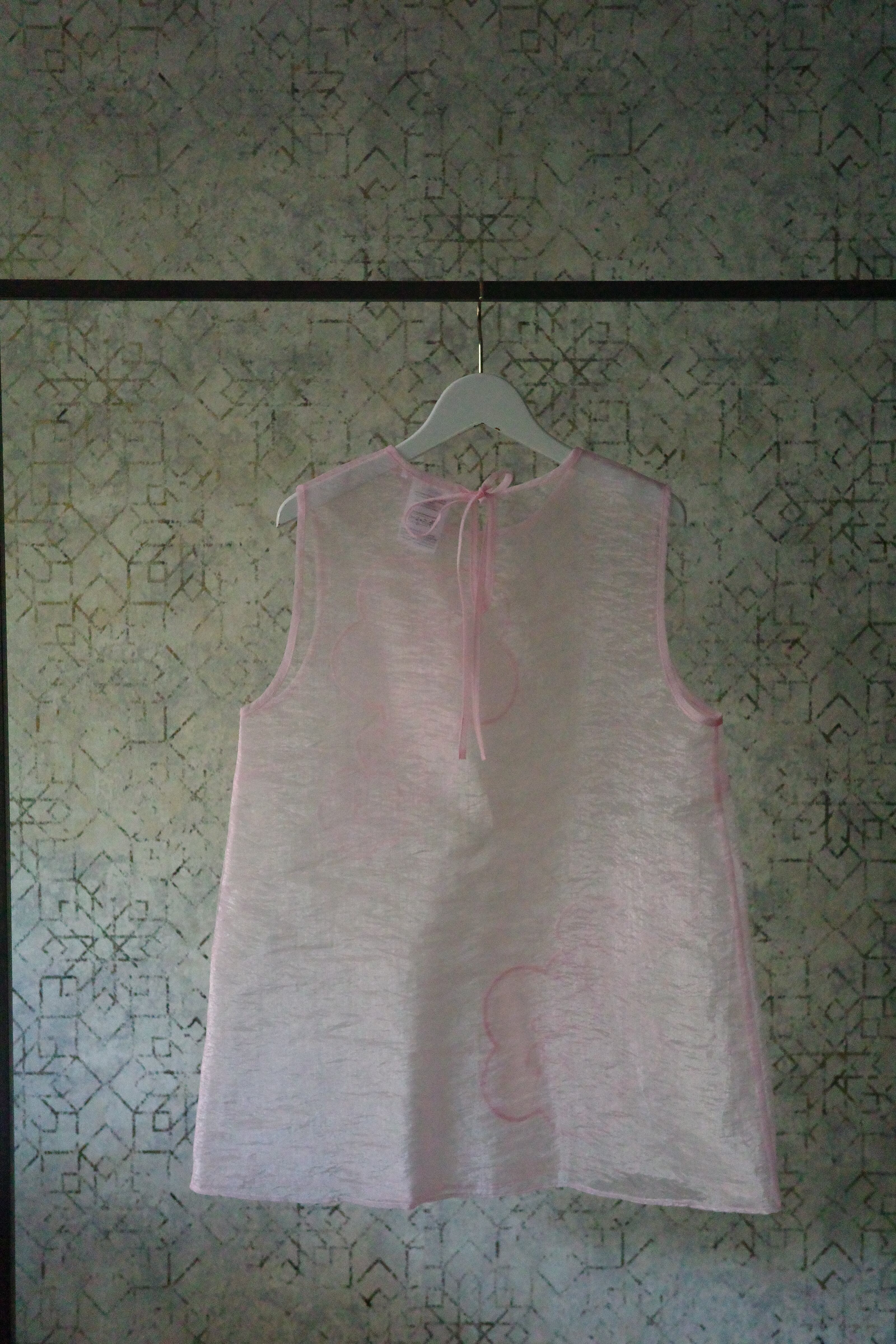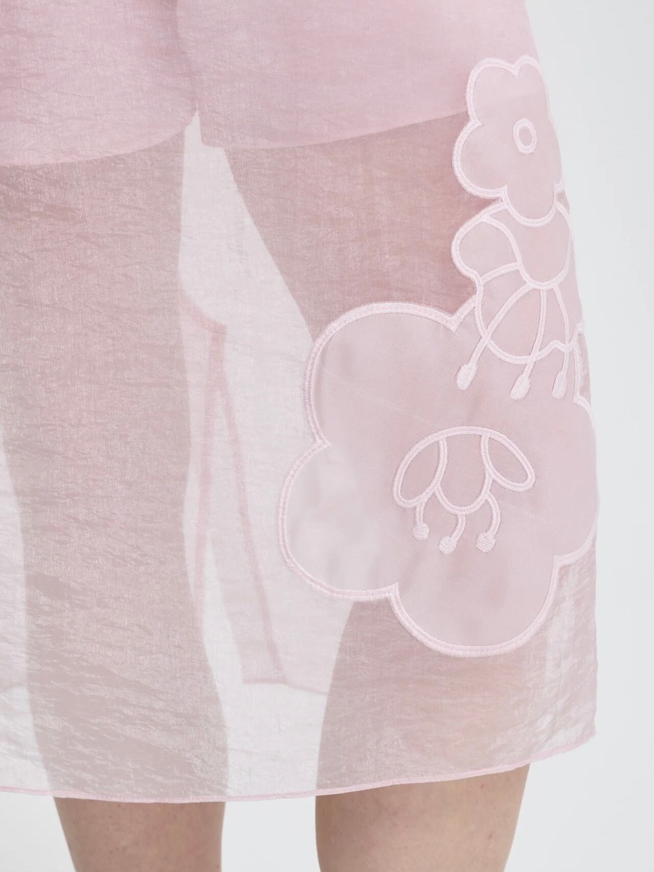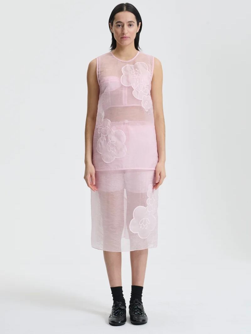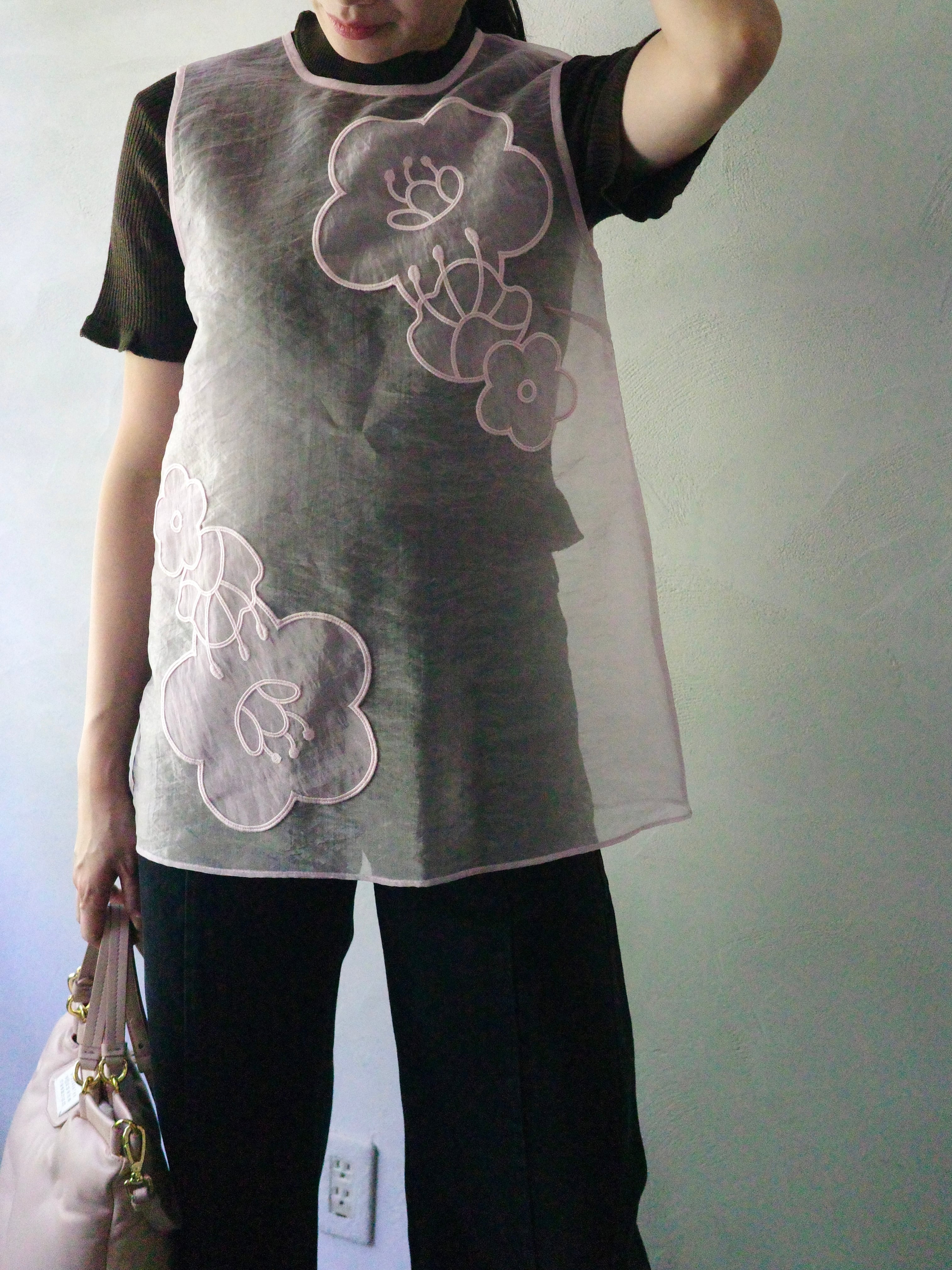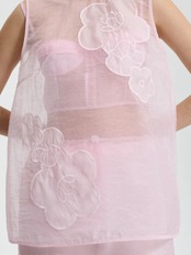 大きなフラワーモチーフのパッチが視線を集める<セシリー バンセン>のノースリーブトップス。ハリのある軽やかなシアー生地にセンシュアルなムードが漂う一枚です。