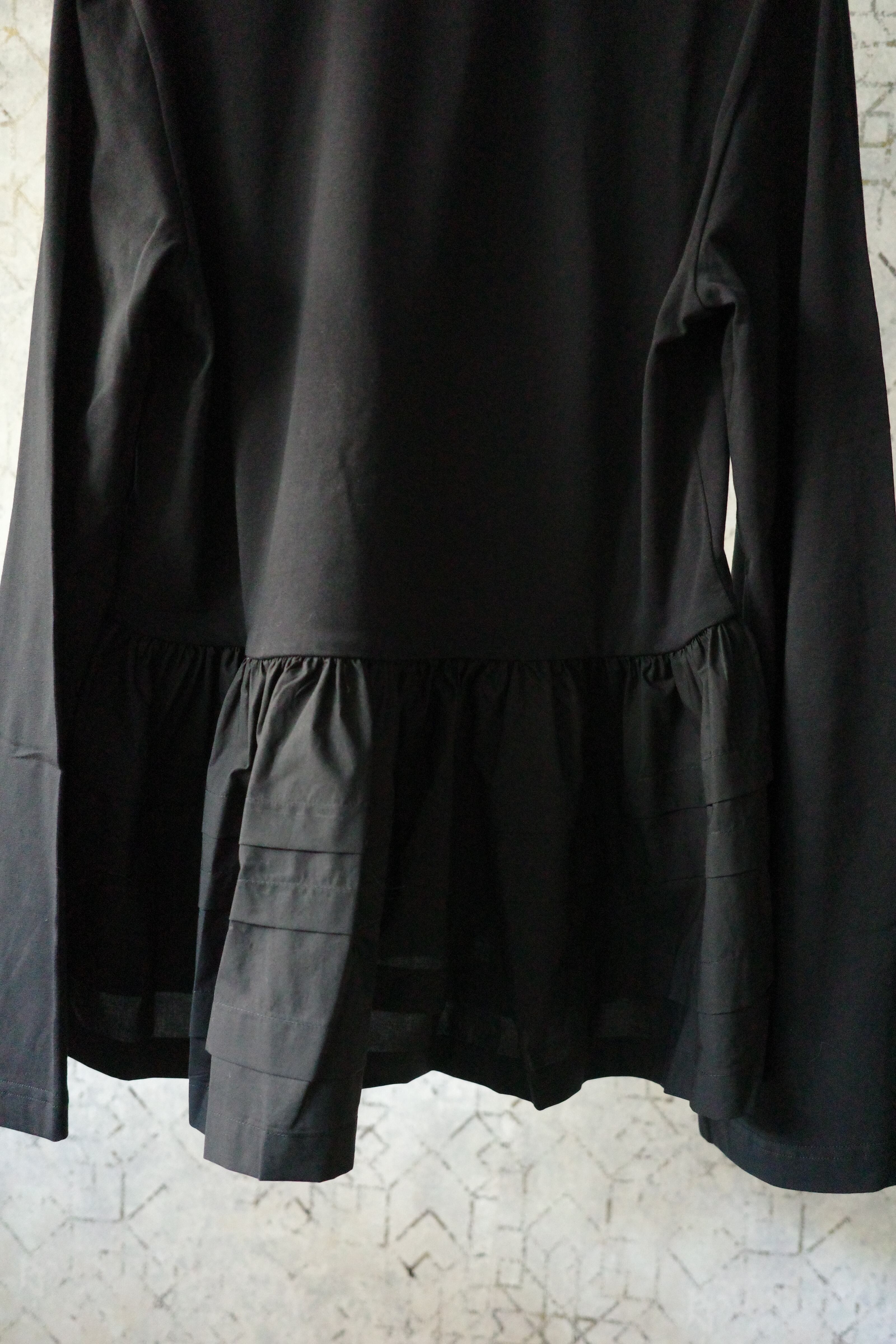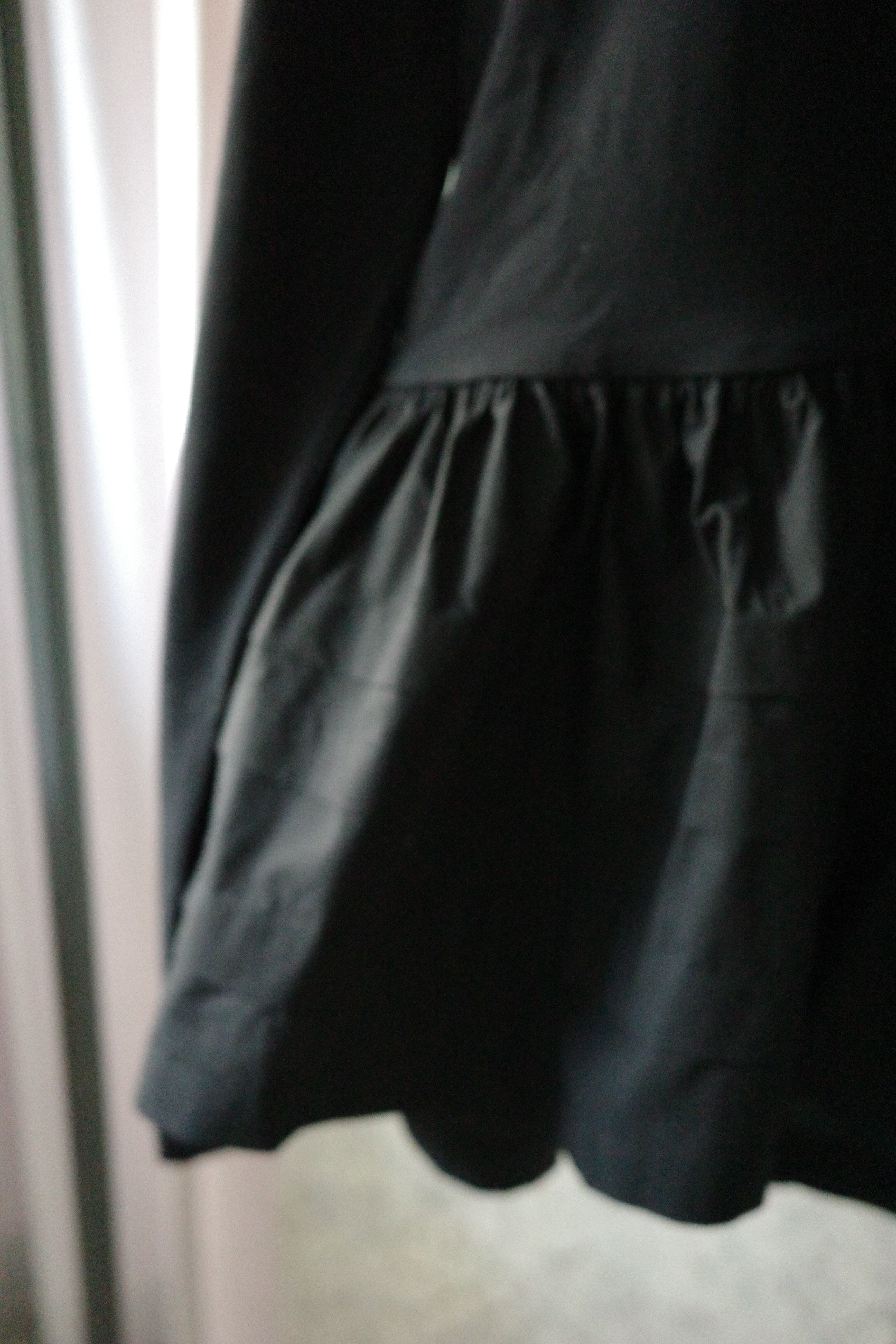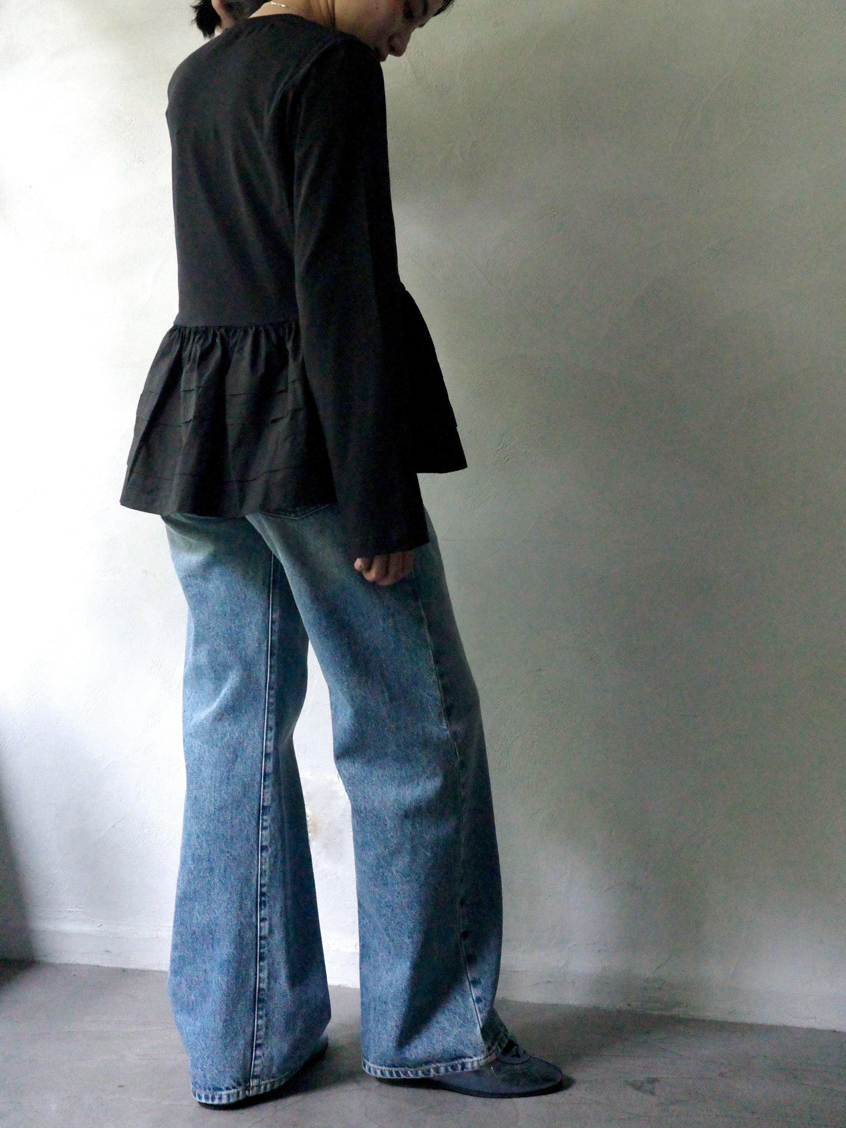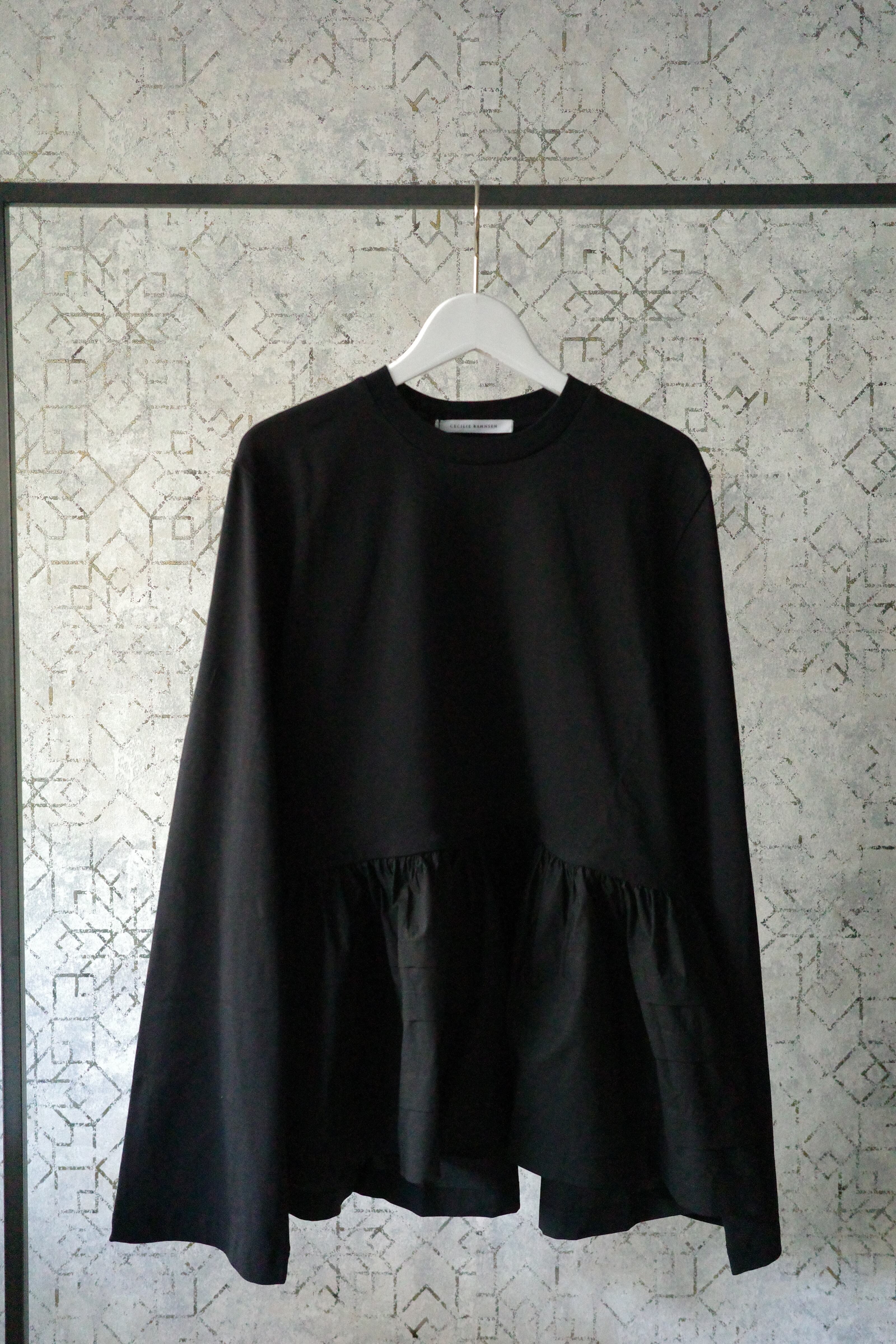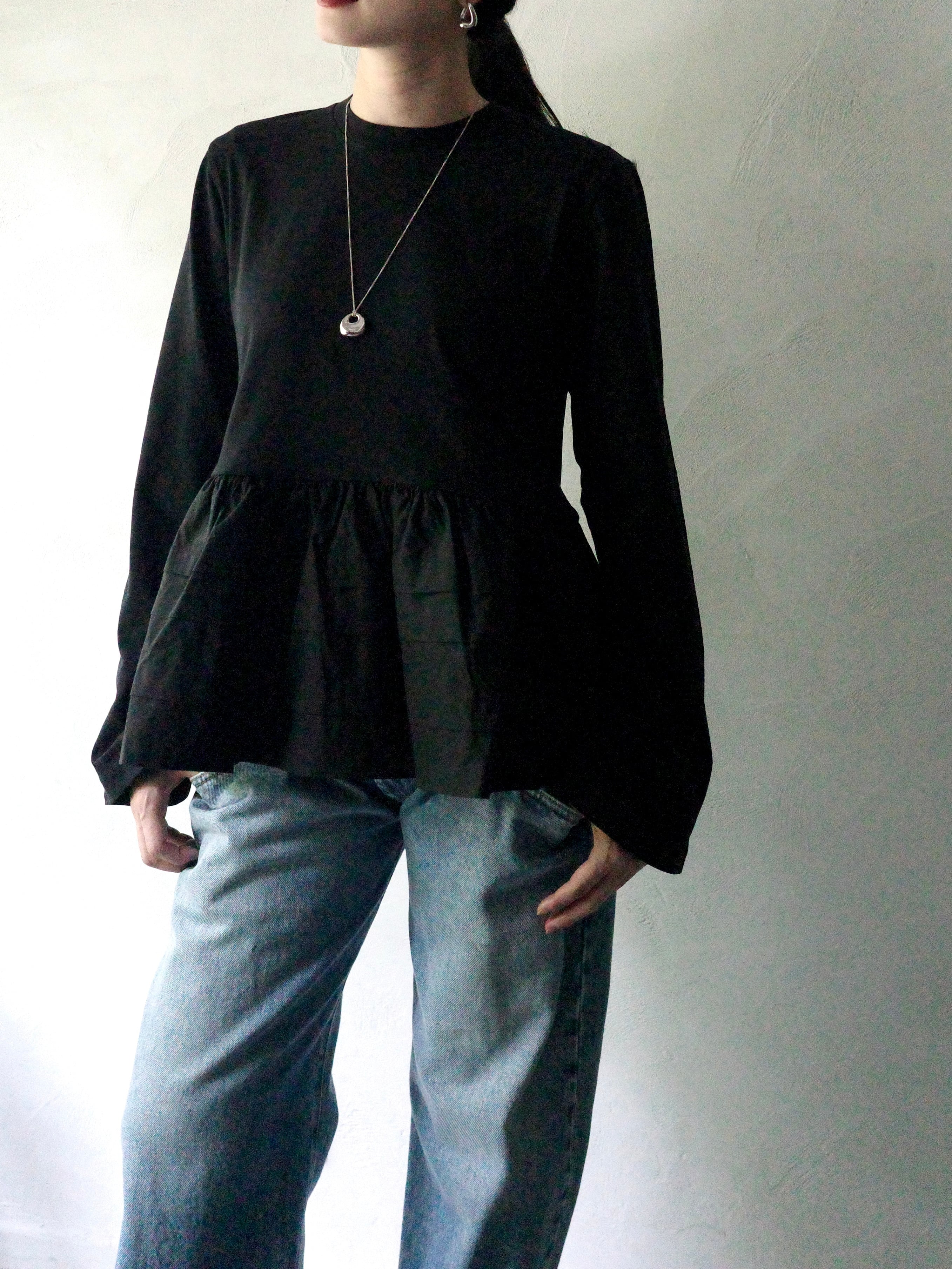 ややドロップショルダーのリラックスしたシルエットに、長くワイドなスリーブがドラマティックな印象をプラスします。