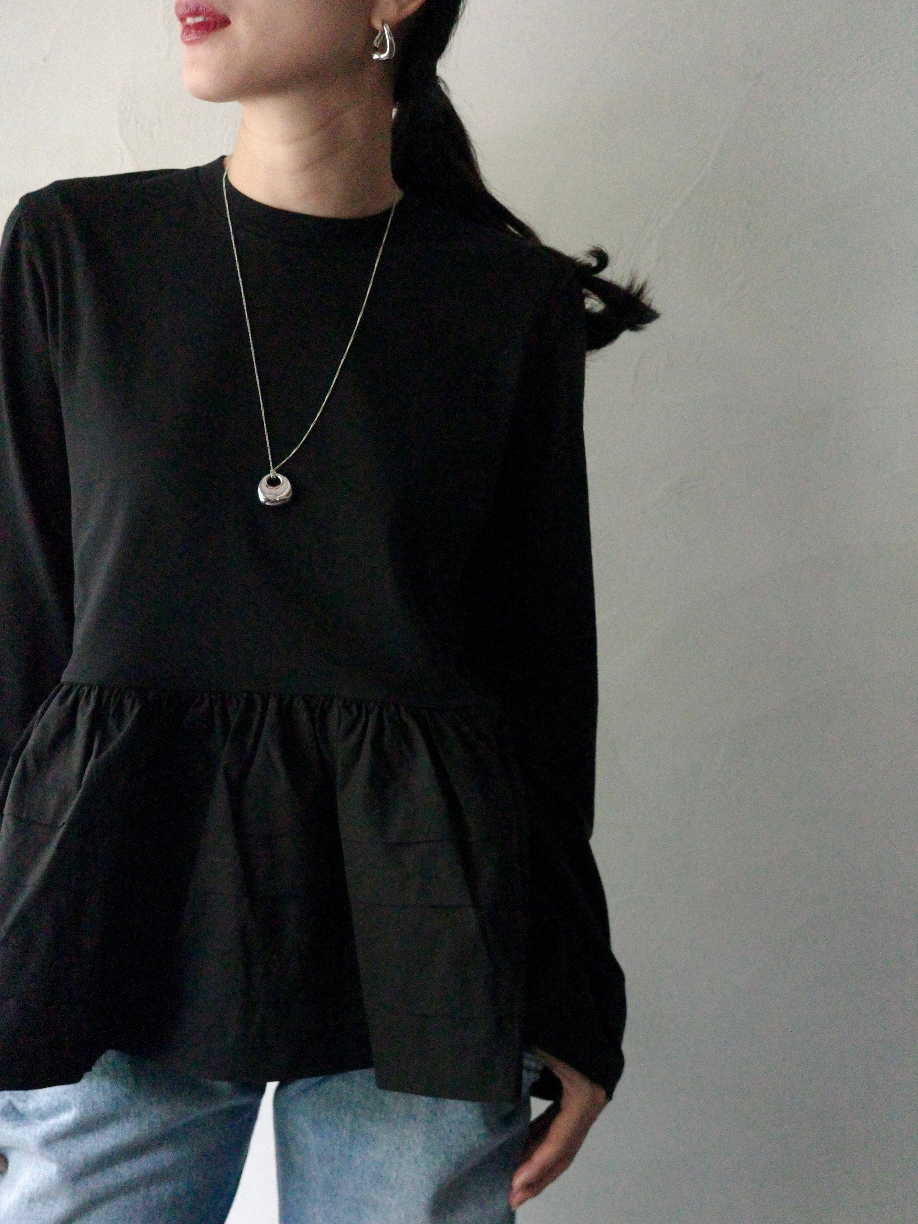 シンプルなTシャツに洗練されたディテールを融合させた、まさに“特別な一枚”です。細身のパンツと合わせたメリハリある着こなしはもちろん、ボリュームスカートでフェミニンに仕上げても◎。
