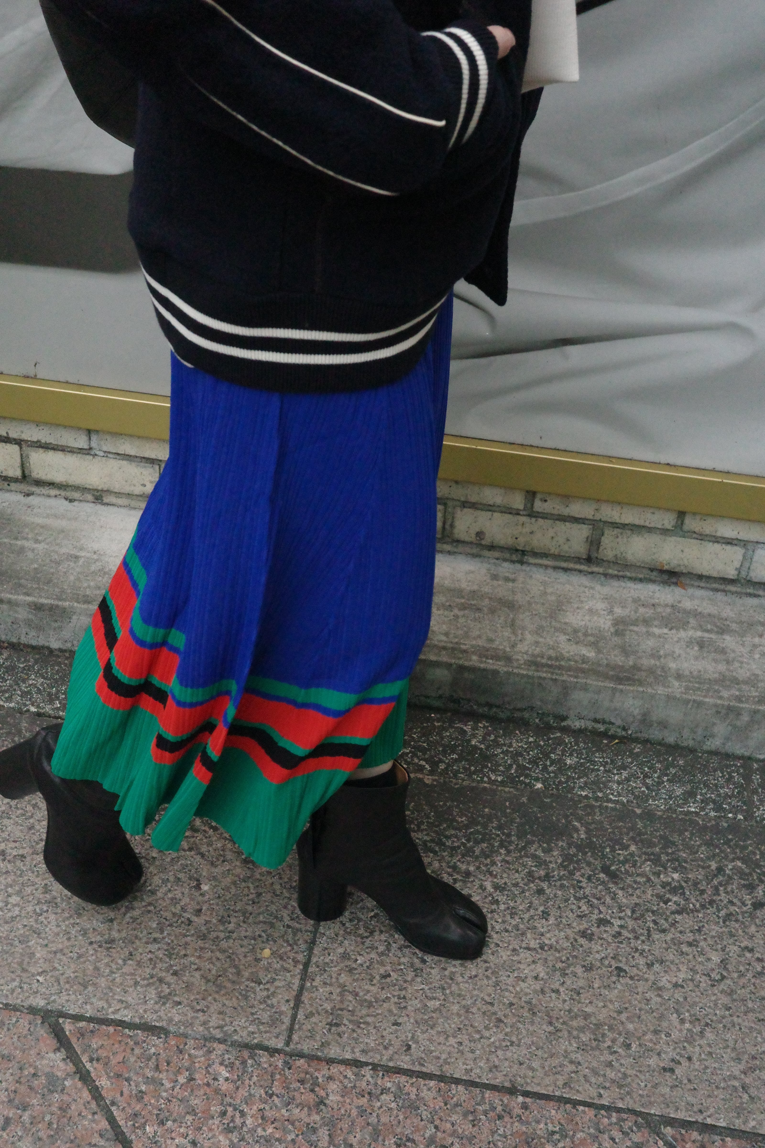 ウェールズボナーらしい色彩のボーダーがスタイリングに華を添えます。