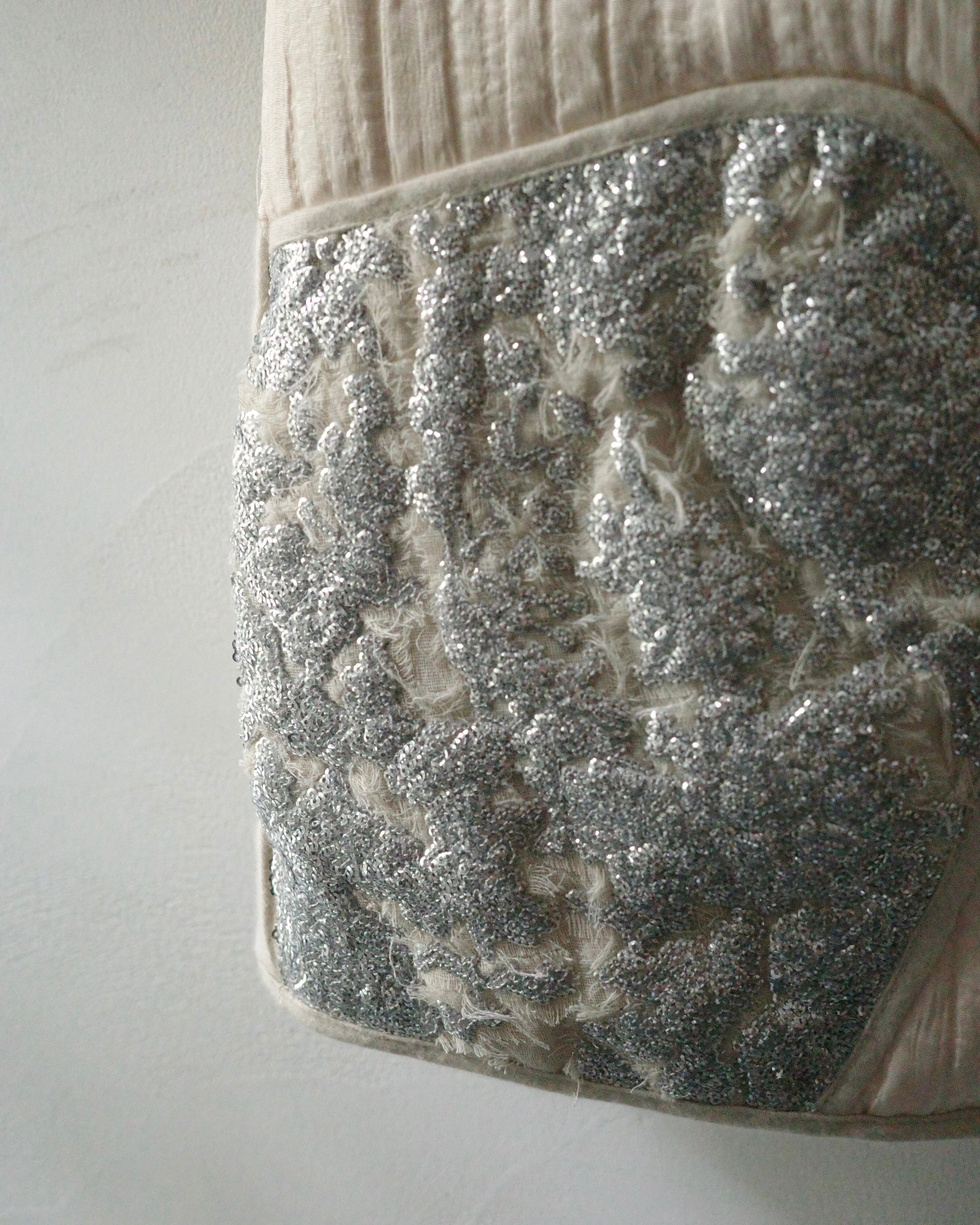 ・高密度に施した刺繍の余白をカットオフして起毛させることで、リッチさの中にラフなニュアンスを添えた表情豊かな刺繍素材