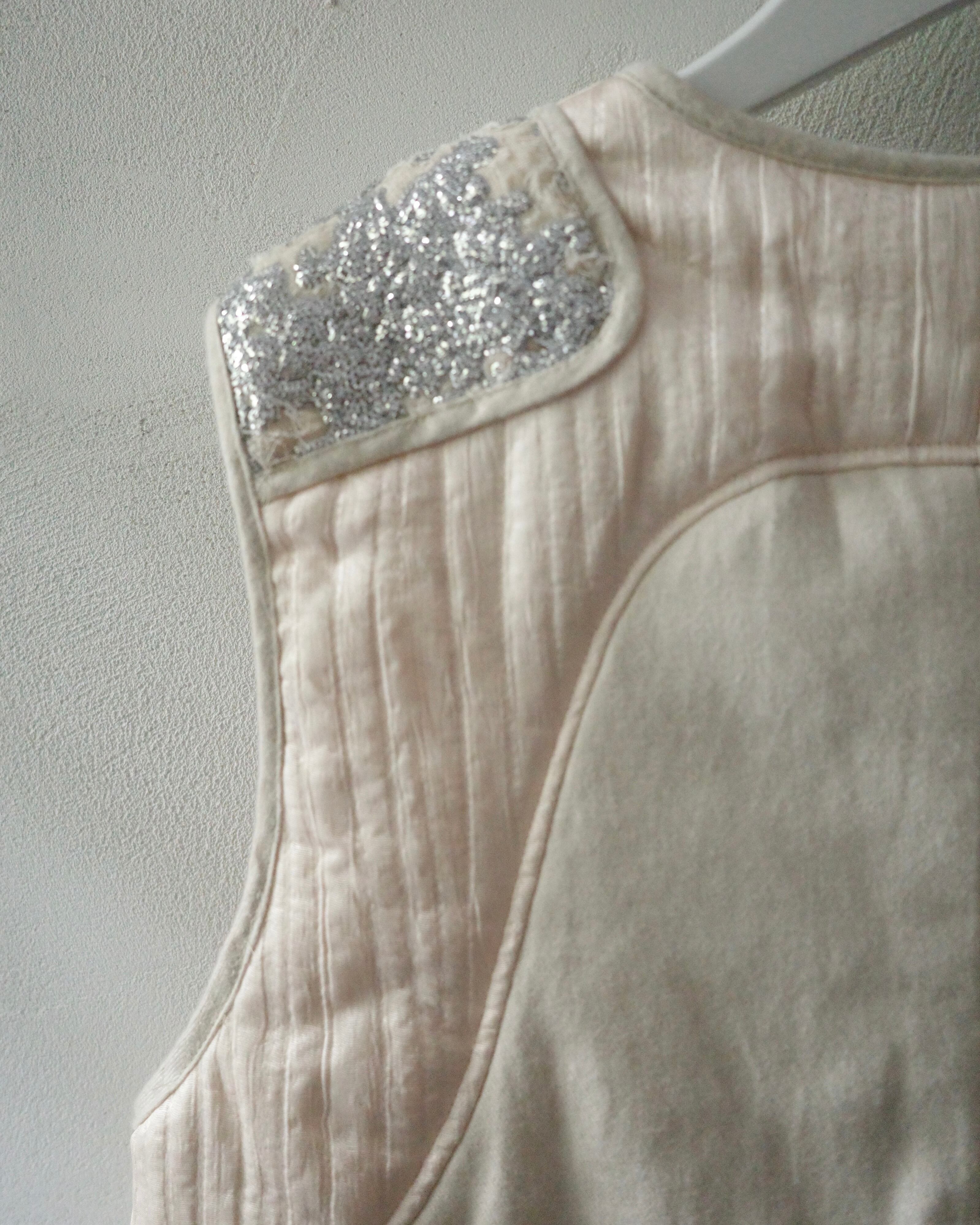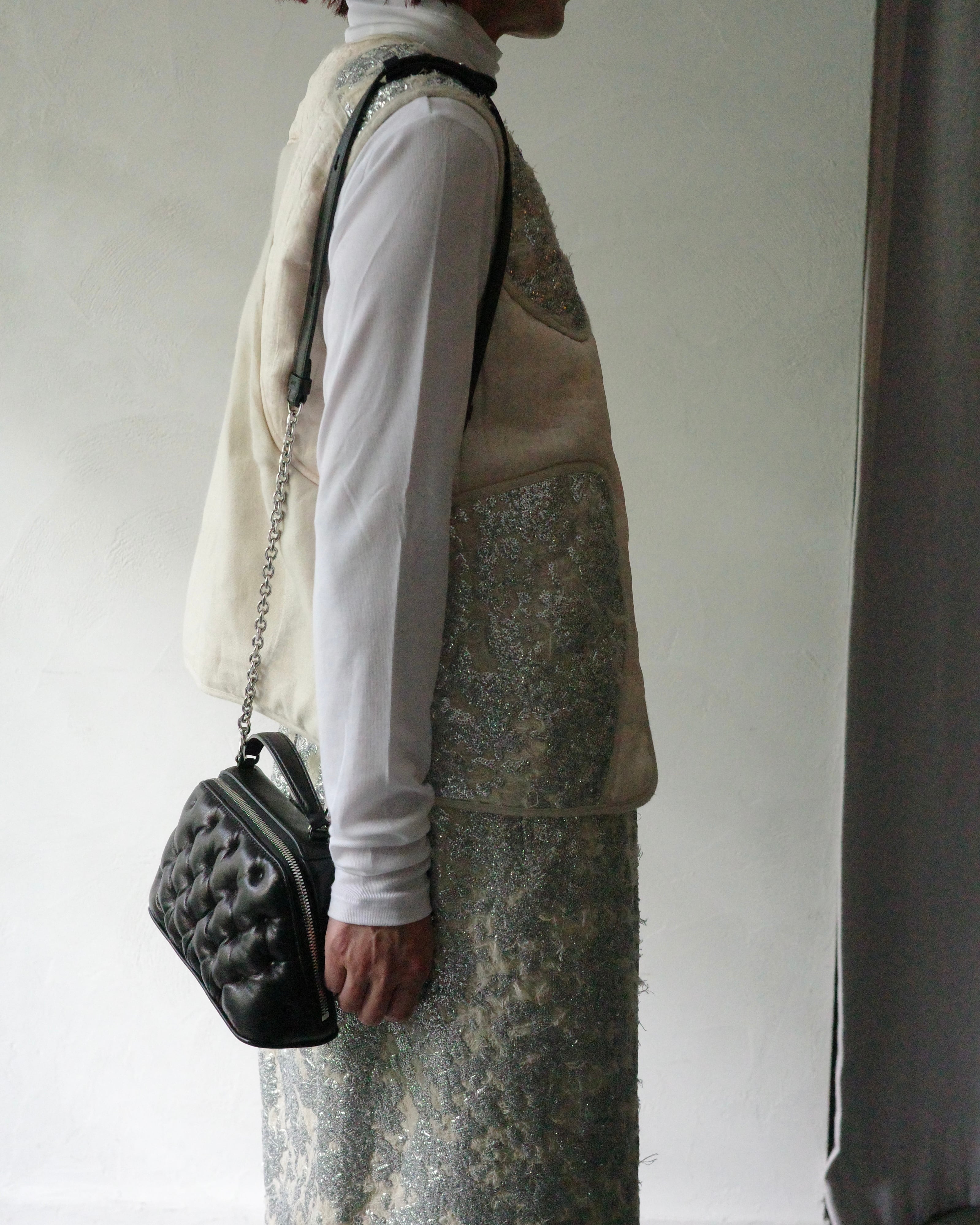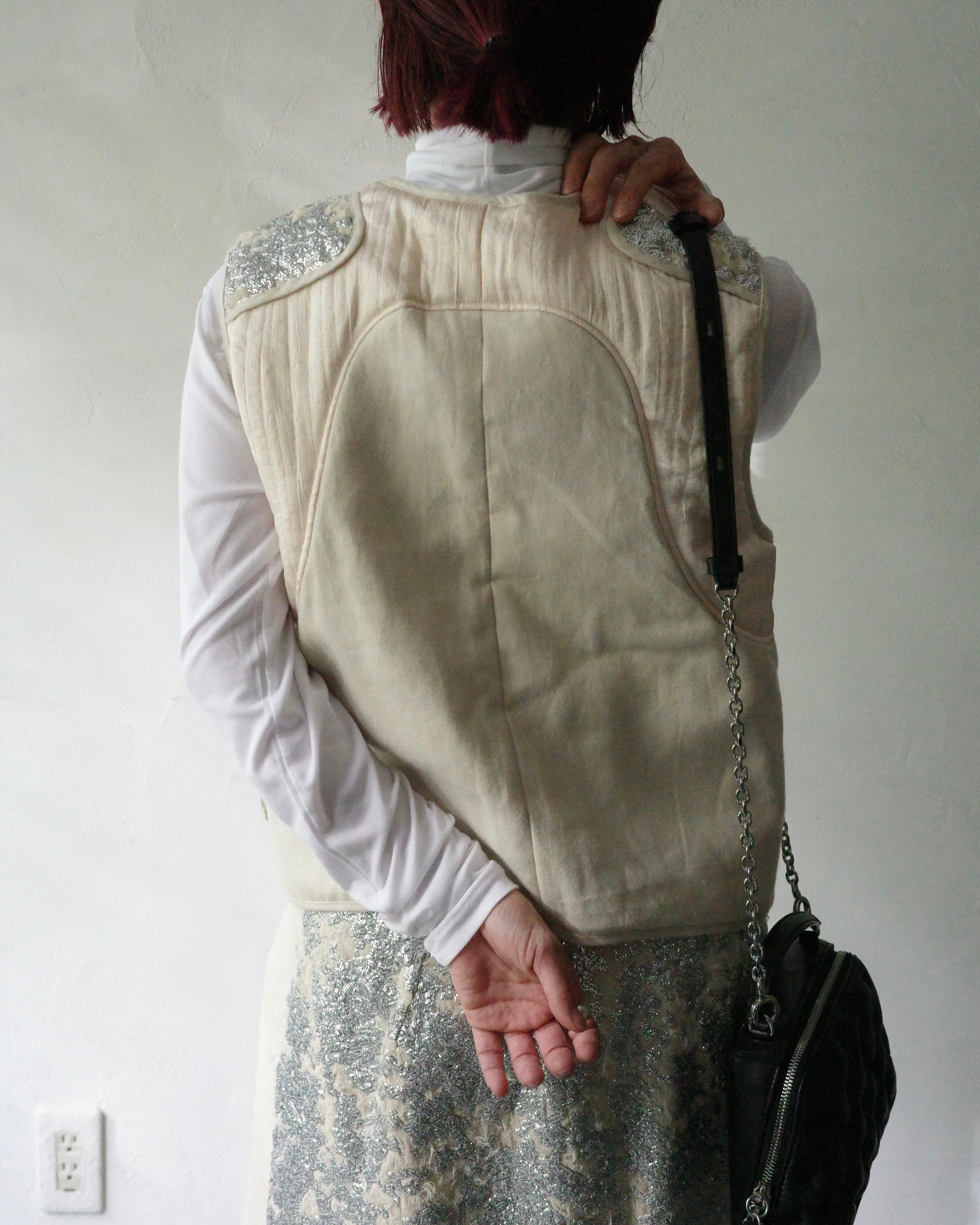 華やかなディテールのベストは、シンプルなインナーに重ねるだけで装いをアップデートしてくれます。