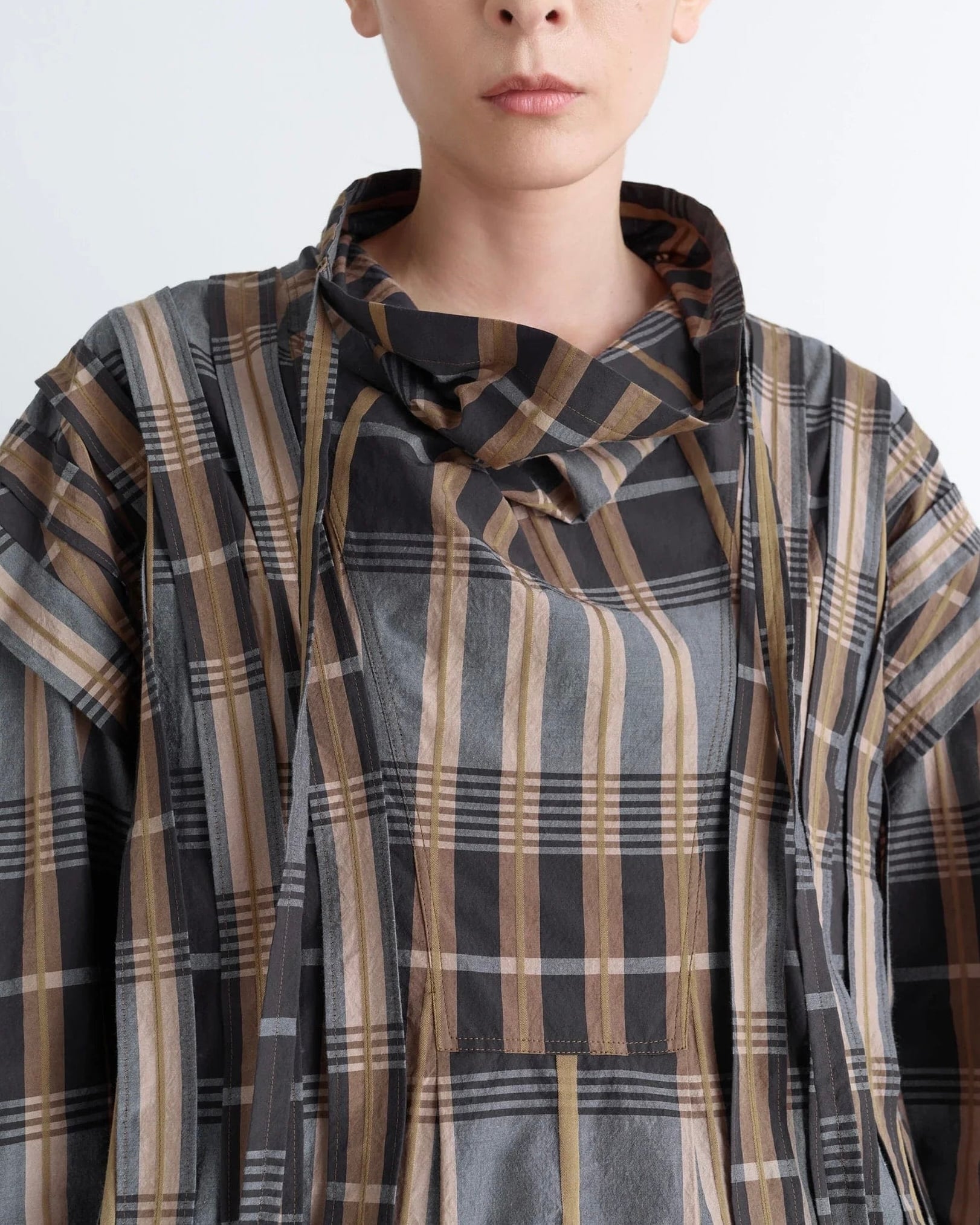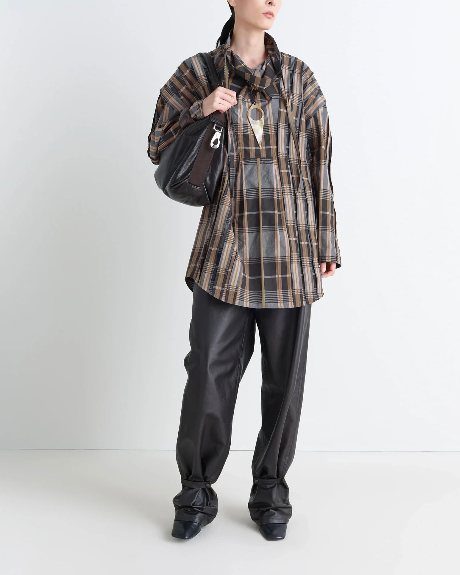 象徴的なこのアイテムは、サテン仕上げのコットン素材で再解釈され、無数のステッチストライプが織りなす、レリーフ効果のある新たなチェック柄が生み出されています。