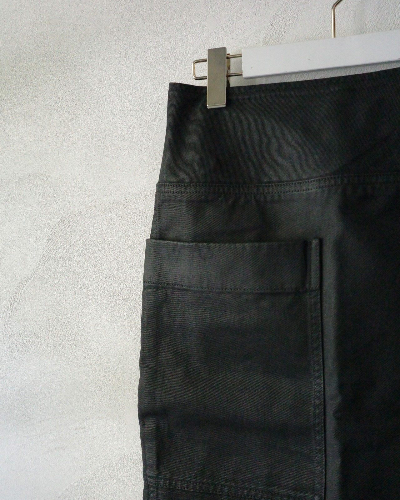 ワーク感のあるサイドポケットを付けてカジュアルな要素を加えたこだわりにも個性が光ります。