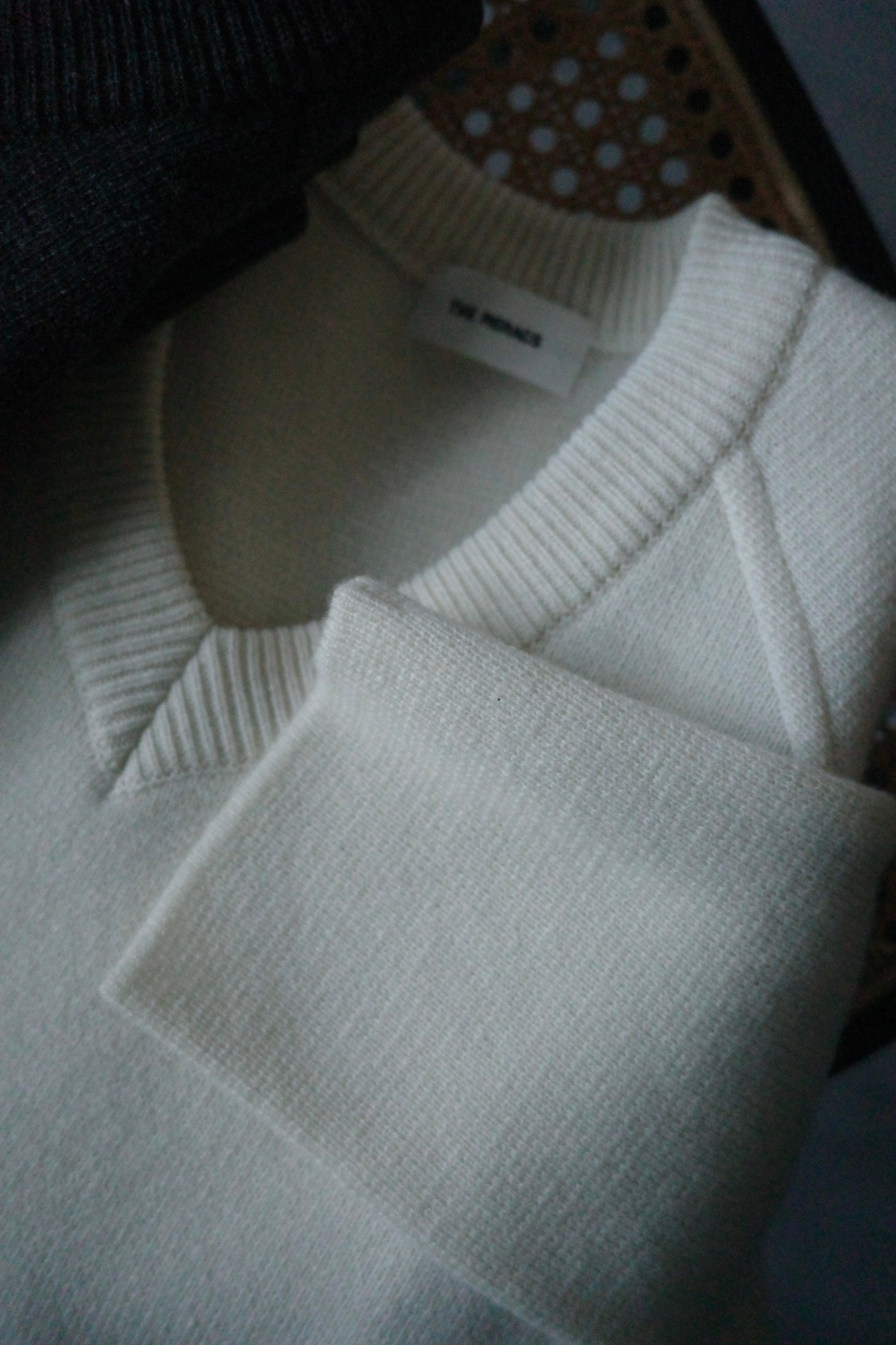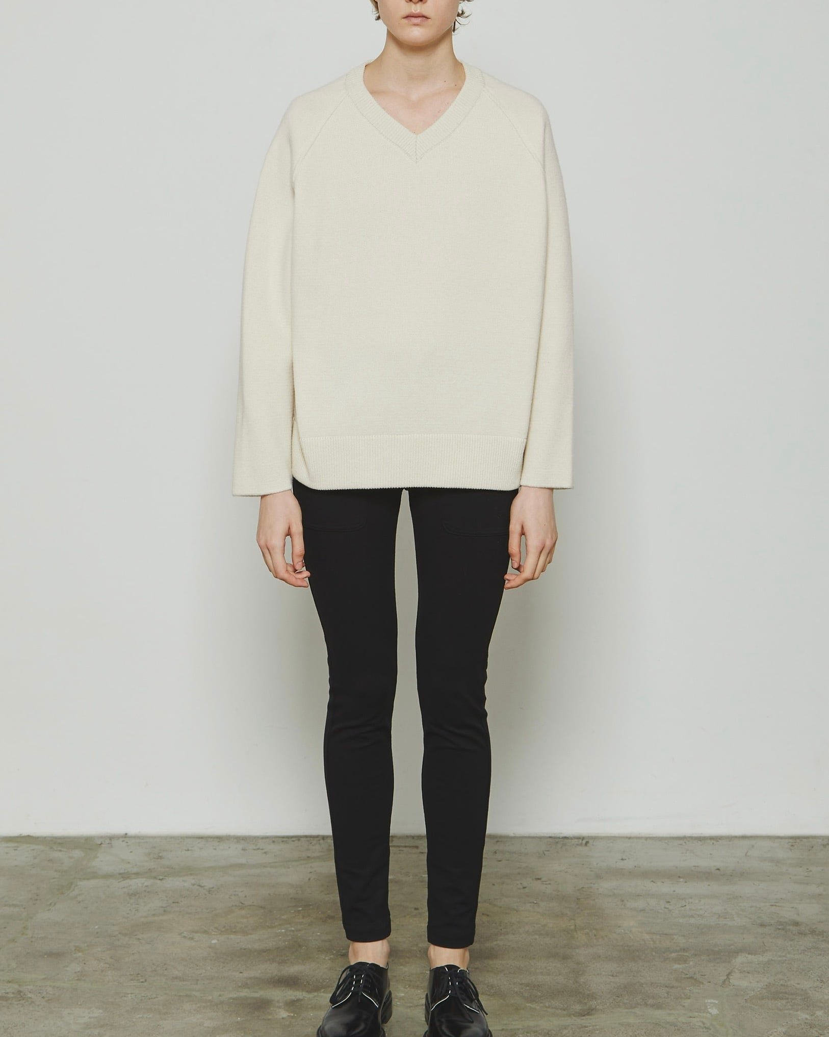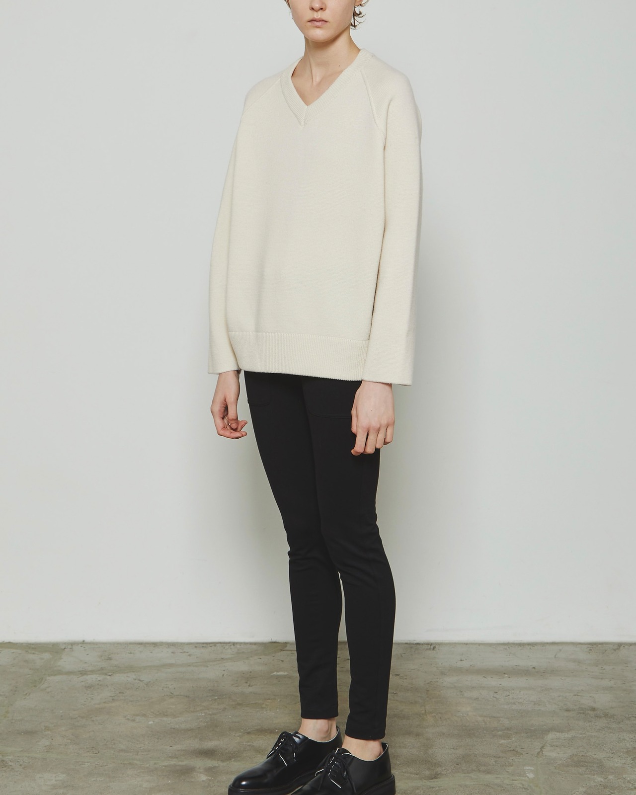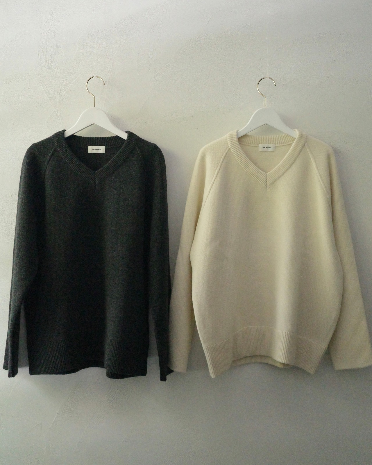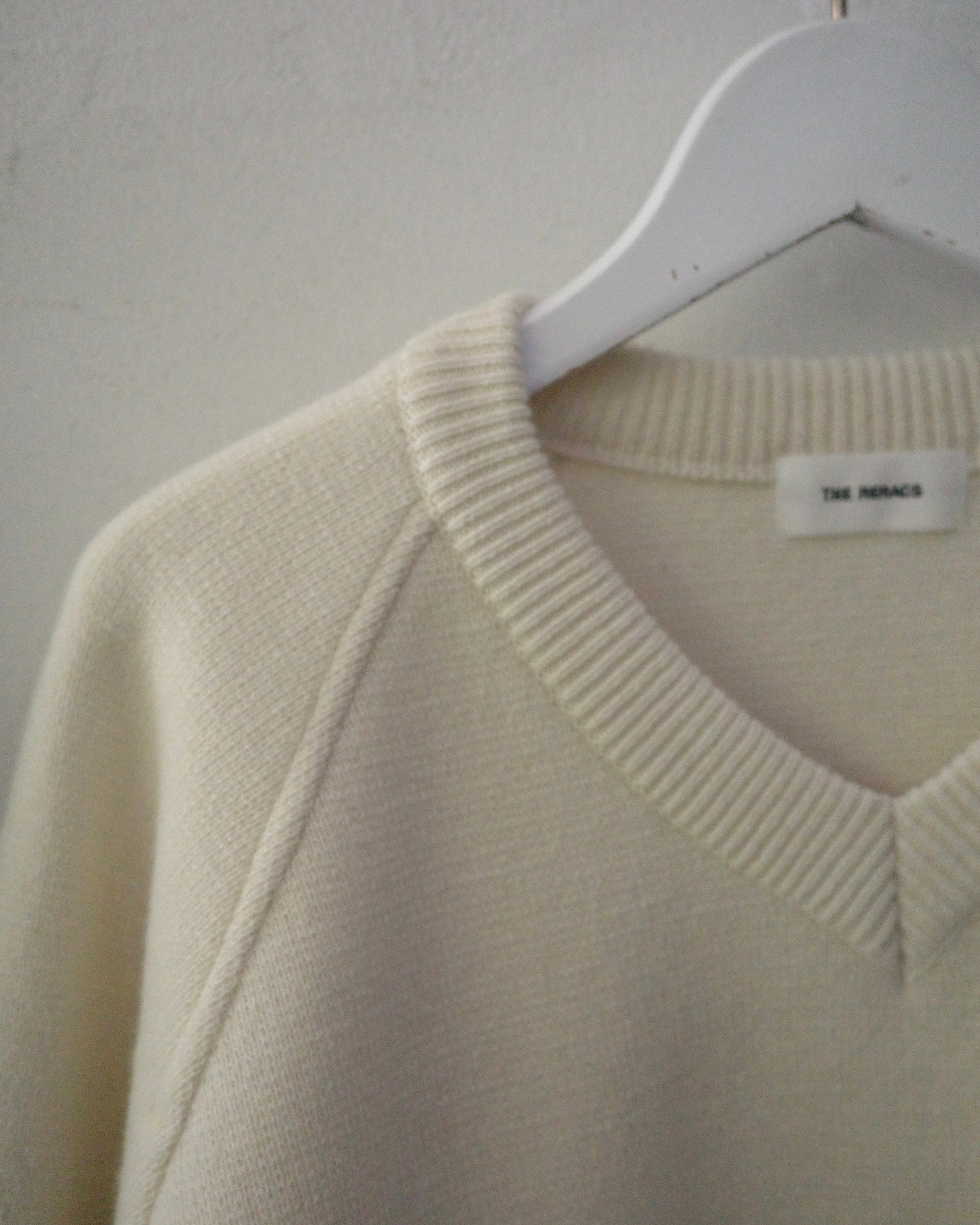THe RERACS / BULKY WOOL/CASHMERE RAGLAN V NECK PULLOVER KNIT -ECRU-