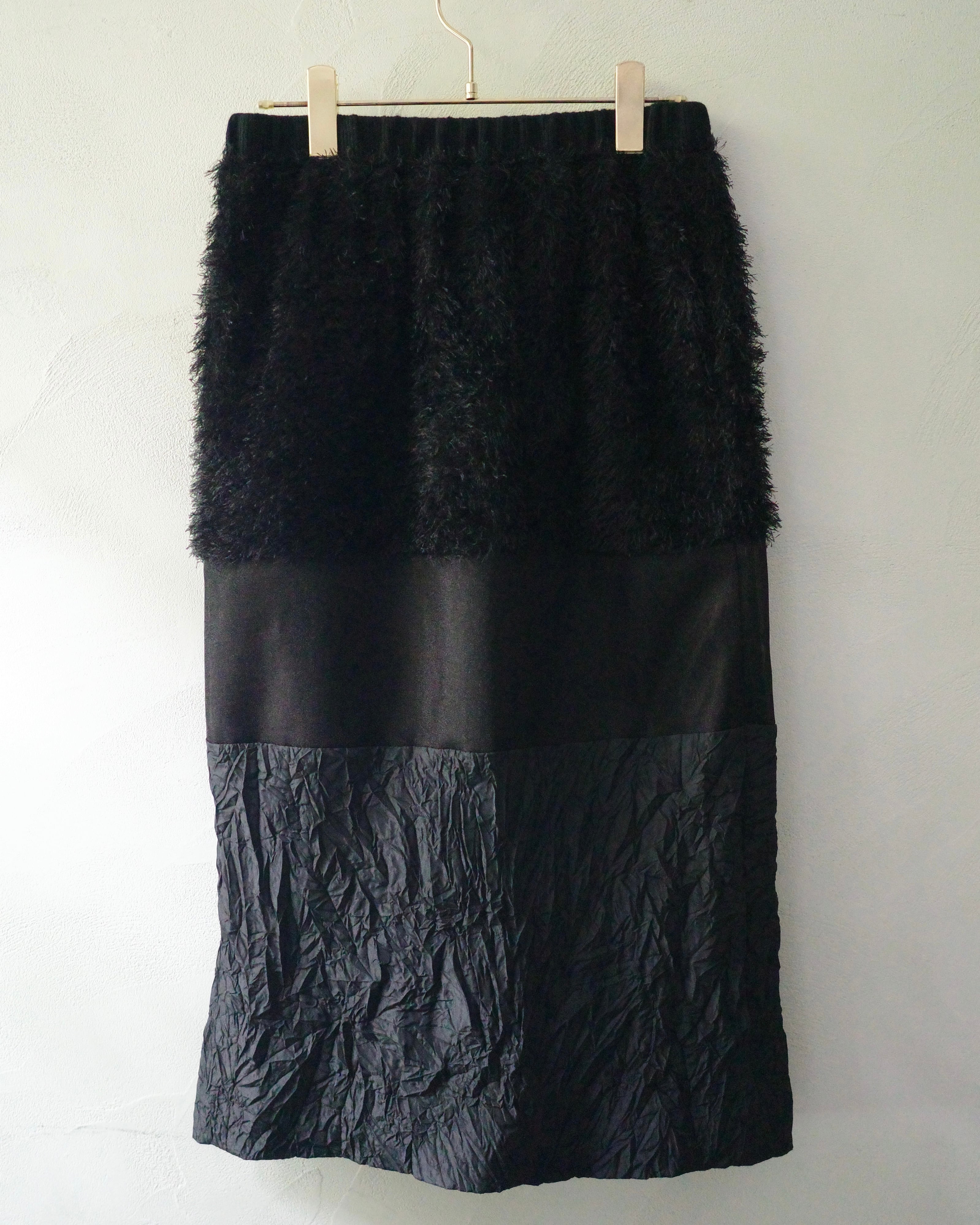 異素材を組み合わせた、デザインがポイントの質感の奥行きを感じるスカート。