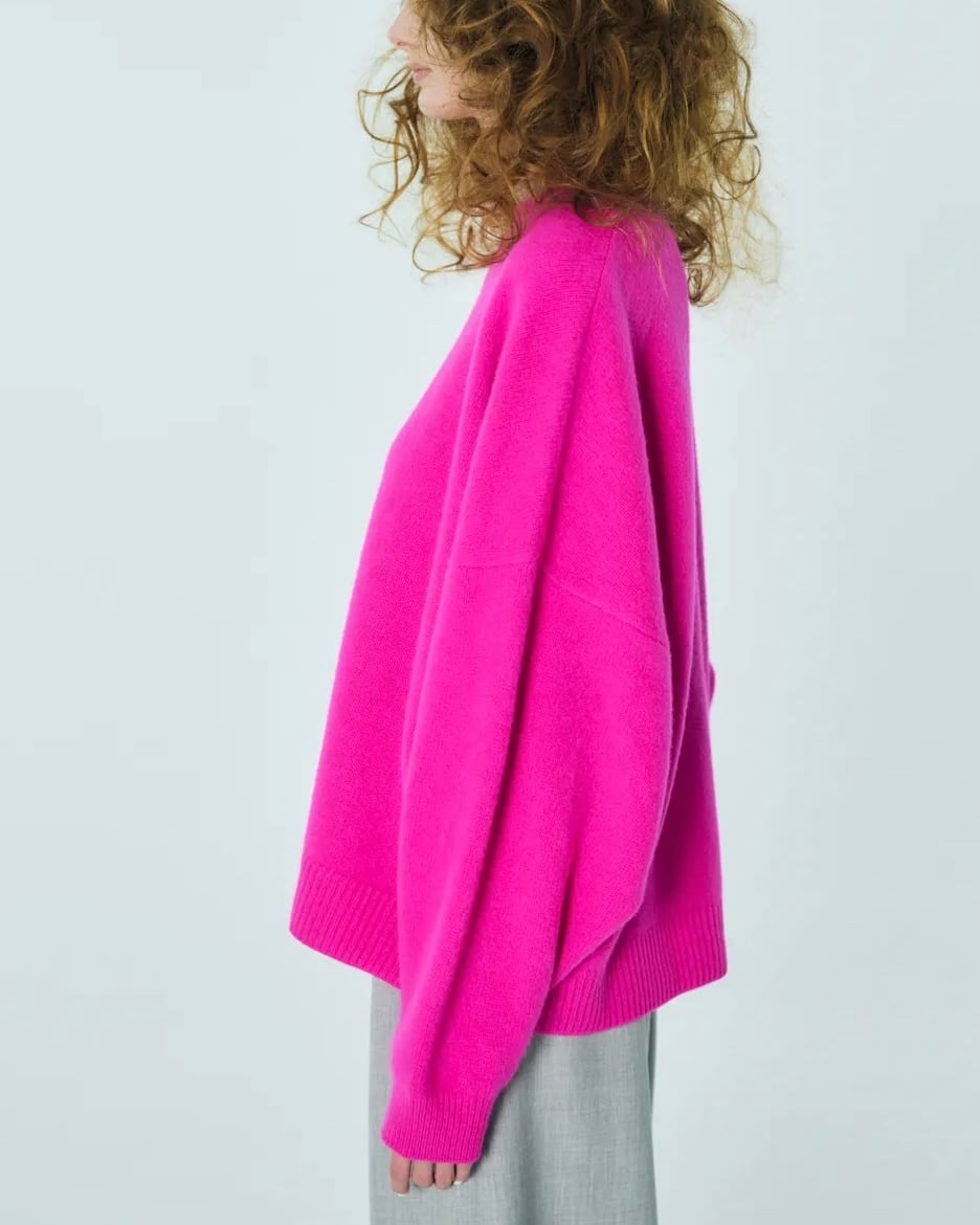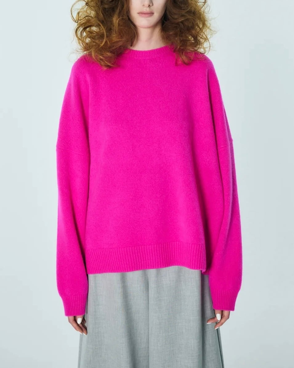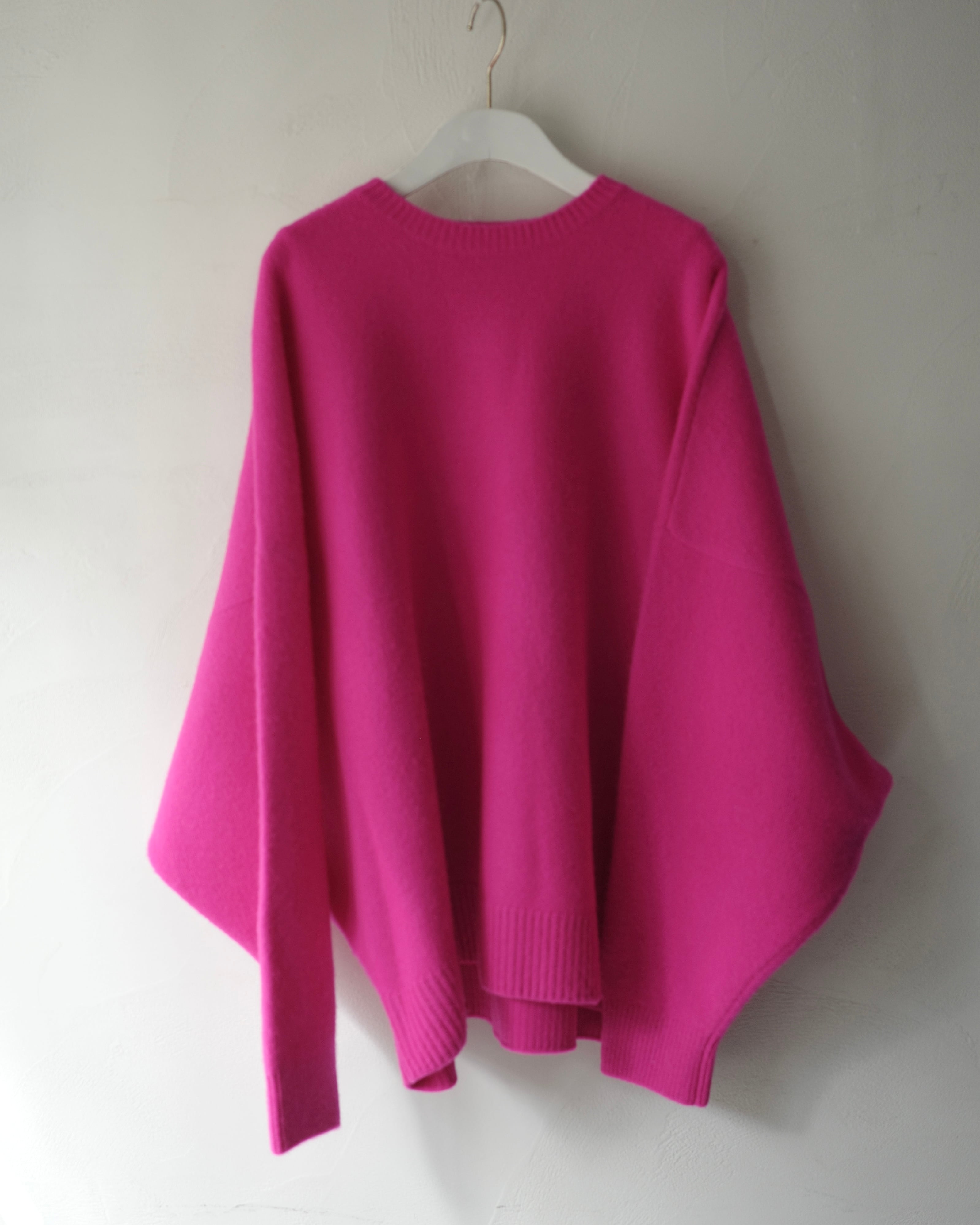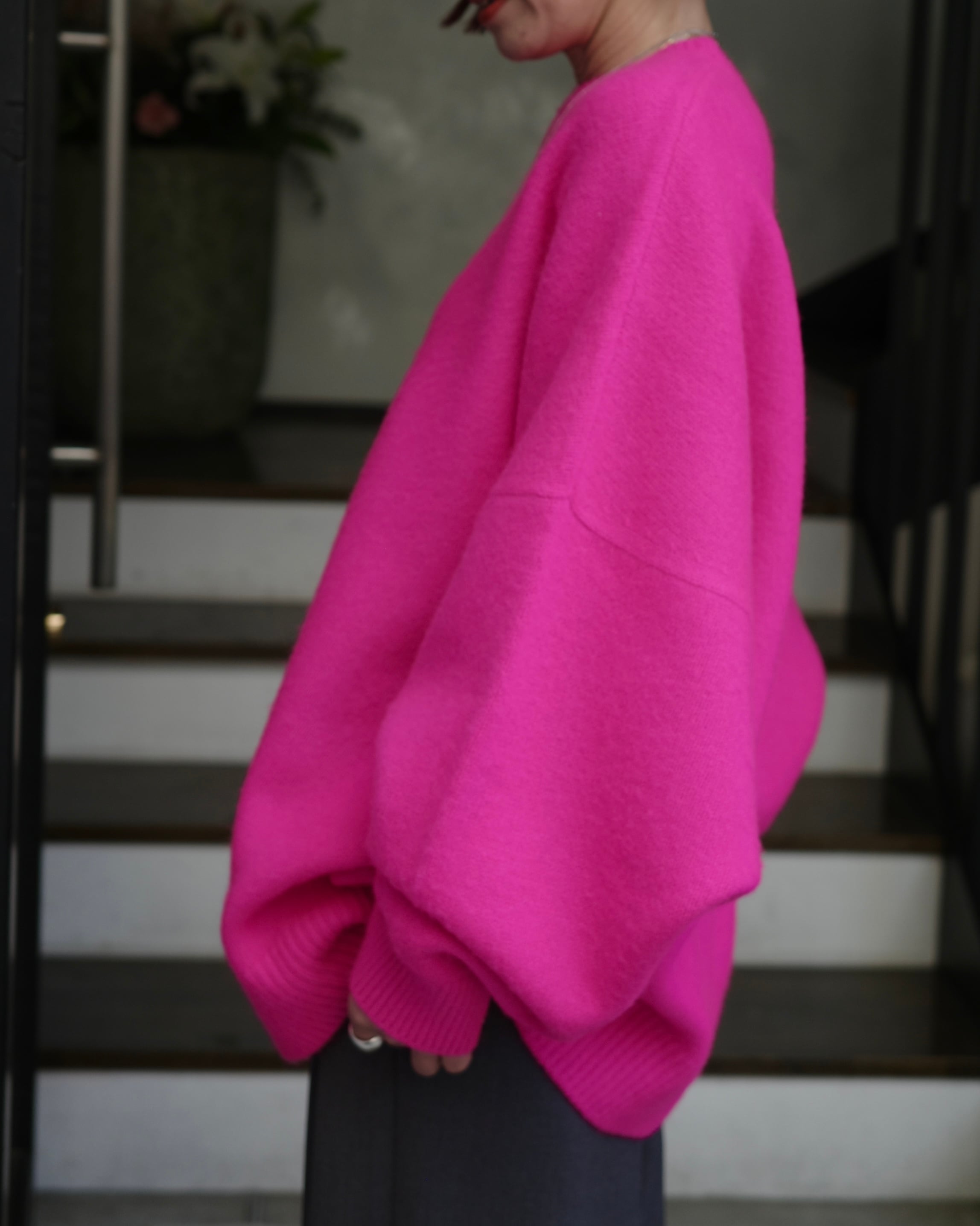 体をすっぽり優しく包み込むBIGシルエットのニットプルオーバー。