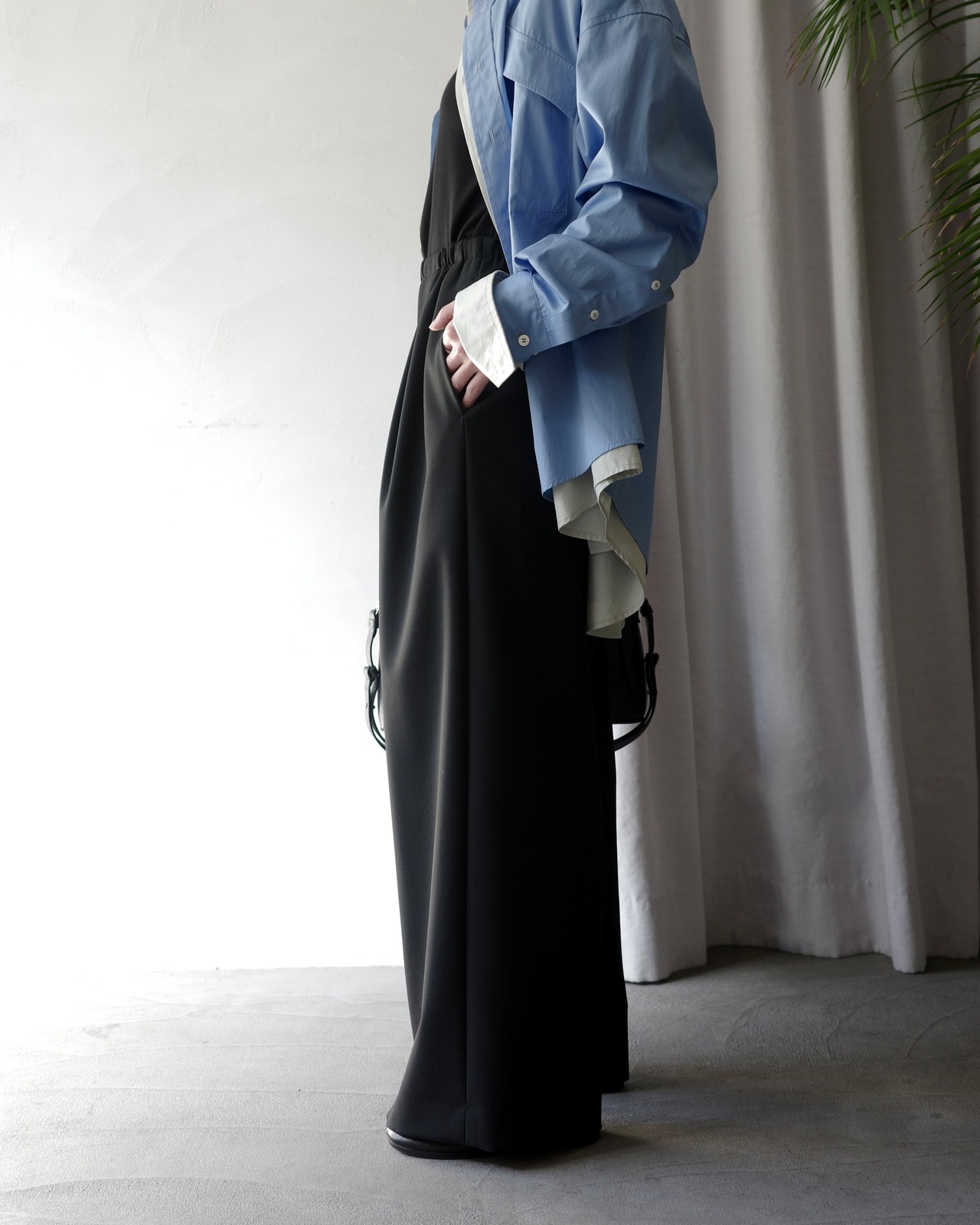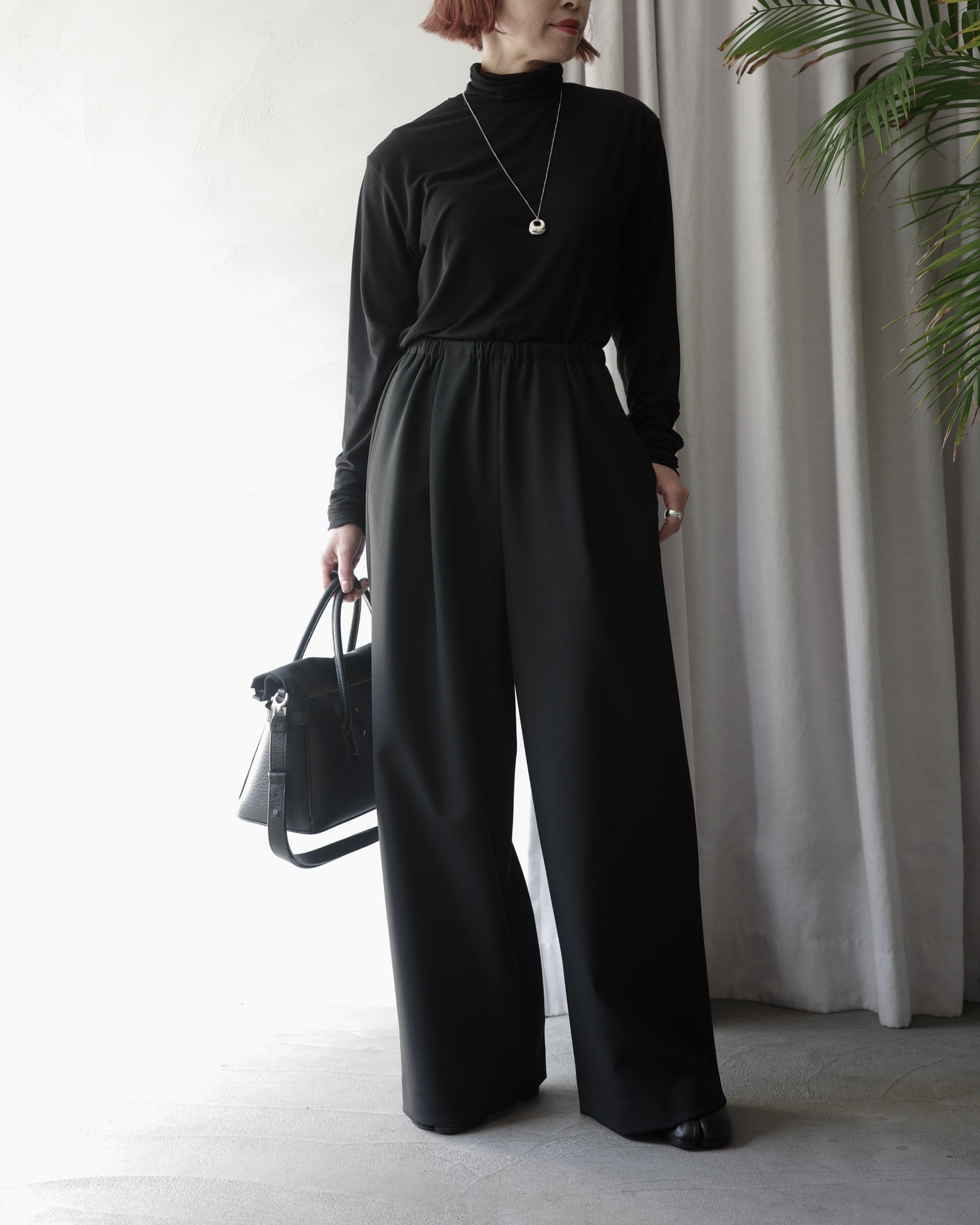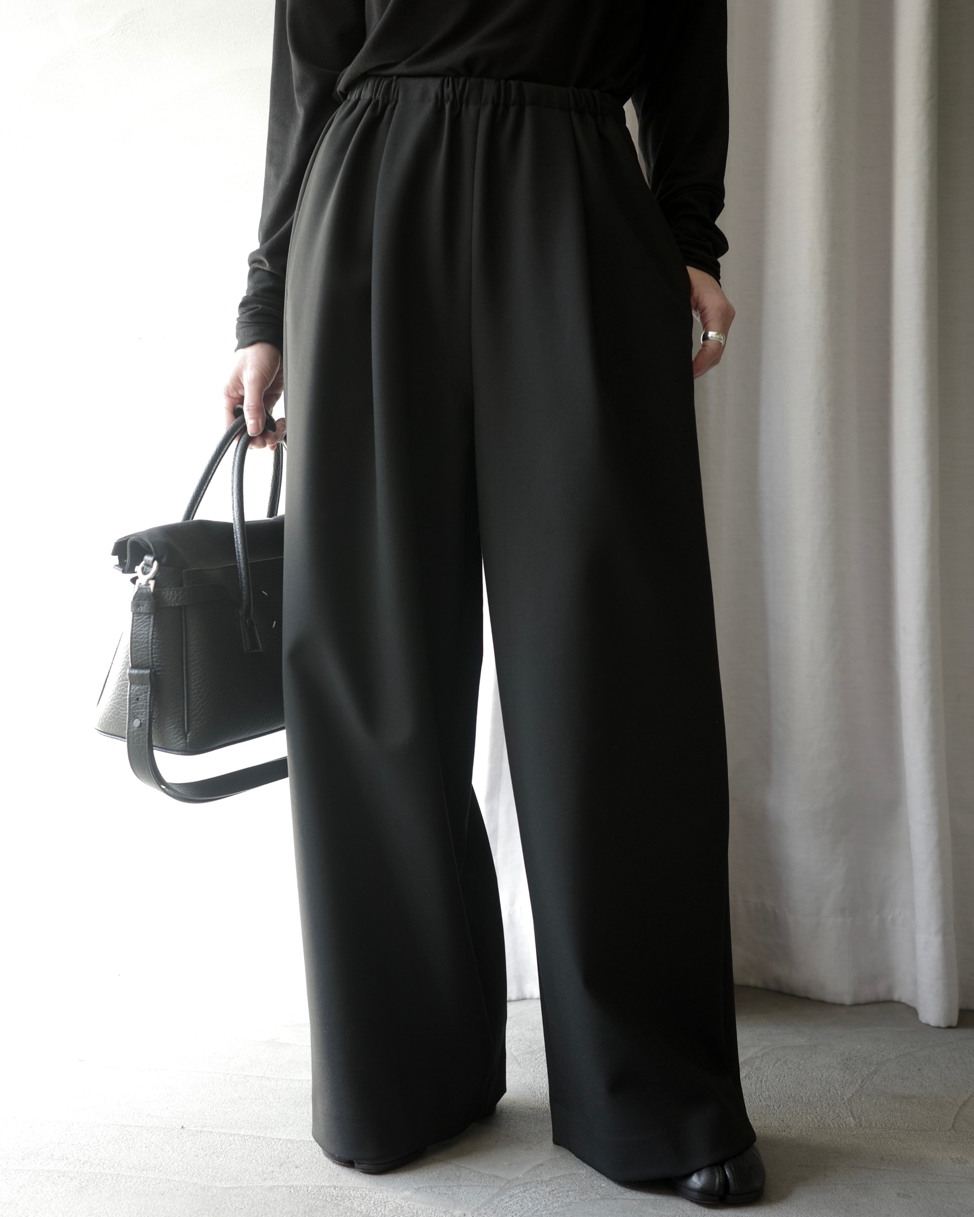 ENFOLD / RELAX WIDE PANTS -BLK-