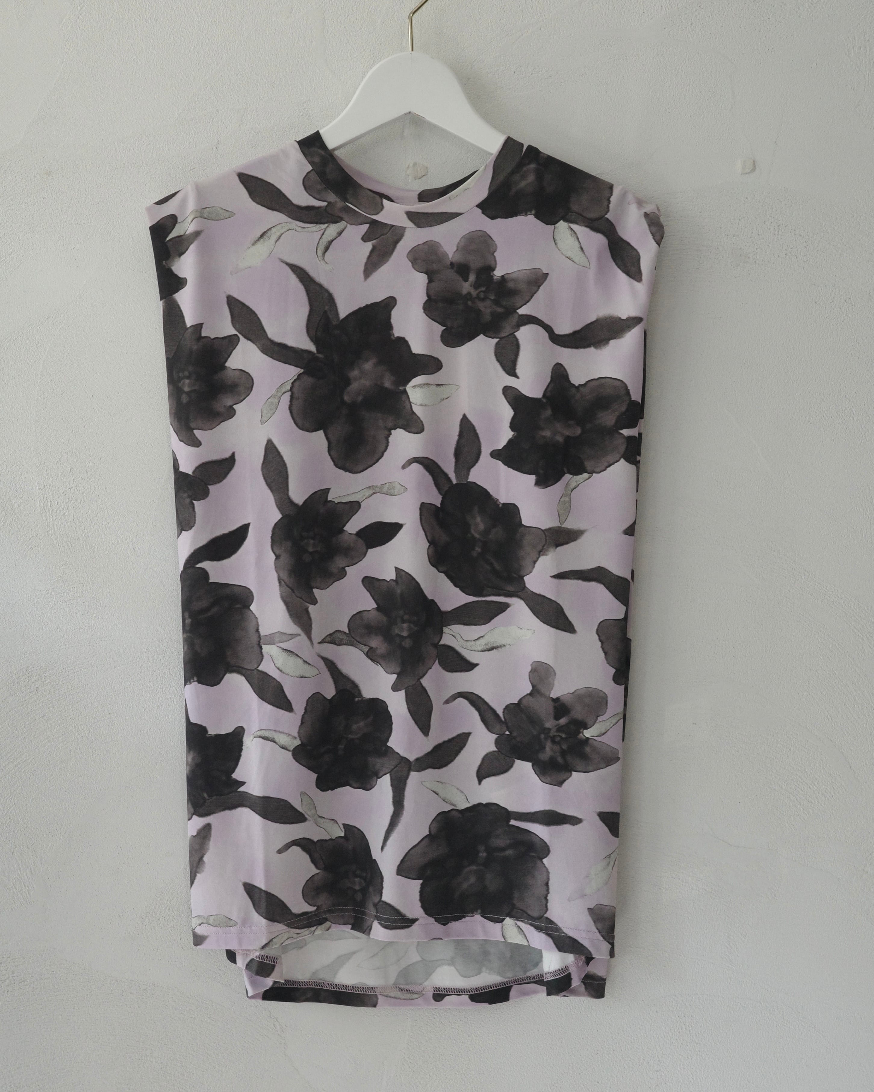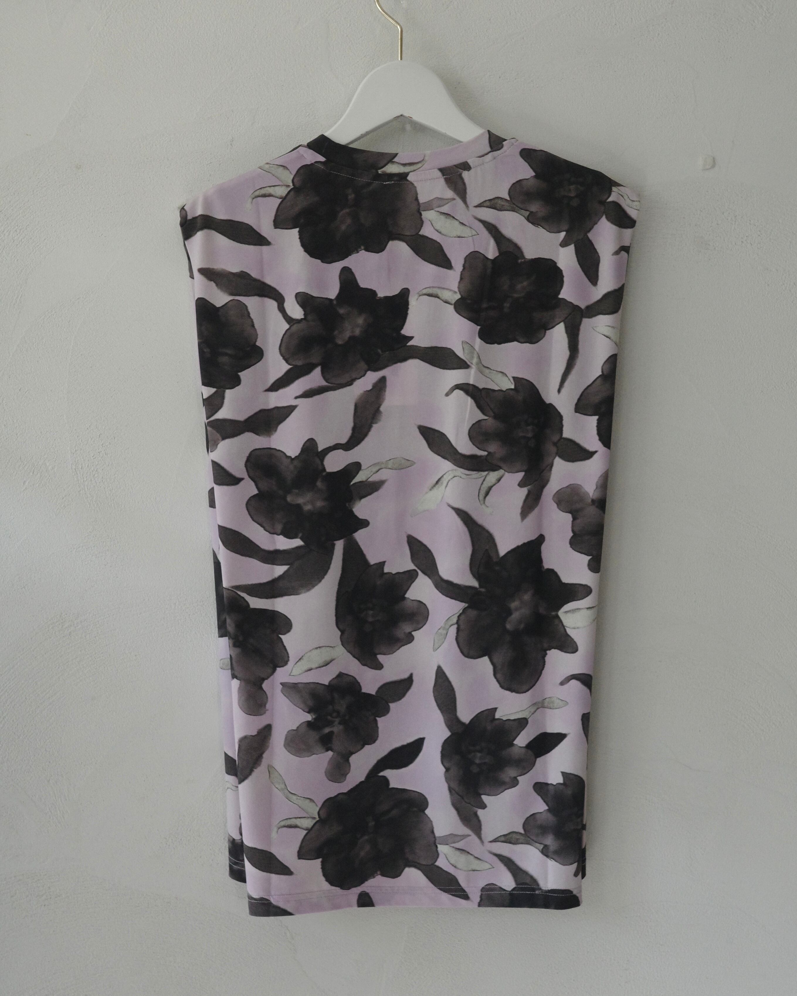 肩に施された特徴的なプリーツディテールが、視覚的なアクセントとシルエットを際立たせるノースリーブのジャージートップス。プリントデザインが個性を際立たせ、すっきりとしたラインと計算された構造により、重ね着にも一枚での着用にも活躍します。