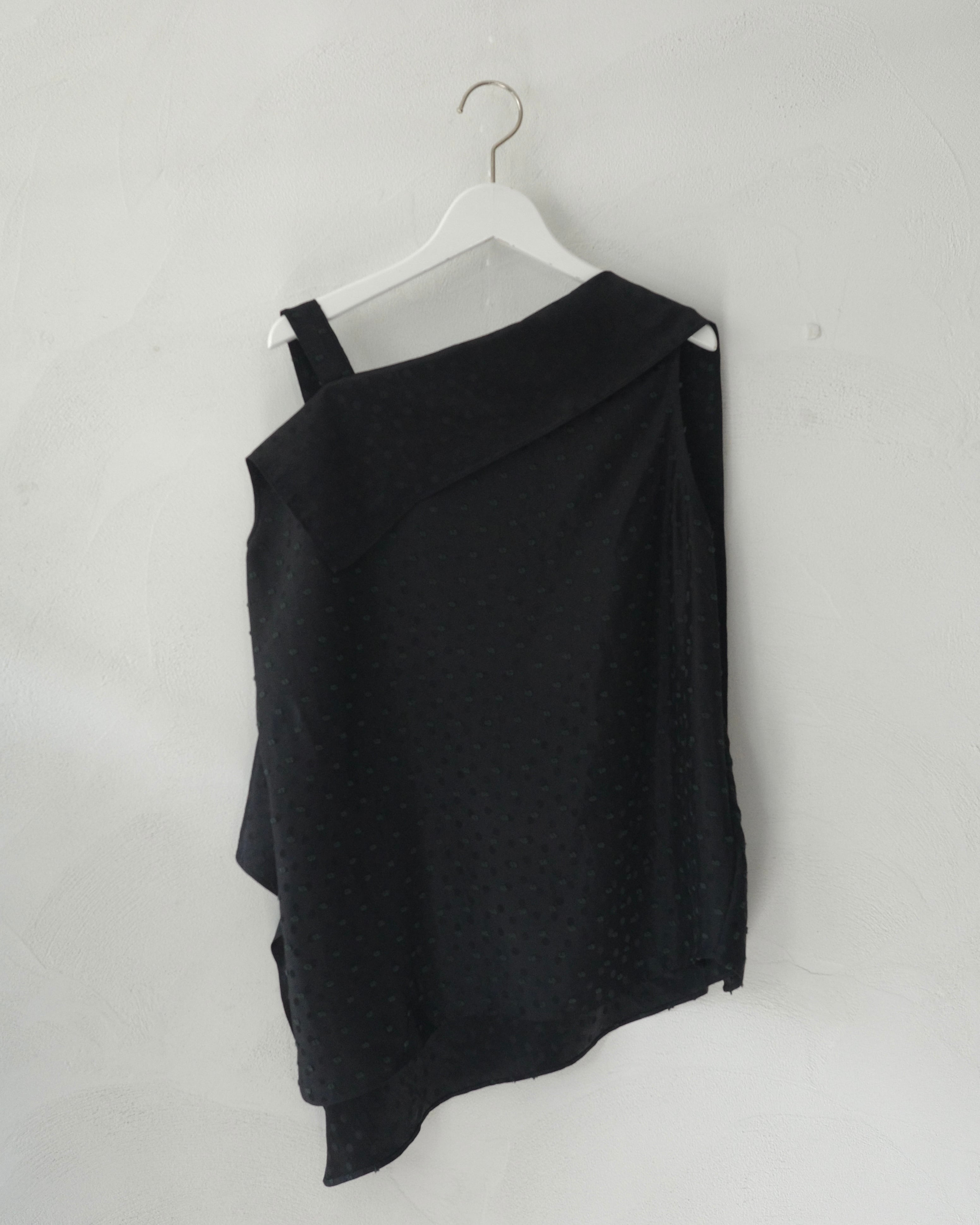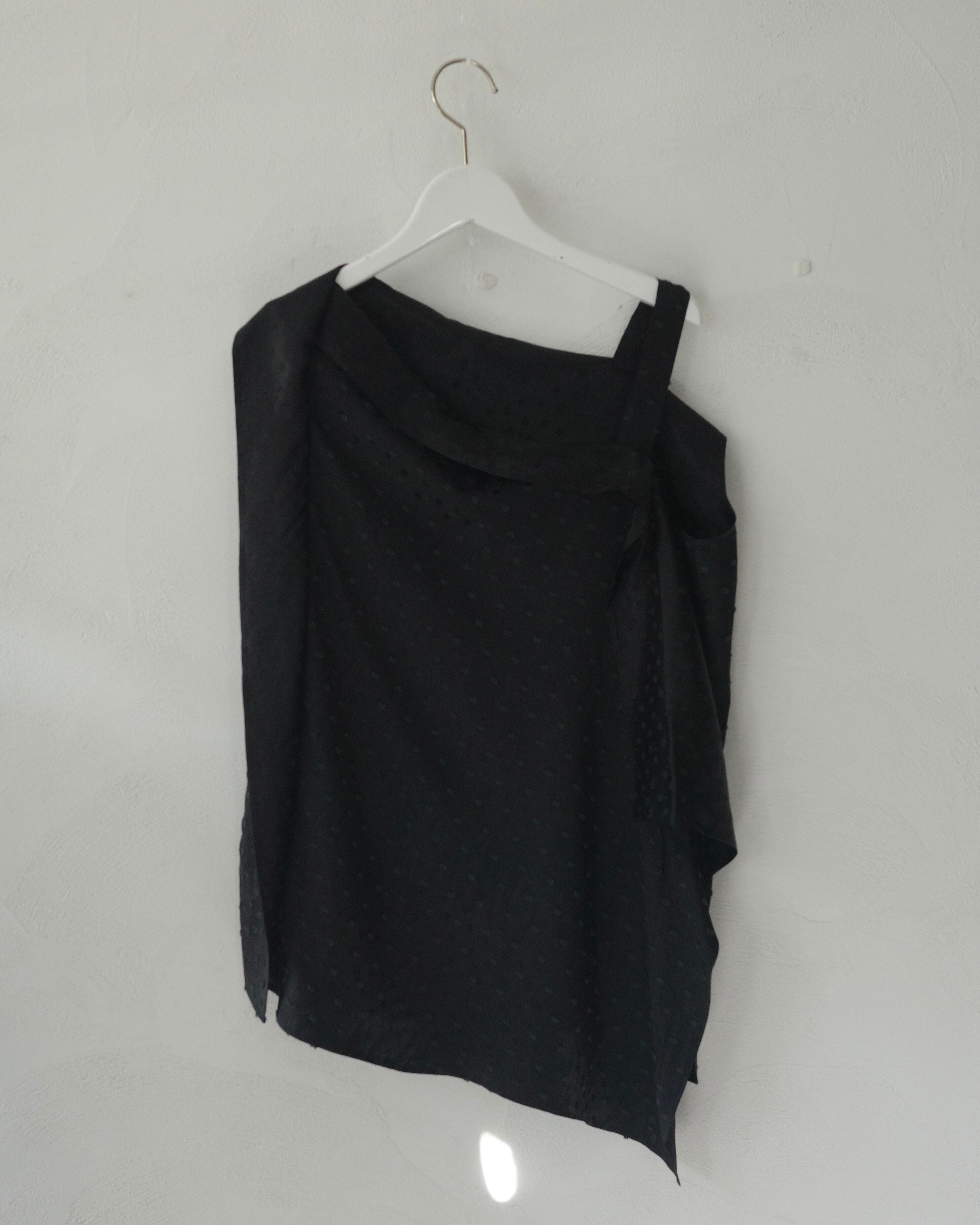 ブラックのペトロールアセテートを使用したトゥリーニ織りトップス。