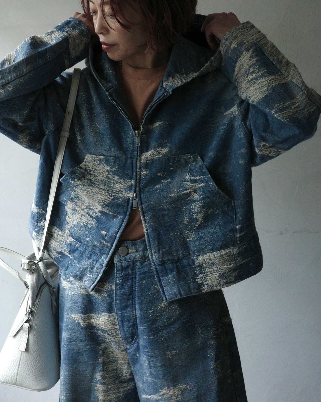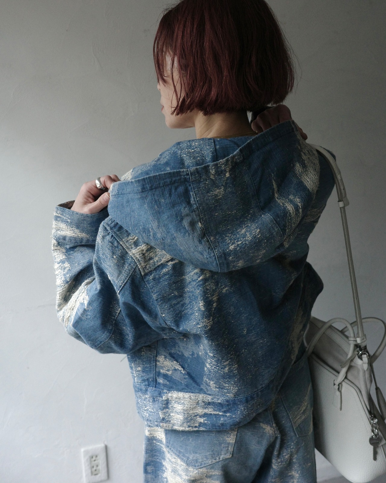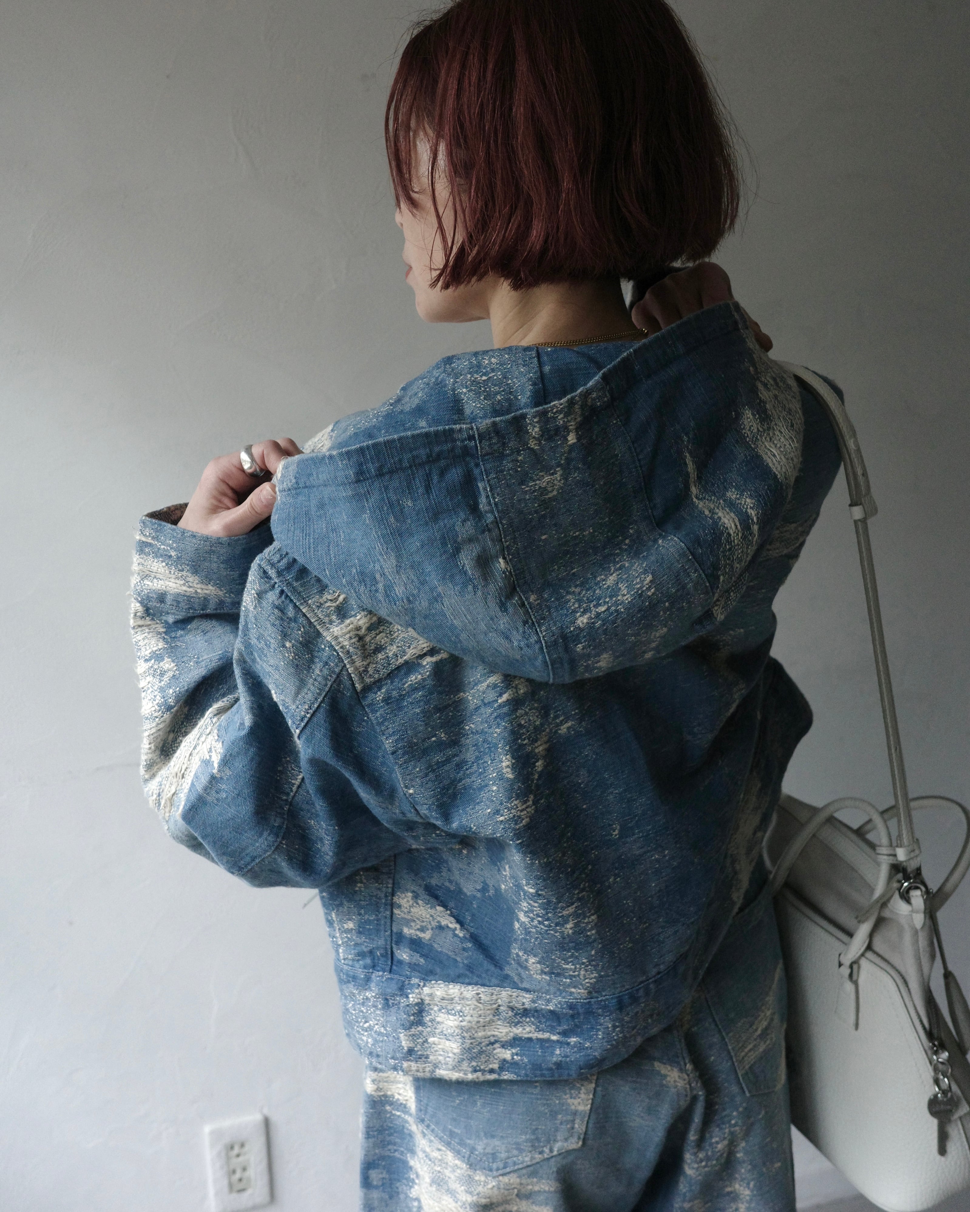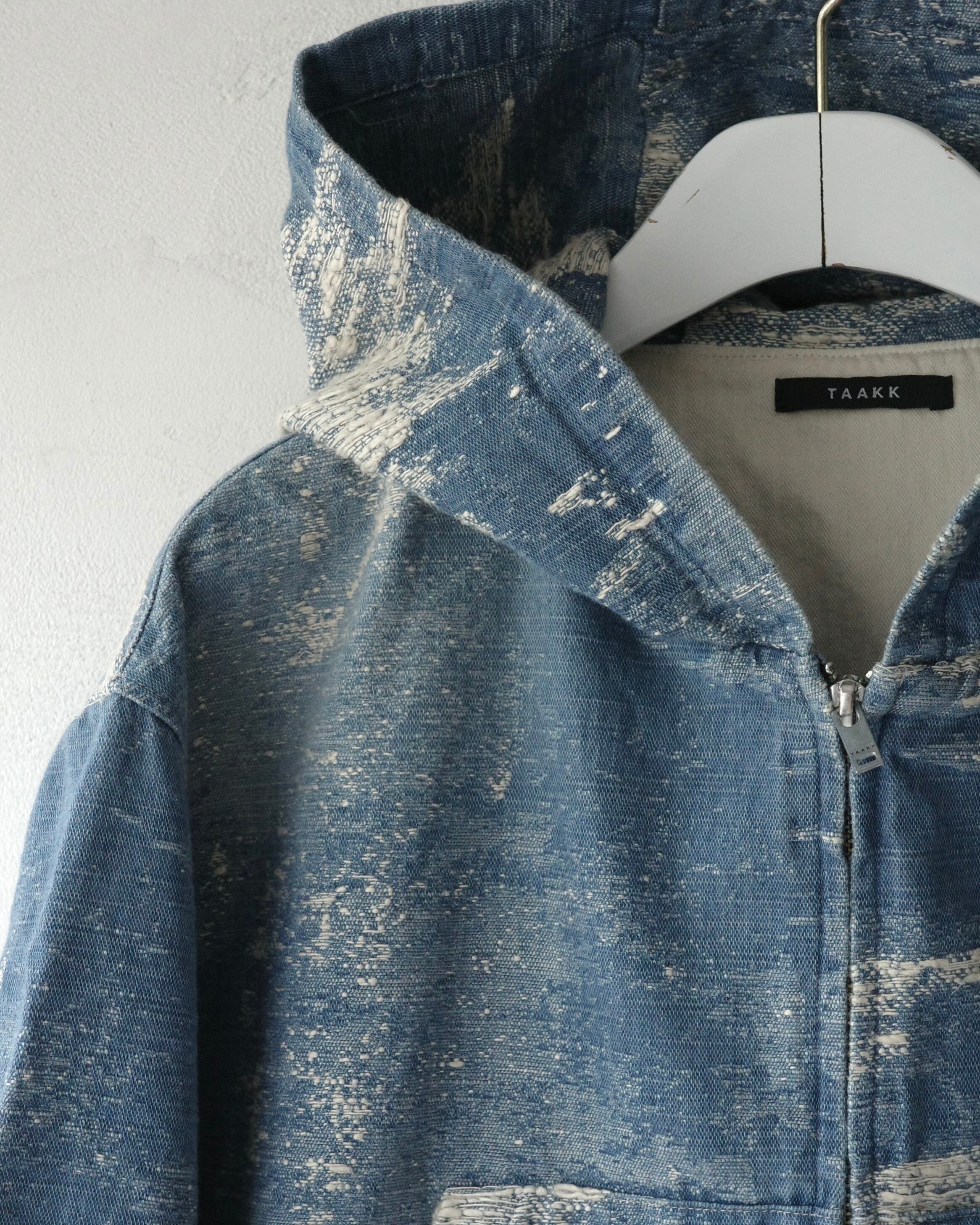 TAAKK定番のネップ入りジャガードデニムを使用したフーデッドジャケットです。