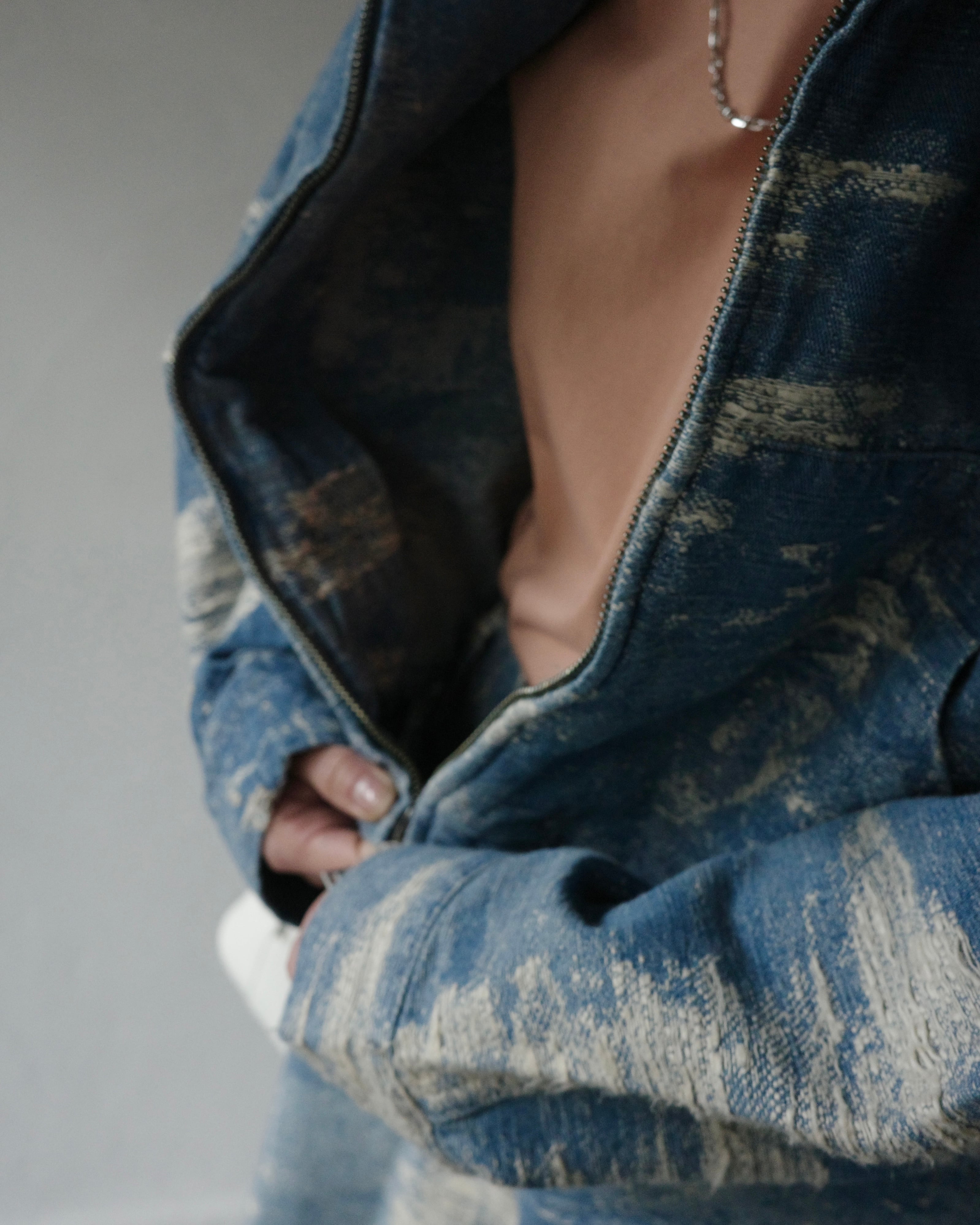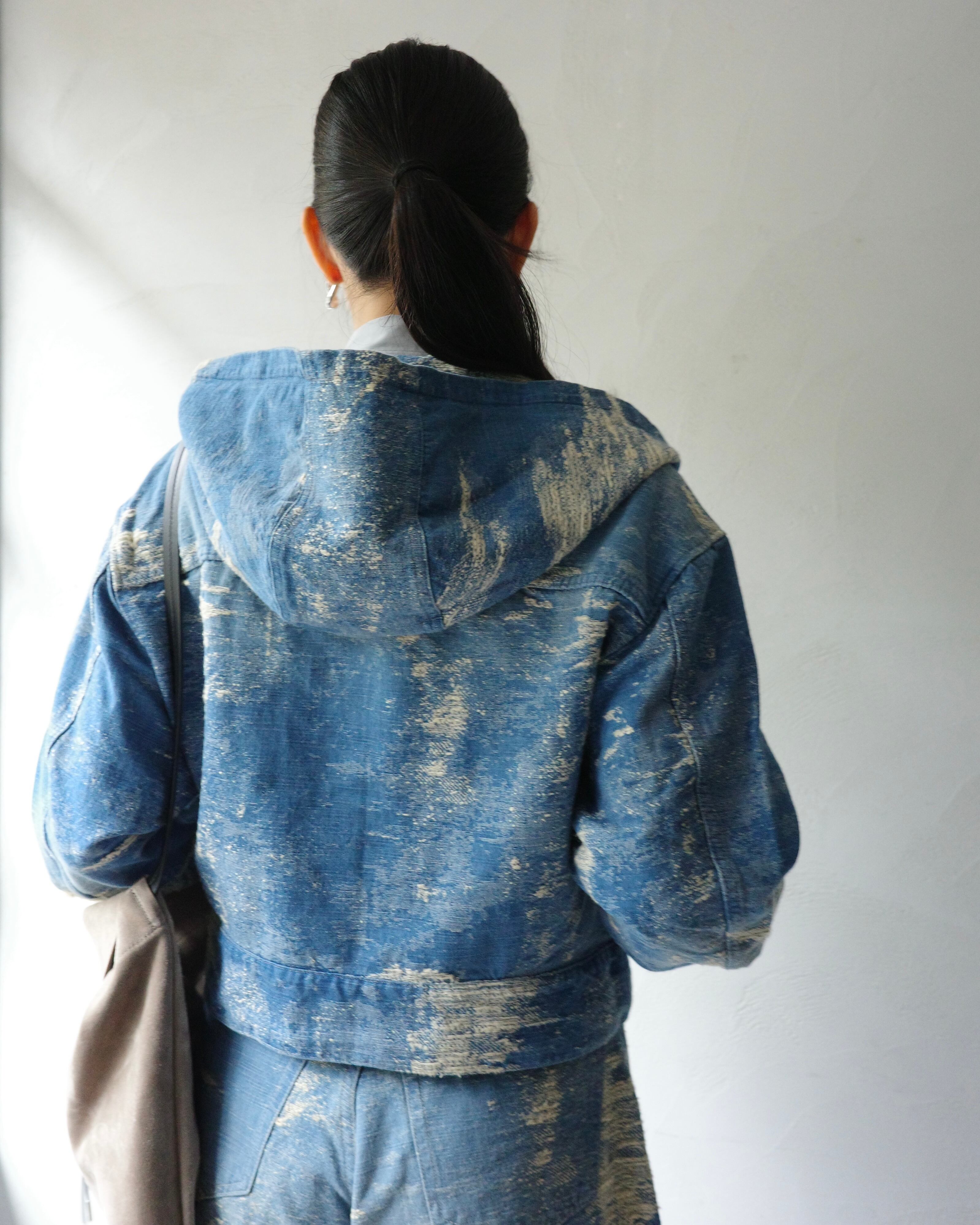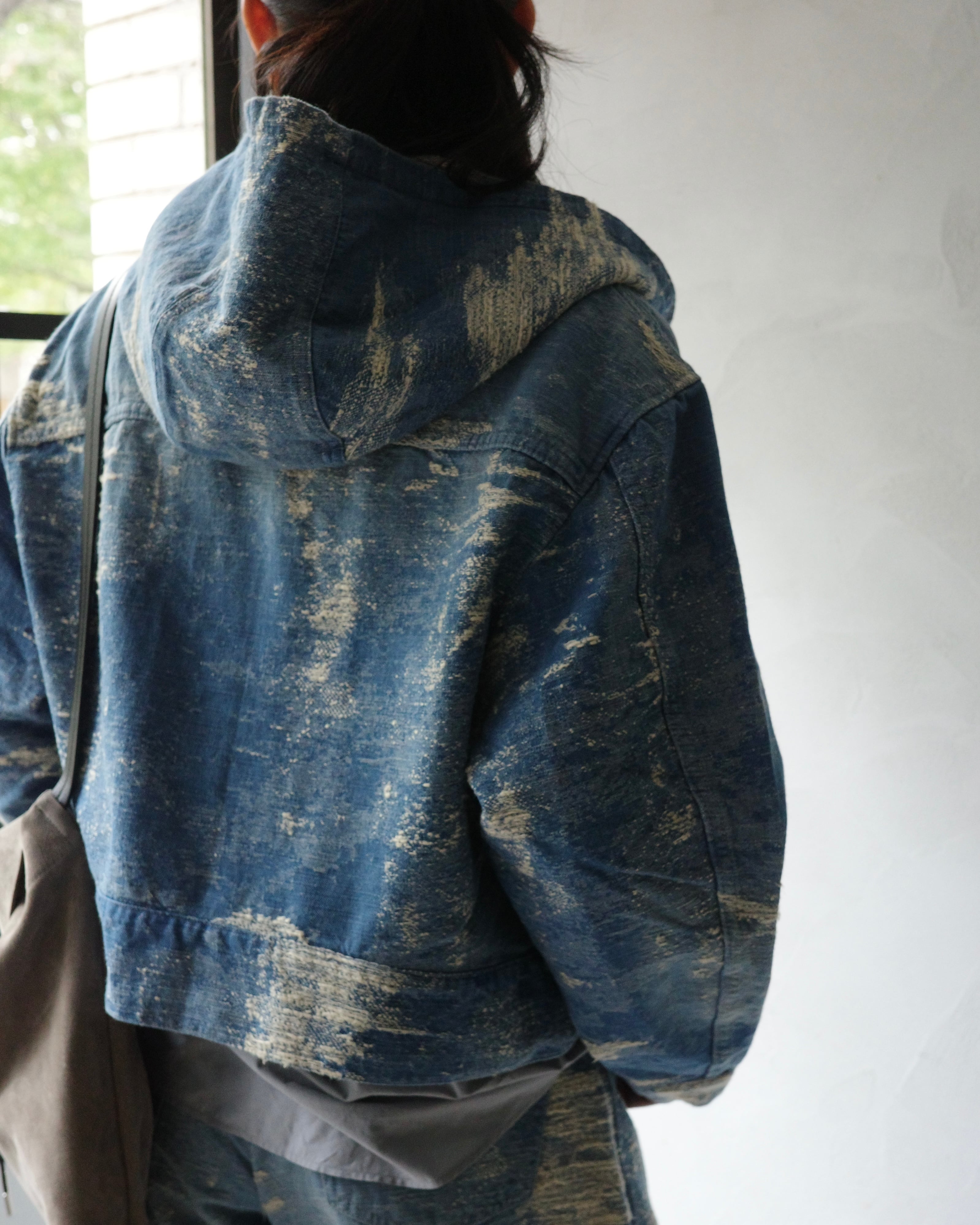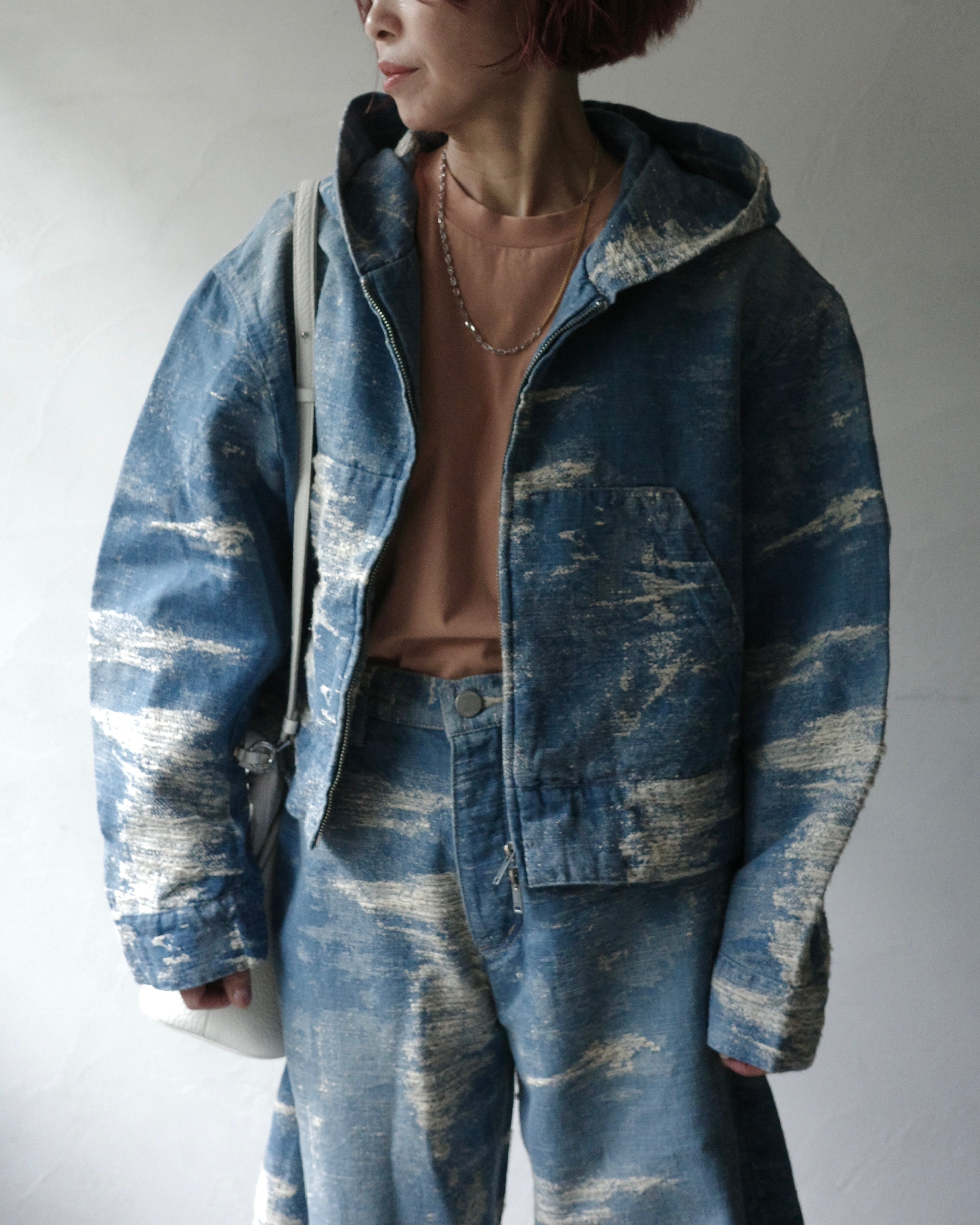 TAAKK定番のネップ入りジャガードデニムを使用したフーデッドジャケットです。