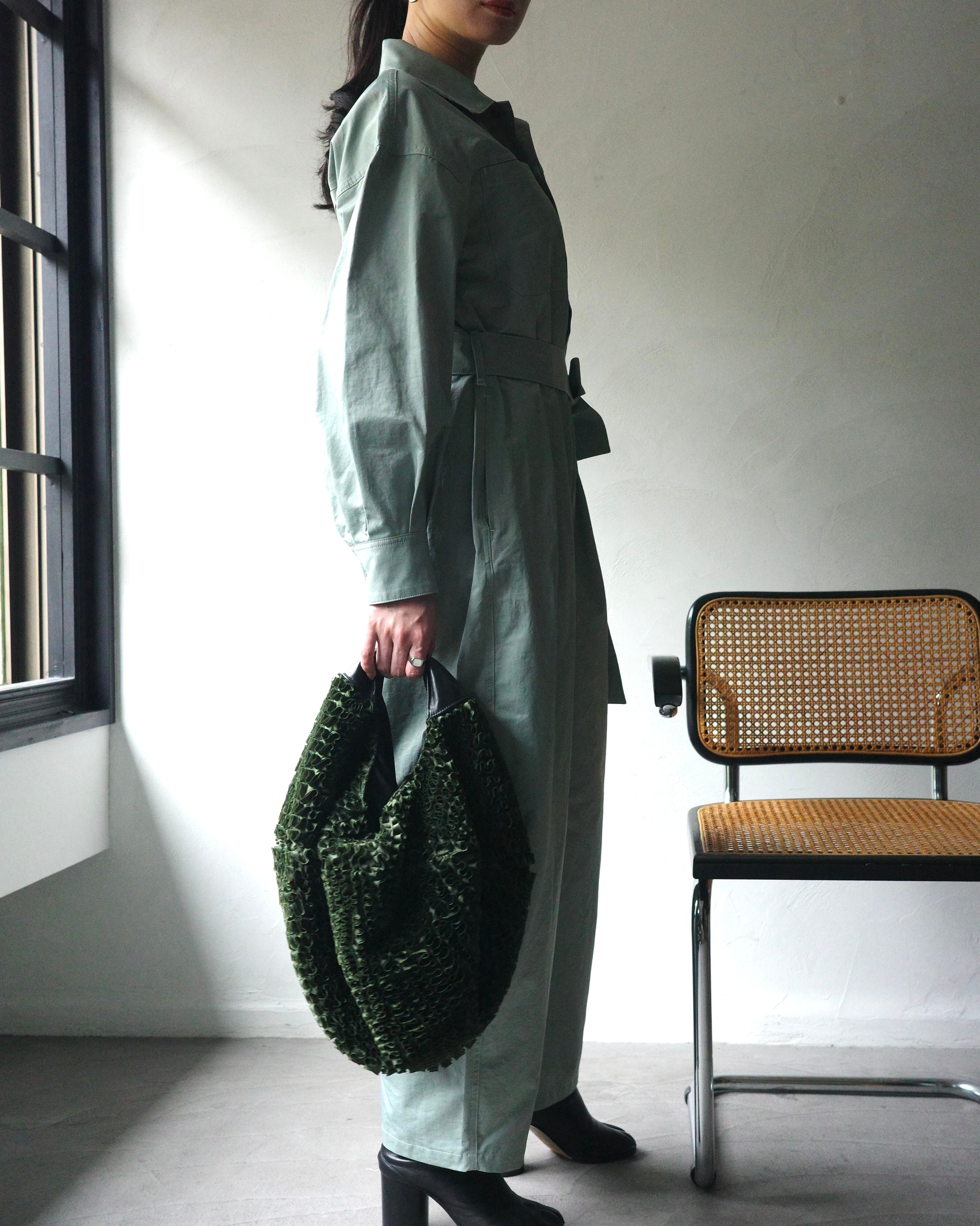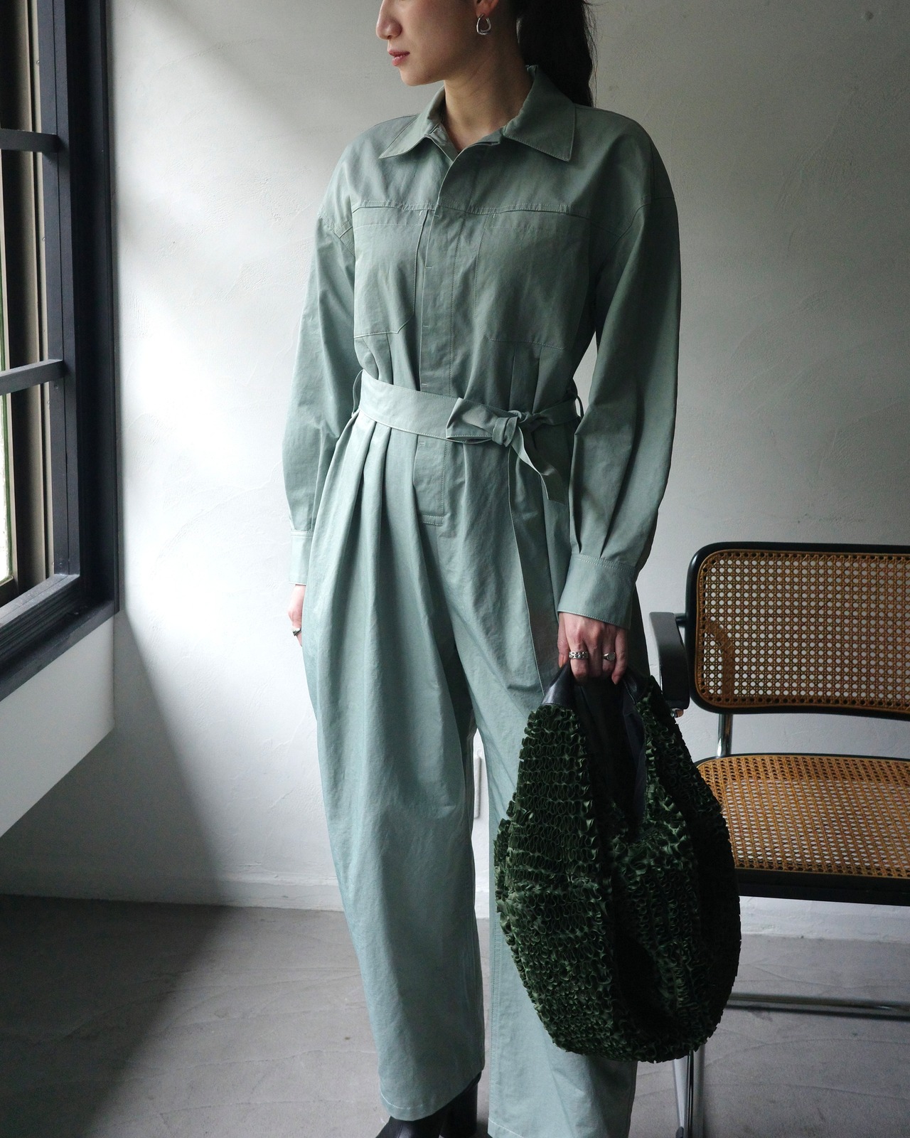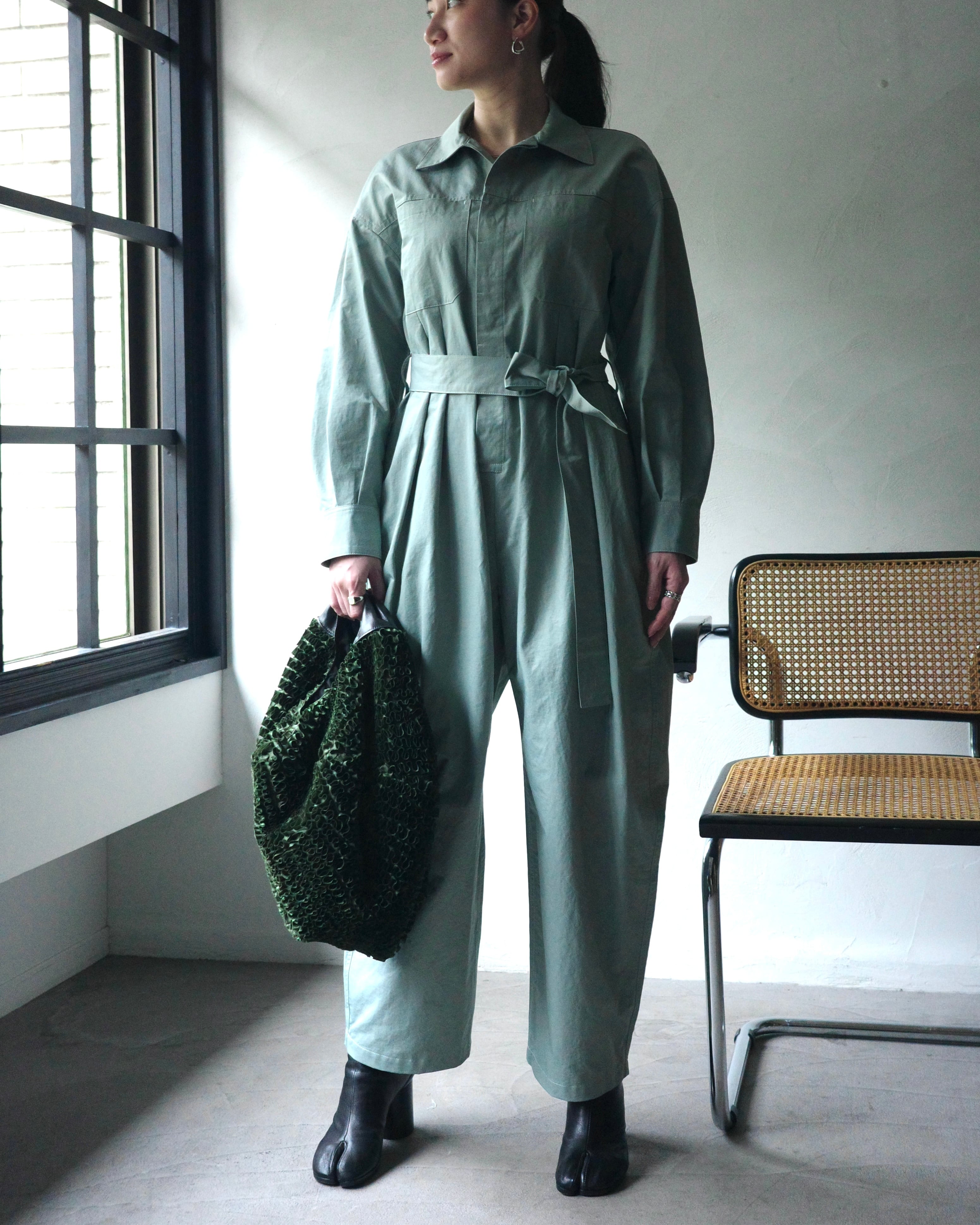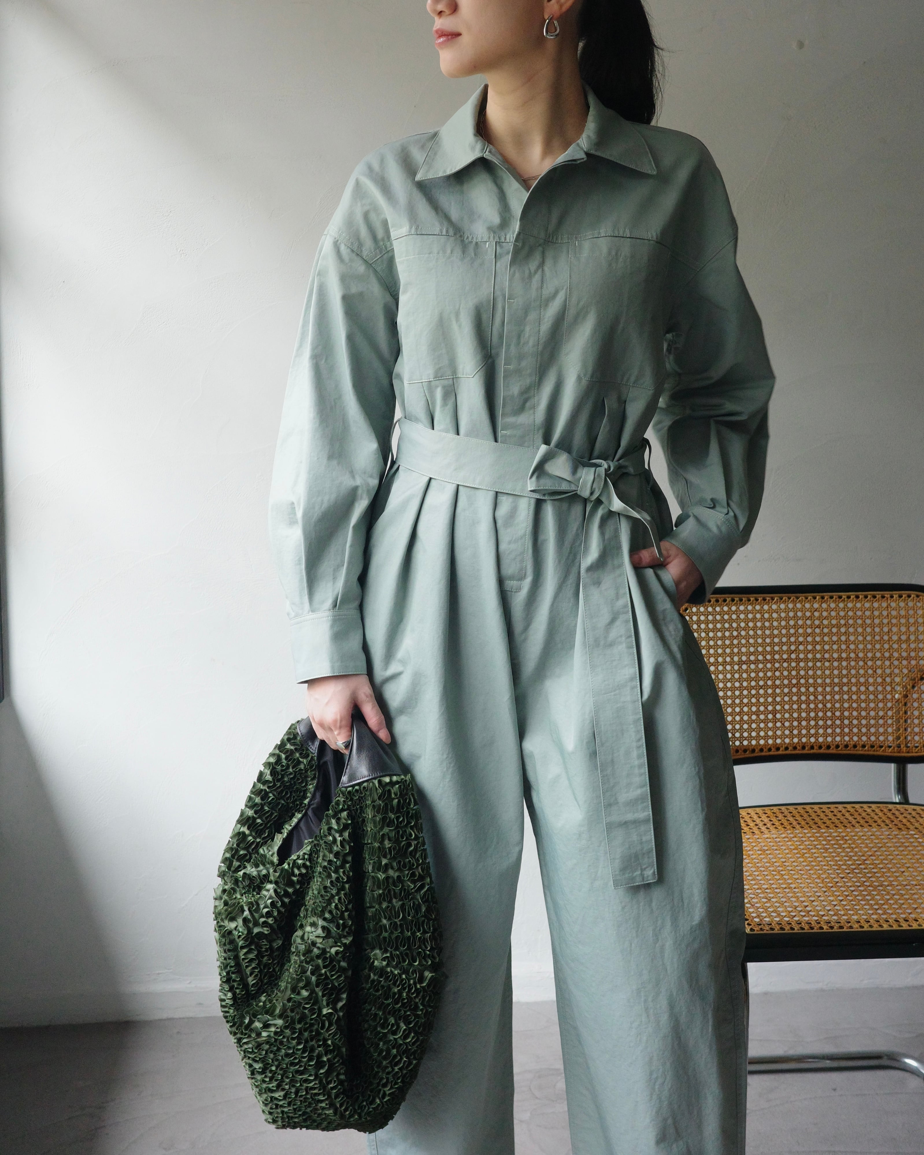 身体に寄り添いすぎない、余白のあるジャンプスーツ。