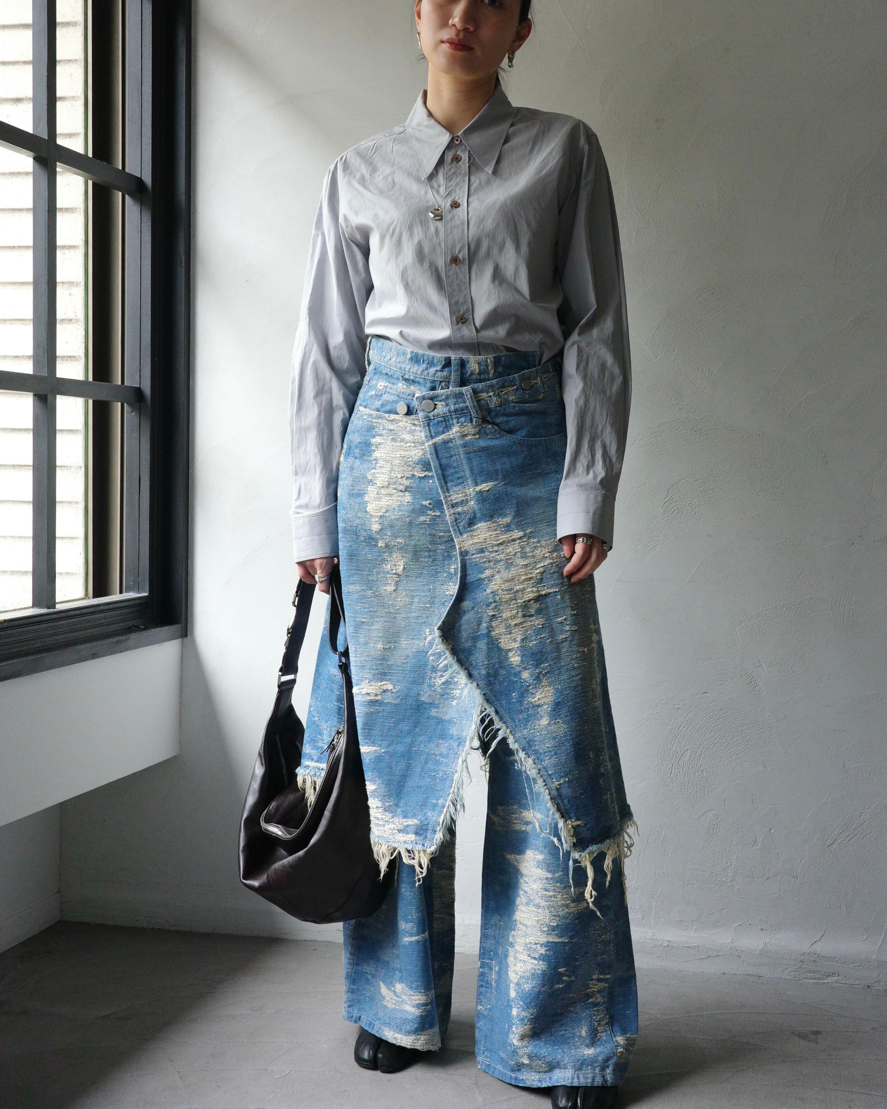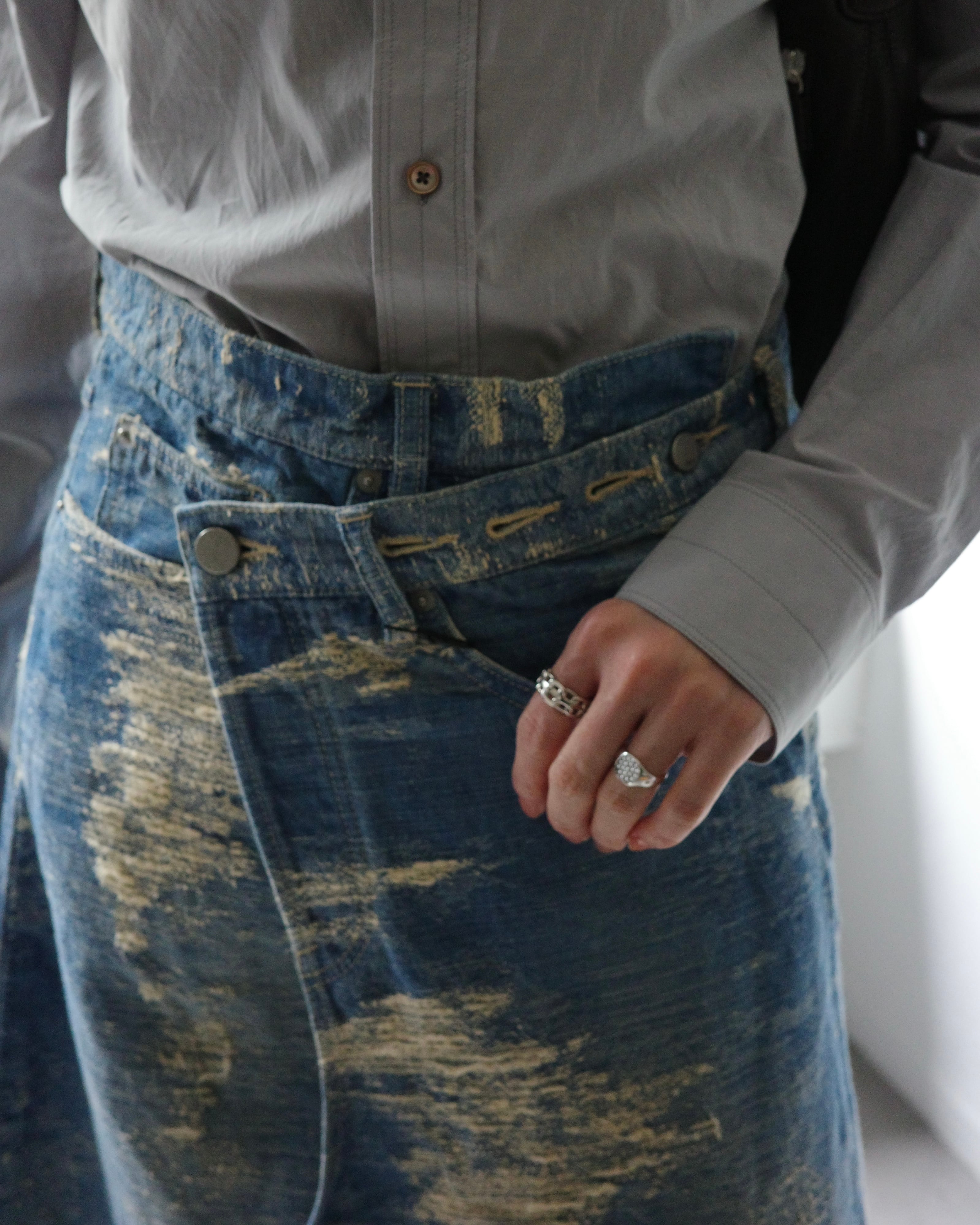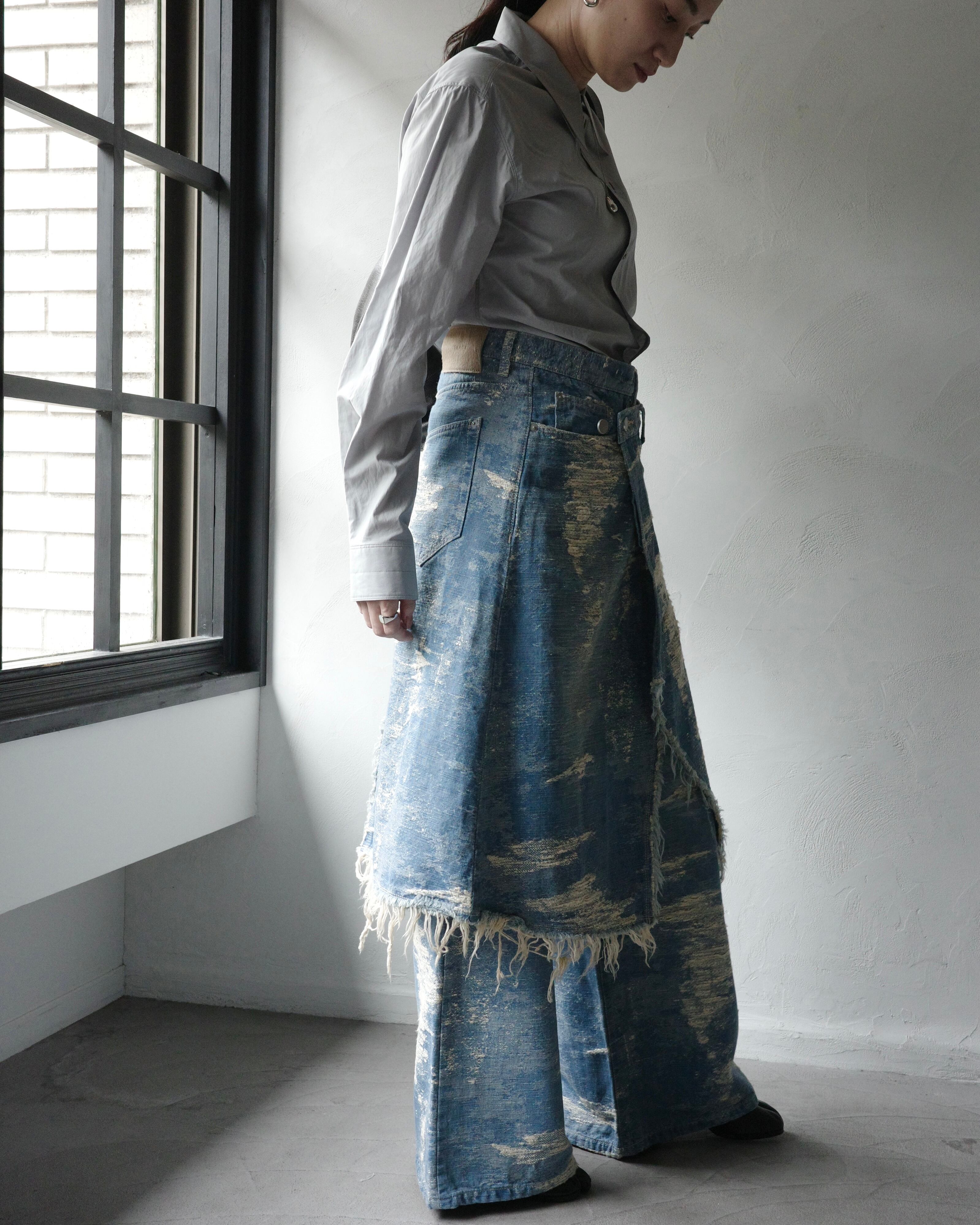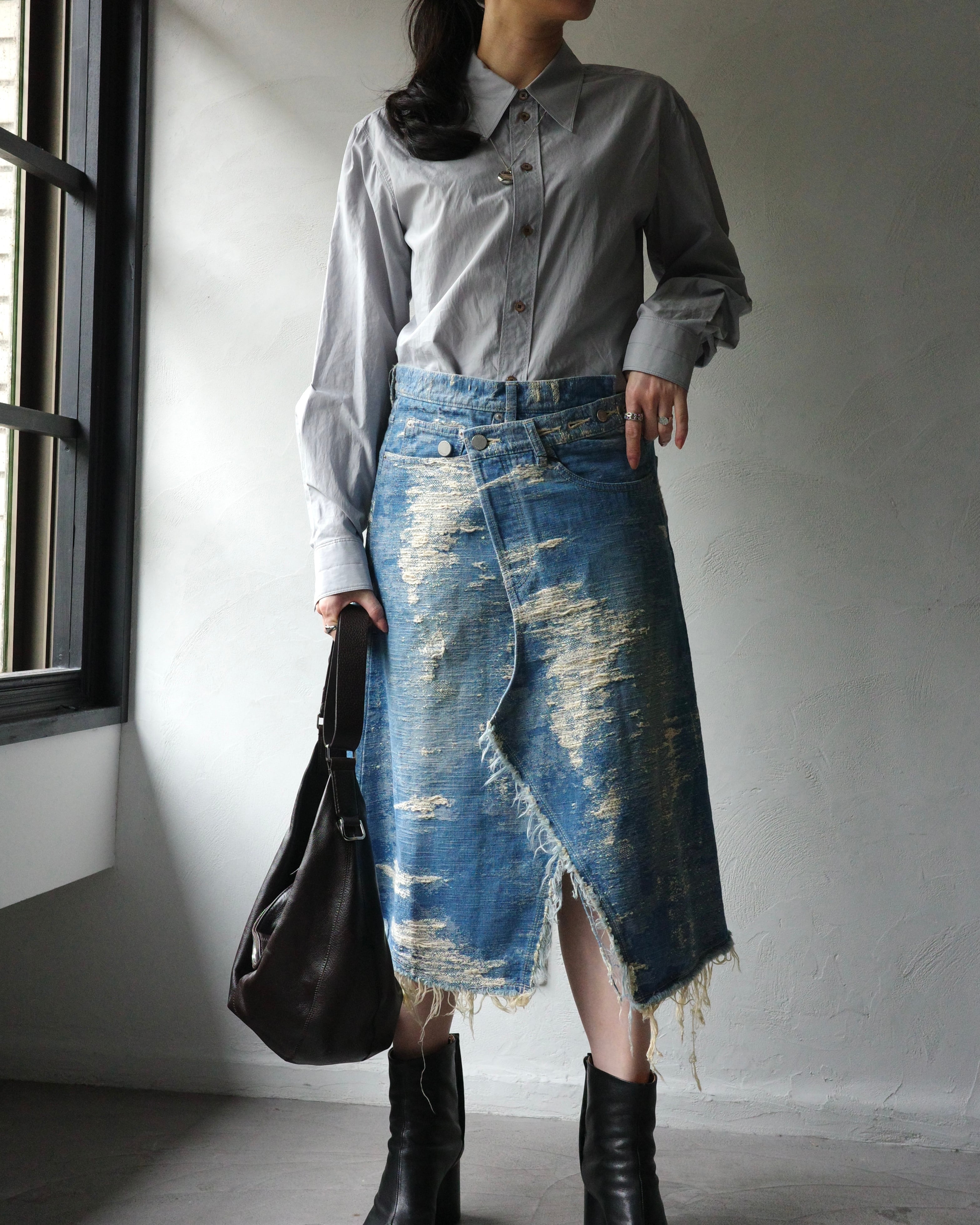 TAAKK定番のデニムシリーズから、今季新たに登場したラップスカート。