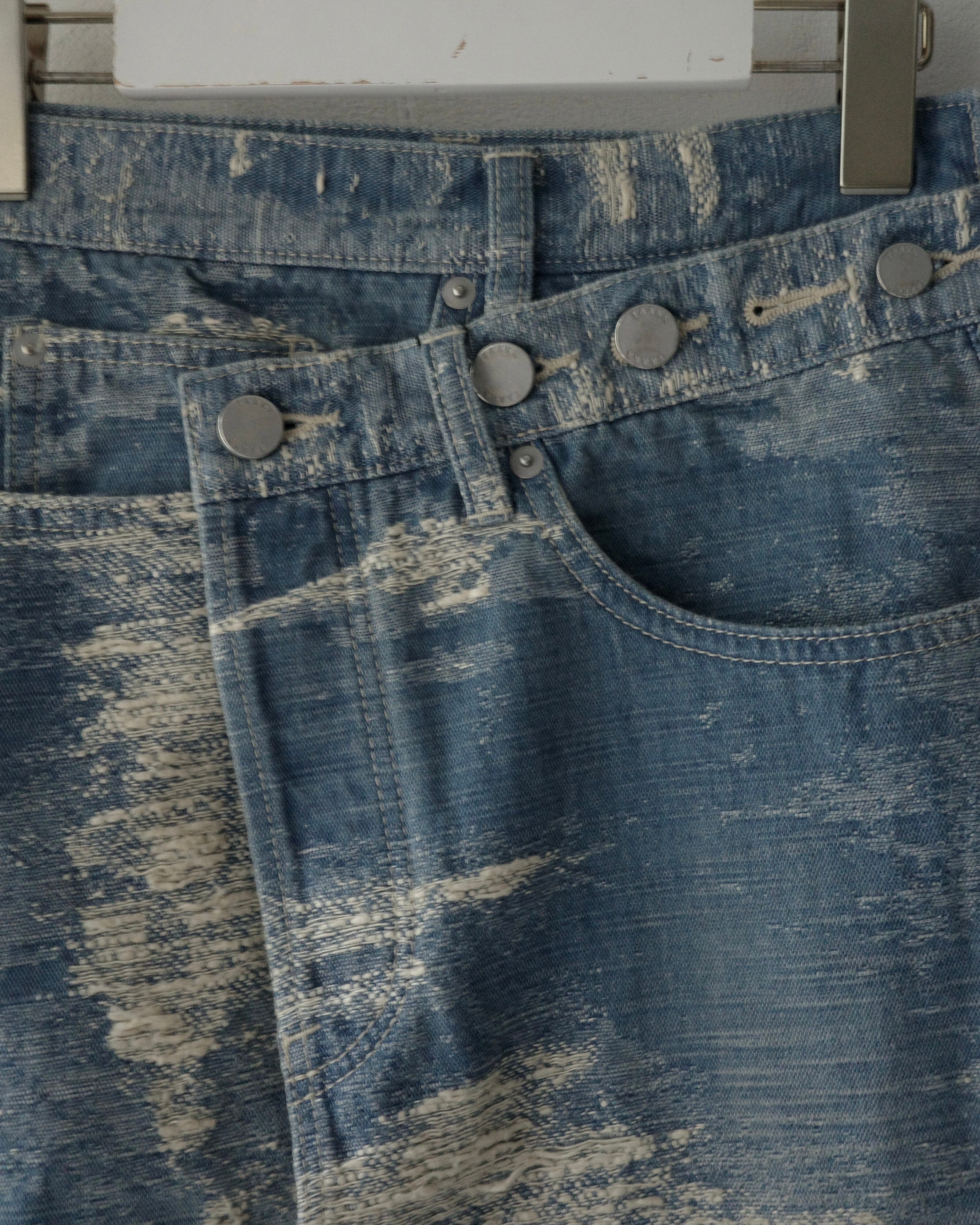表情豊かな生地は、ネップ糸を織り交ぜてジャカード織で仕立てた特別なデニム。
