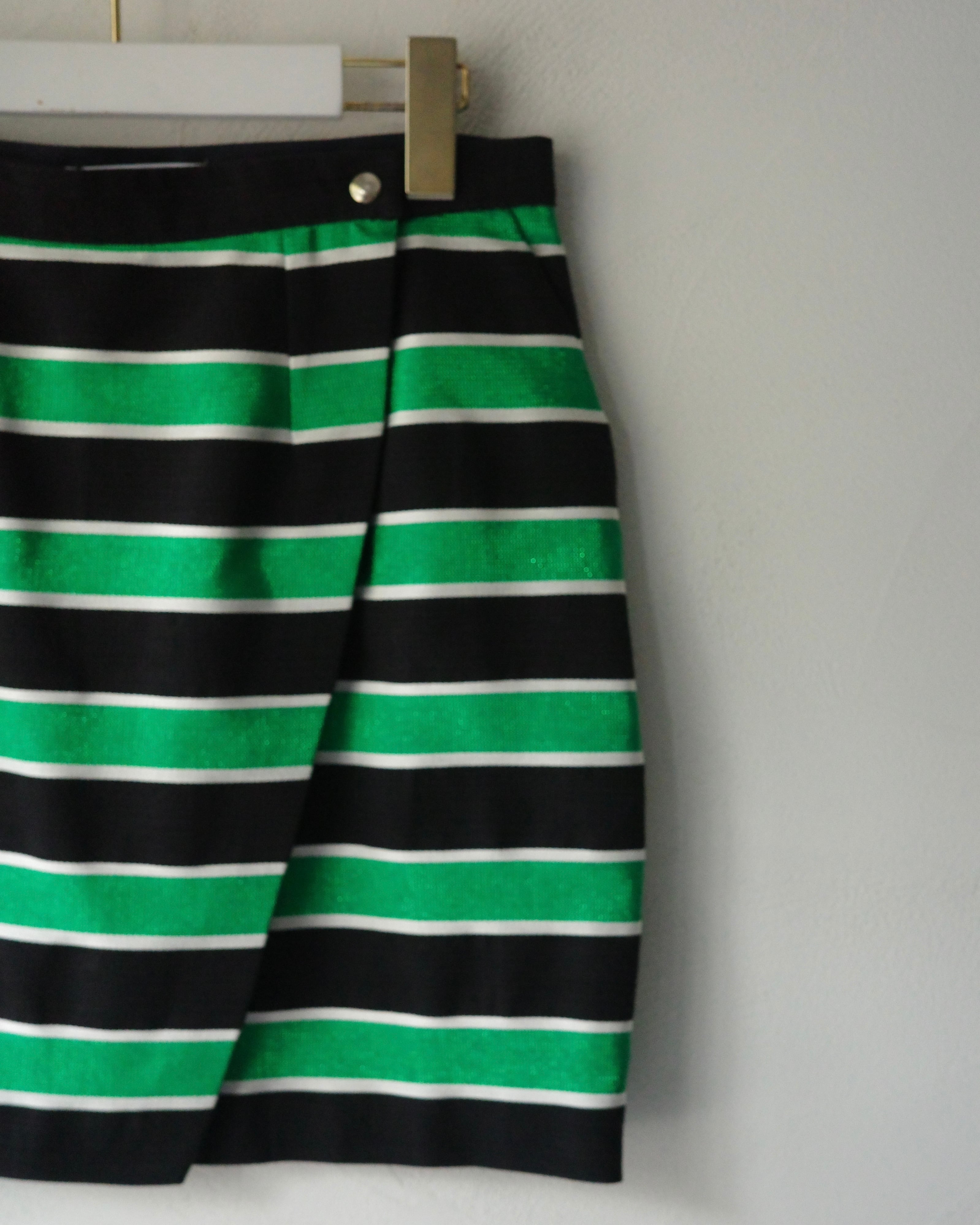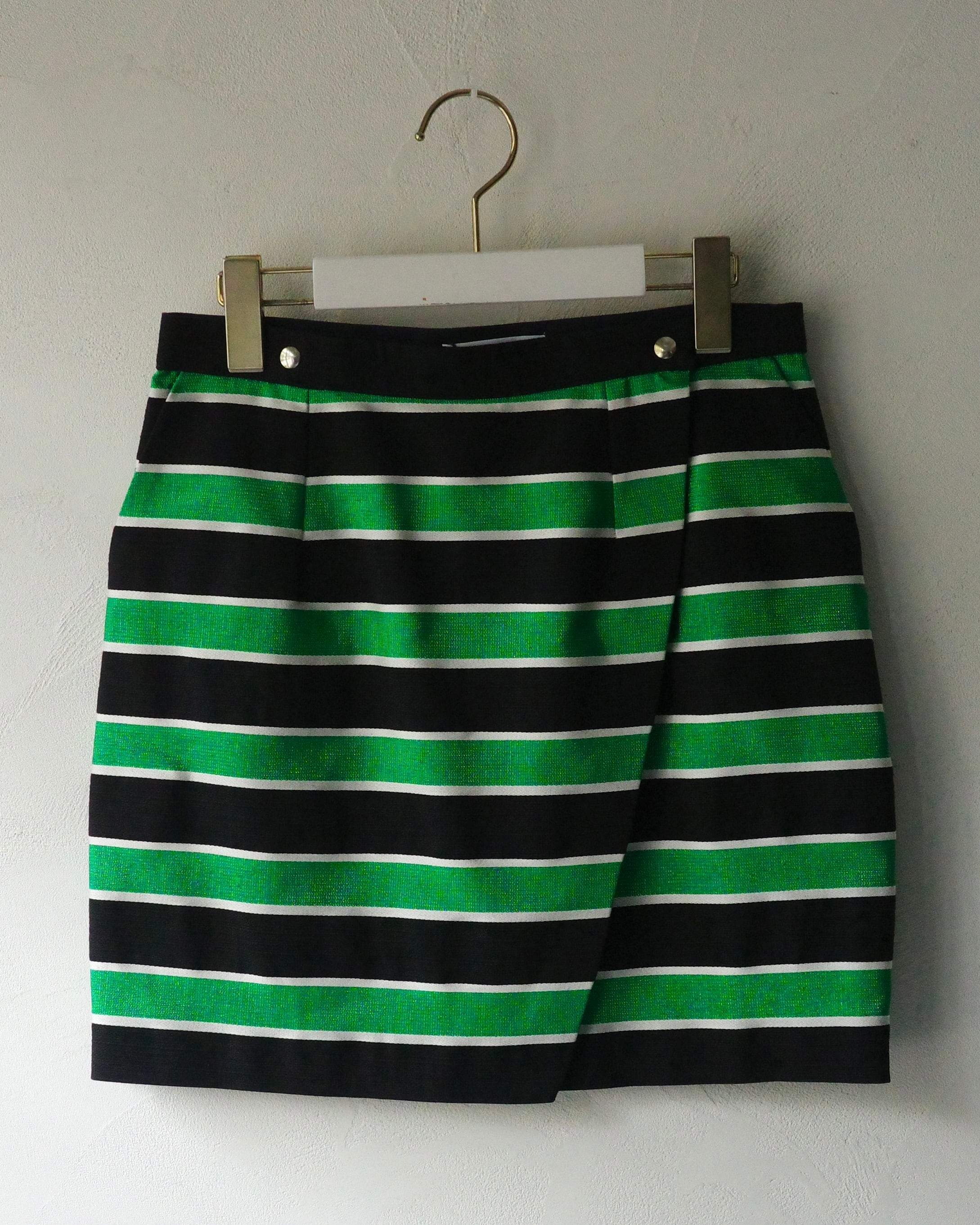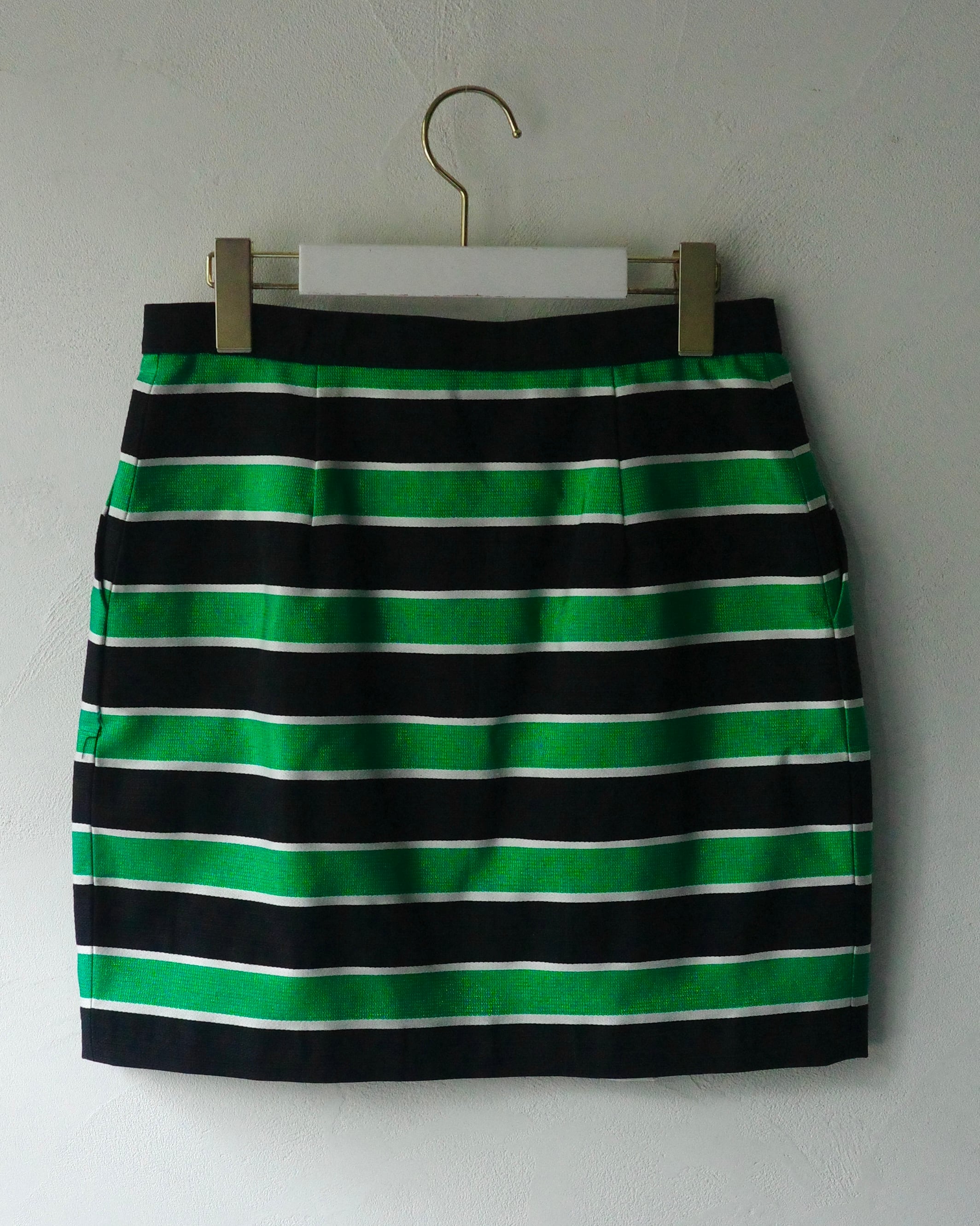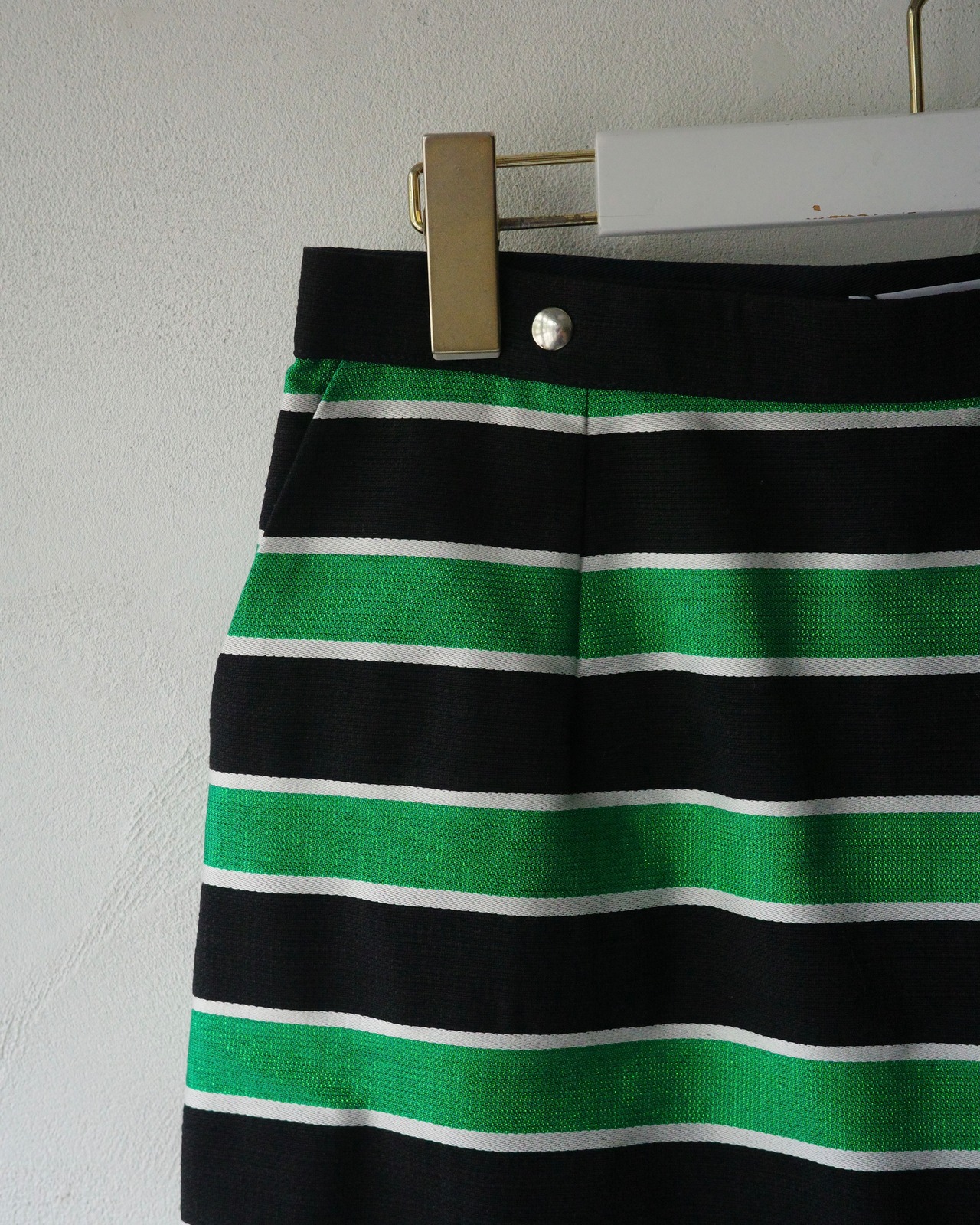 シルクジャガードのボーダー生地が華やかなミニスカート
