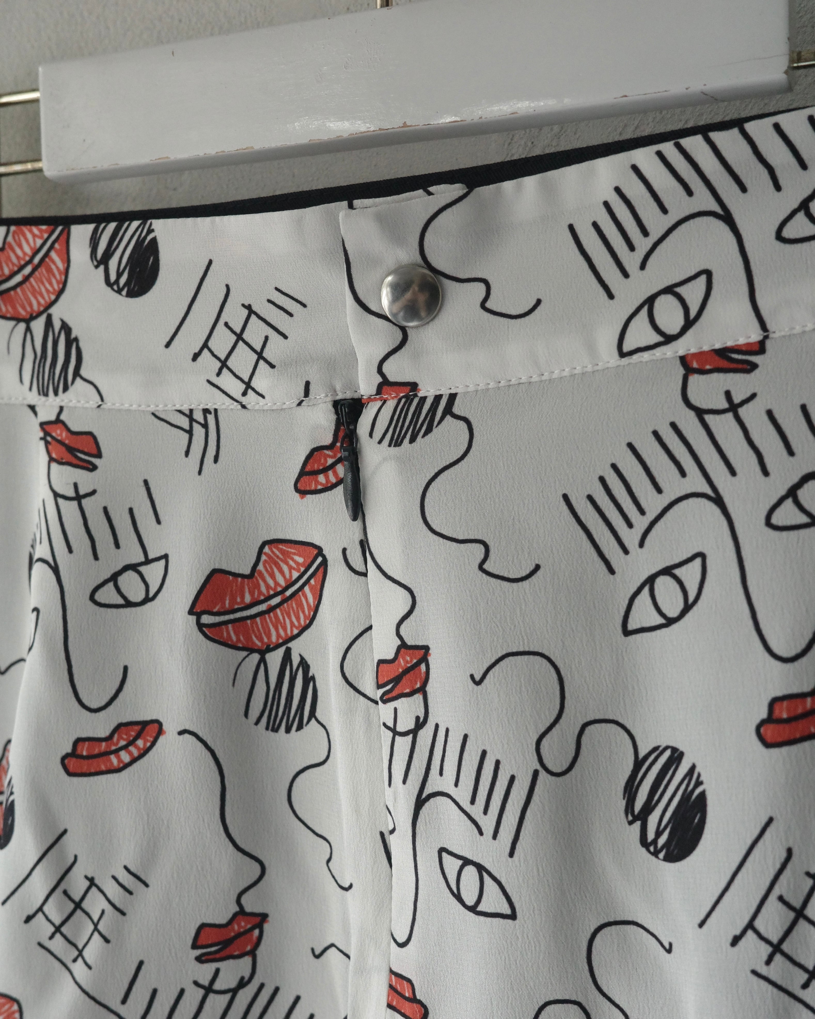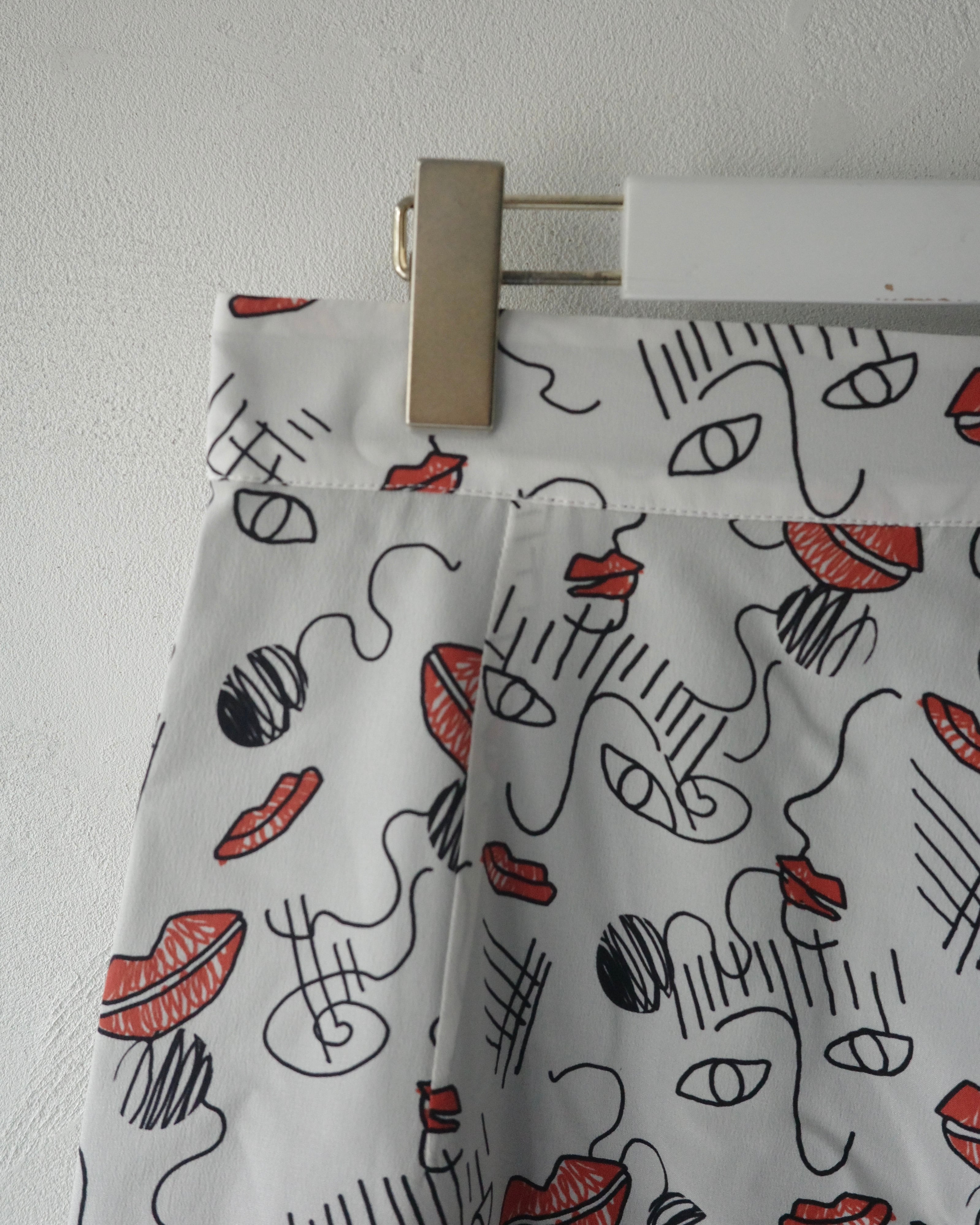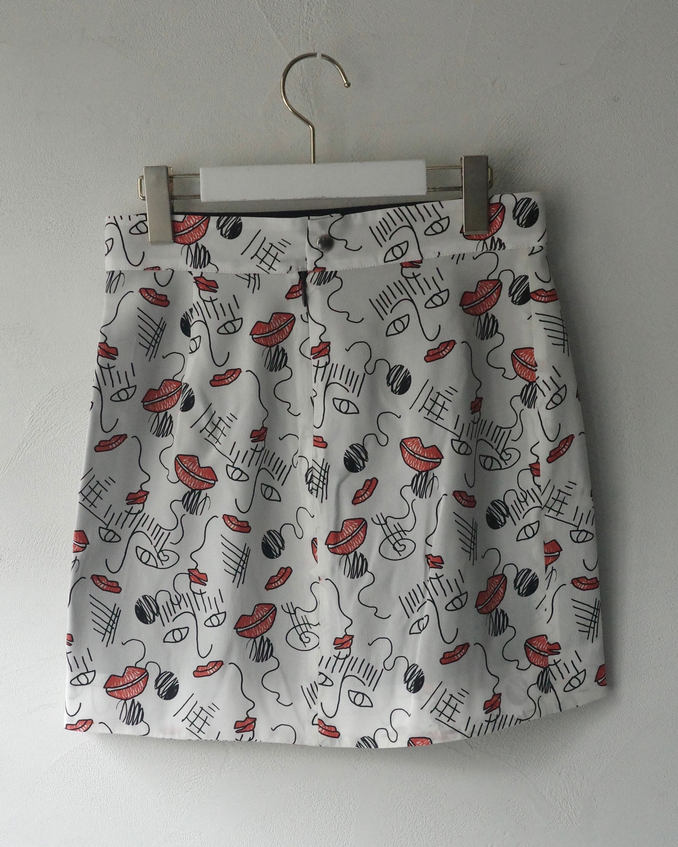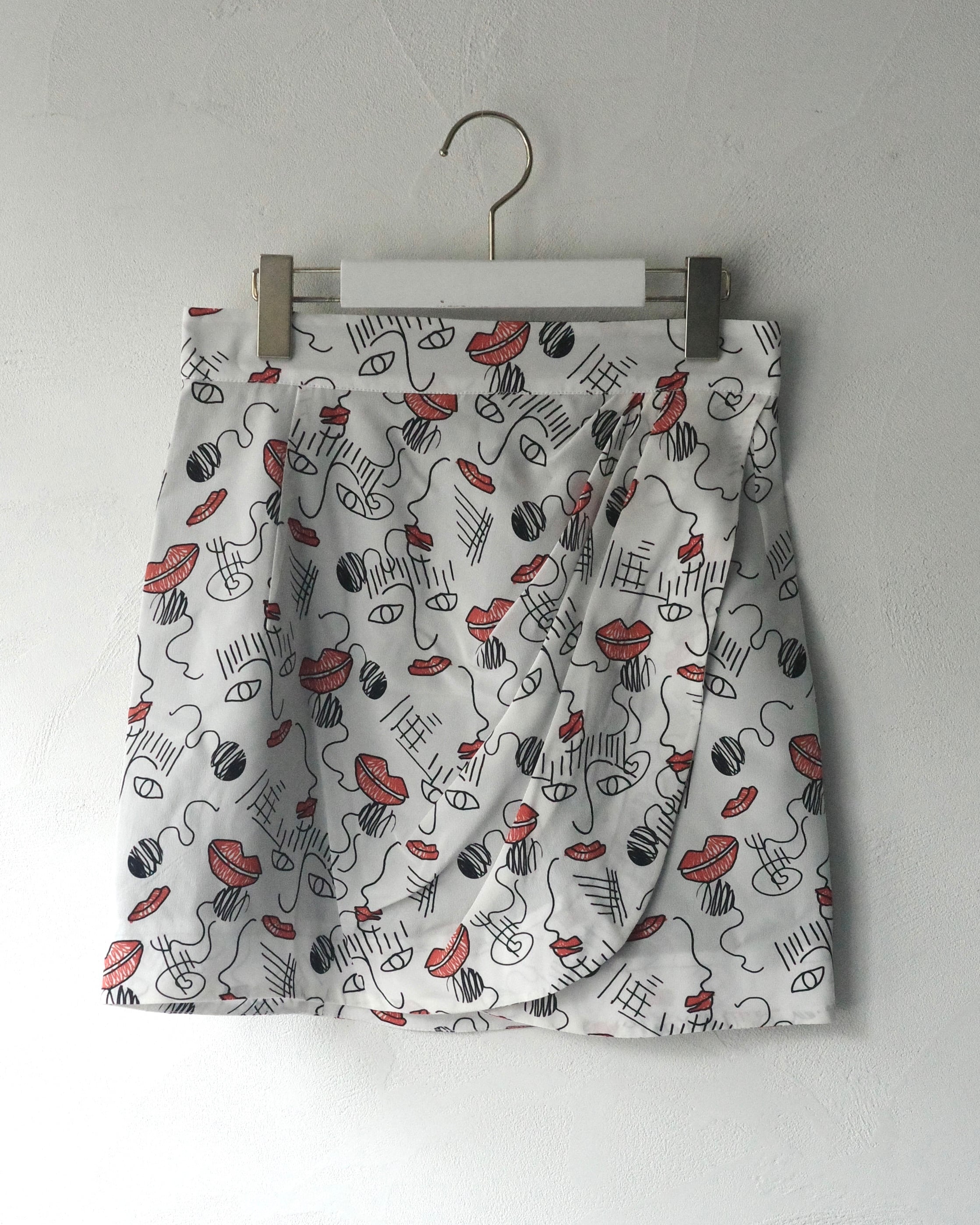 シルクにグラフィックがプリントされた華やかなミニスカート