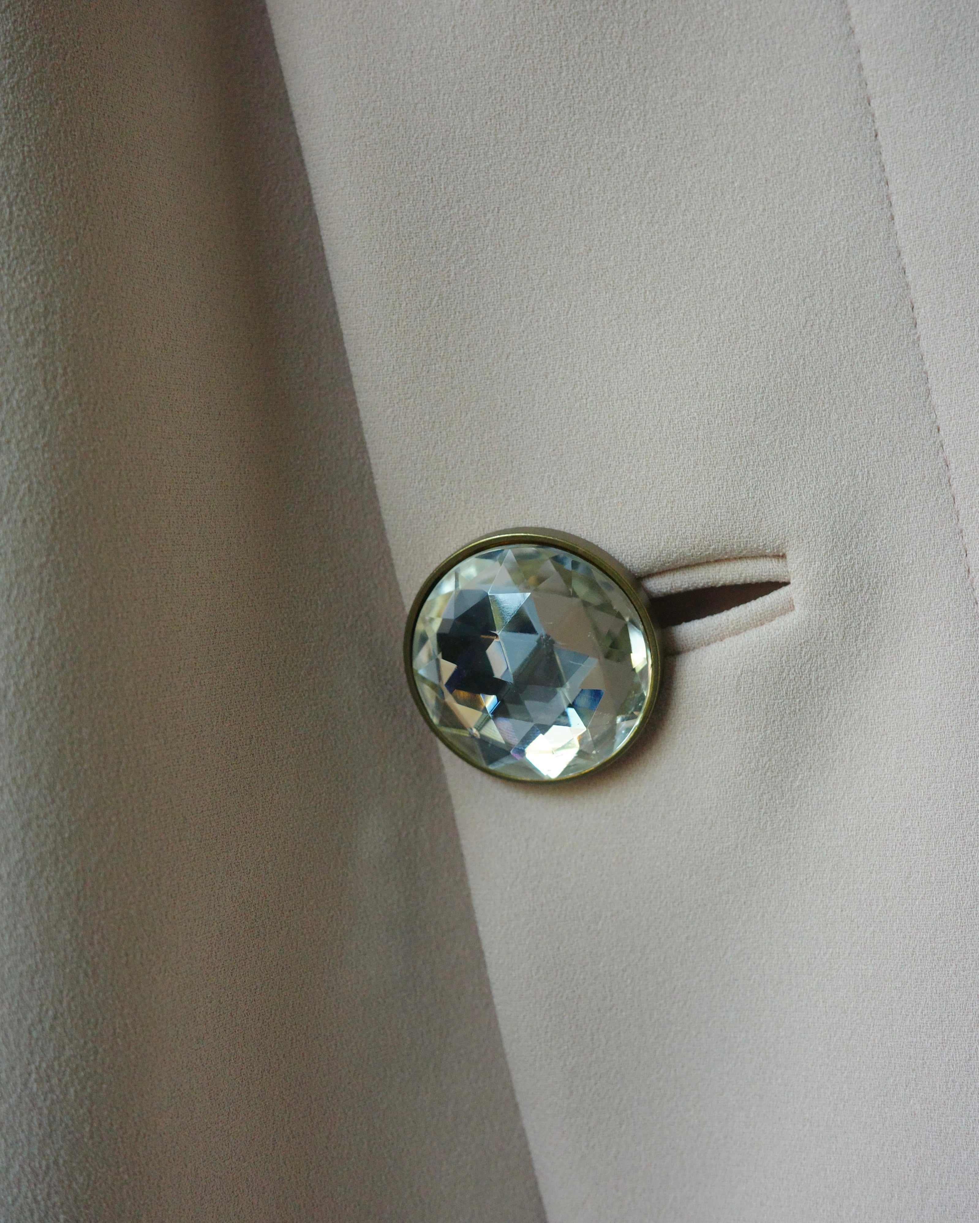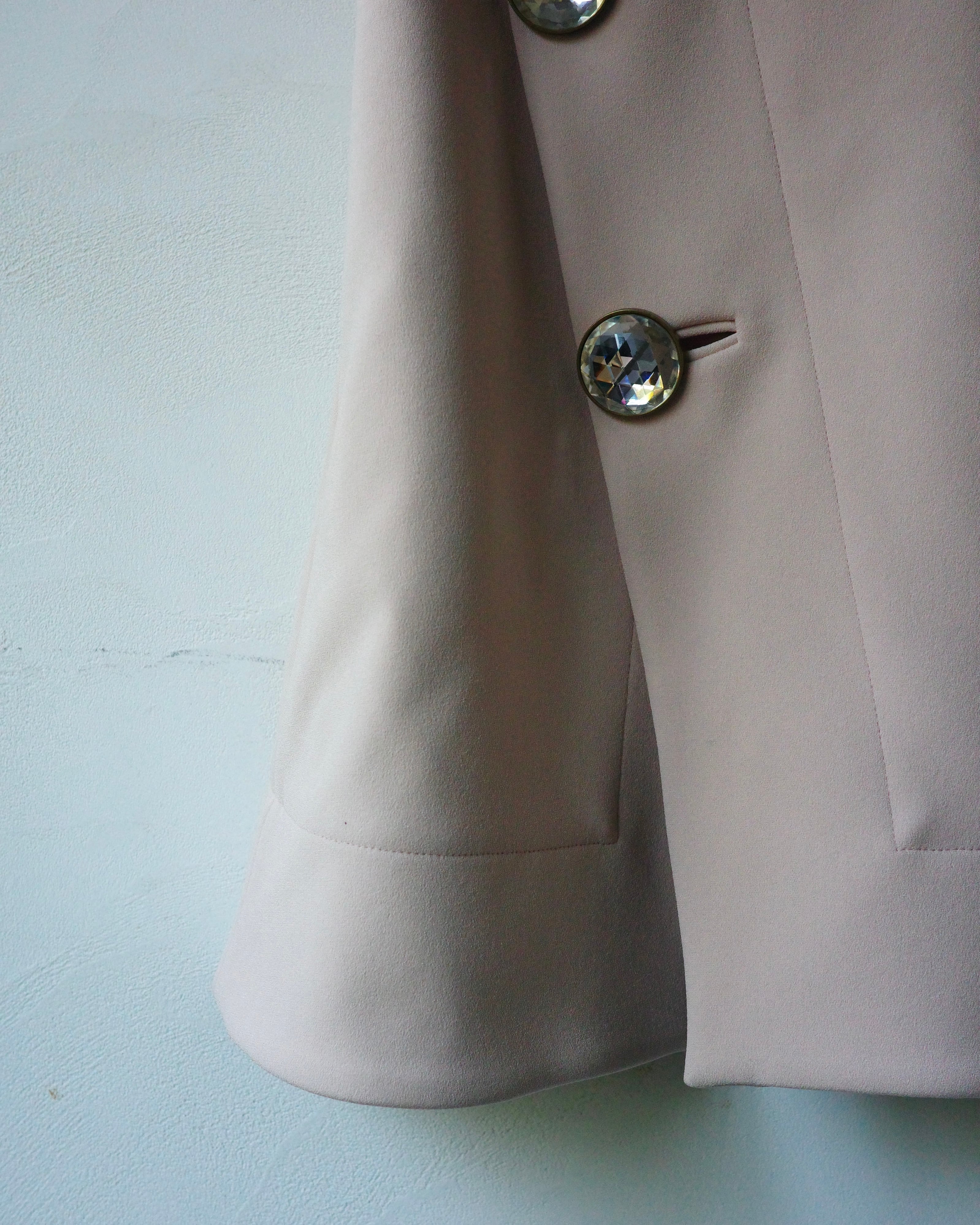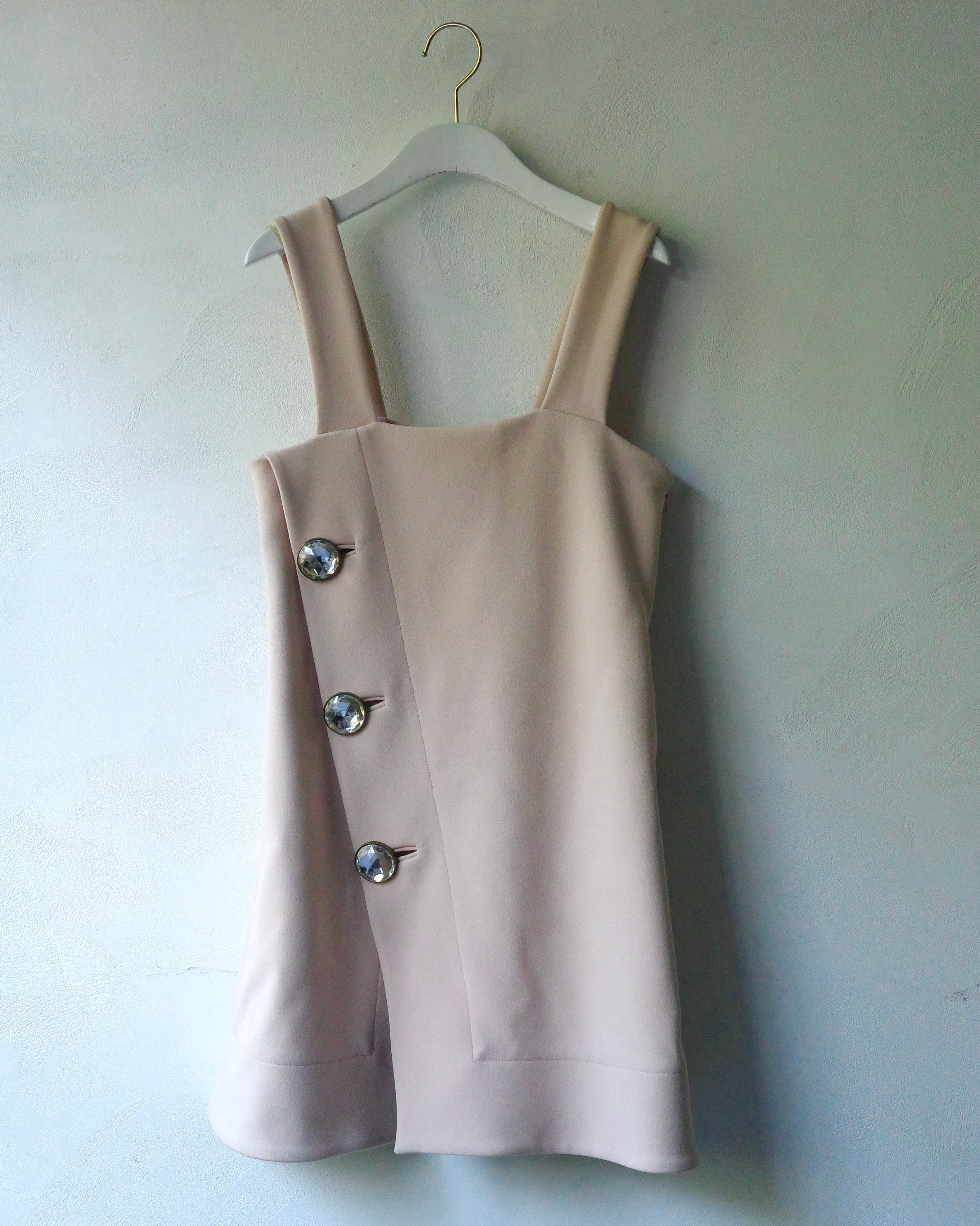 大きなビジューボタンが目を惹くチュニックワンピース。