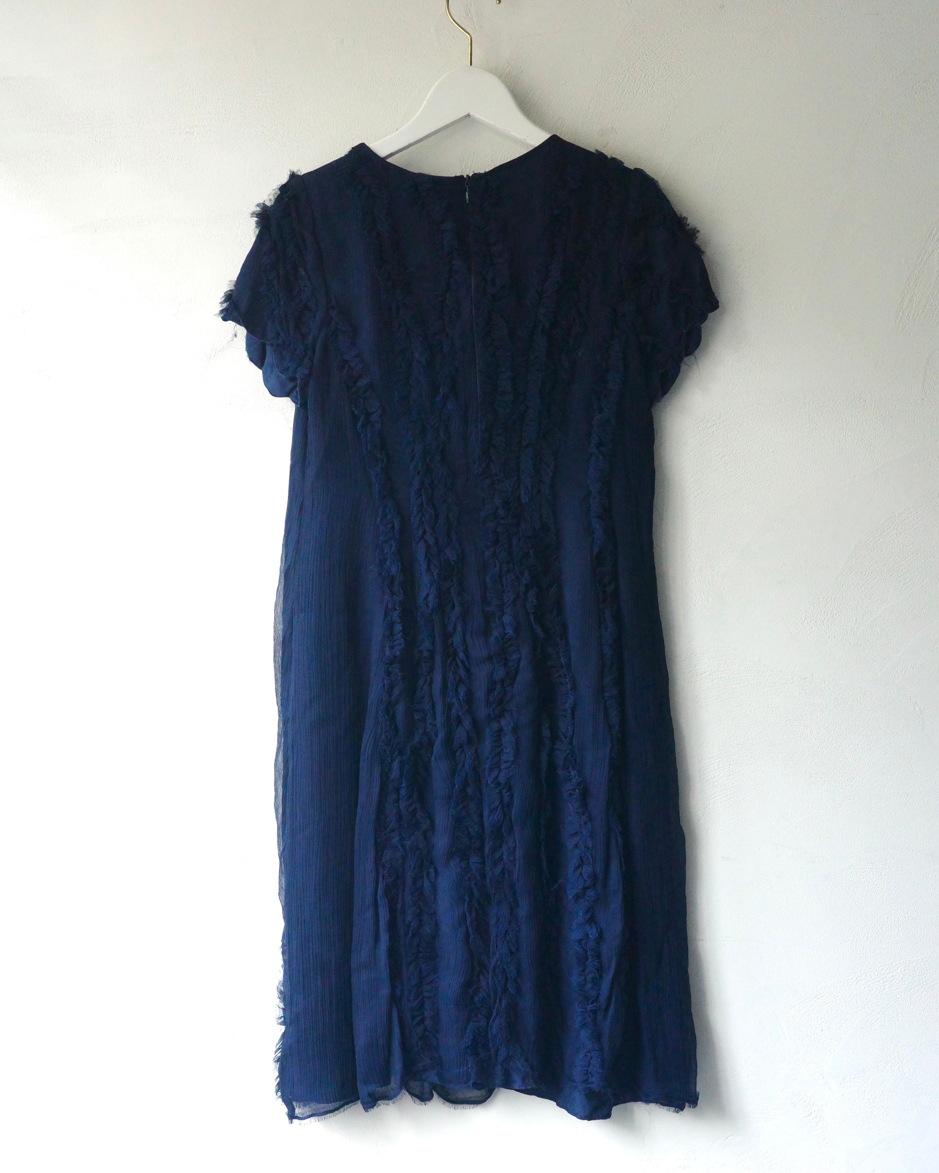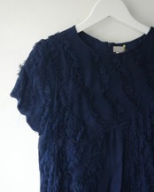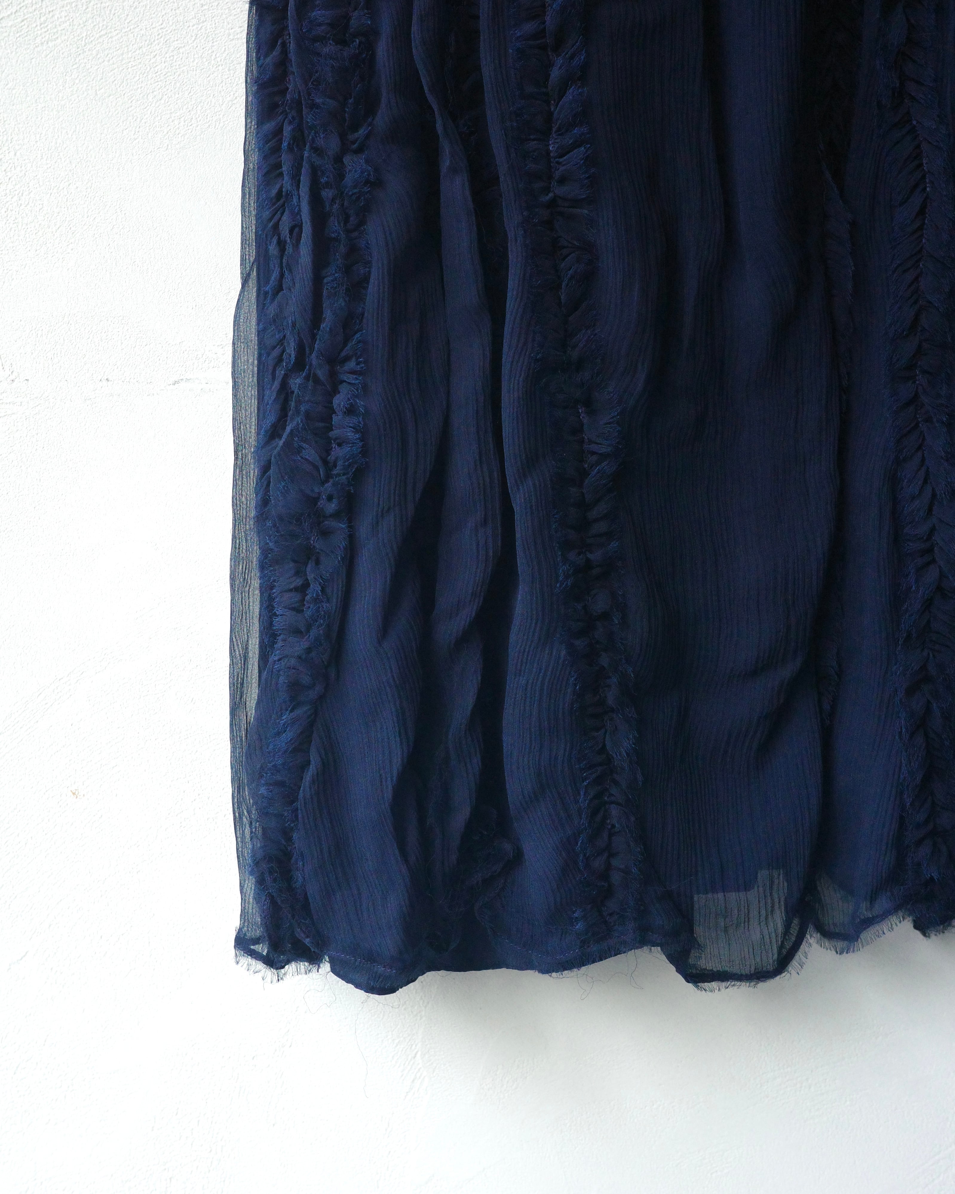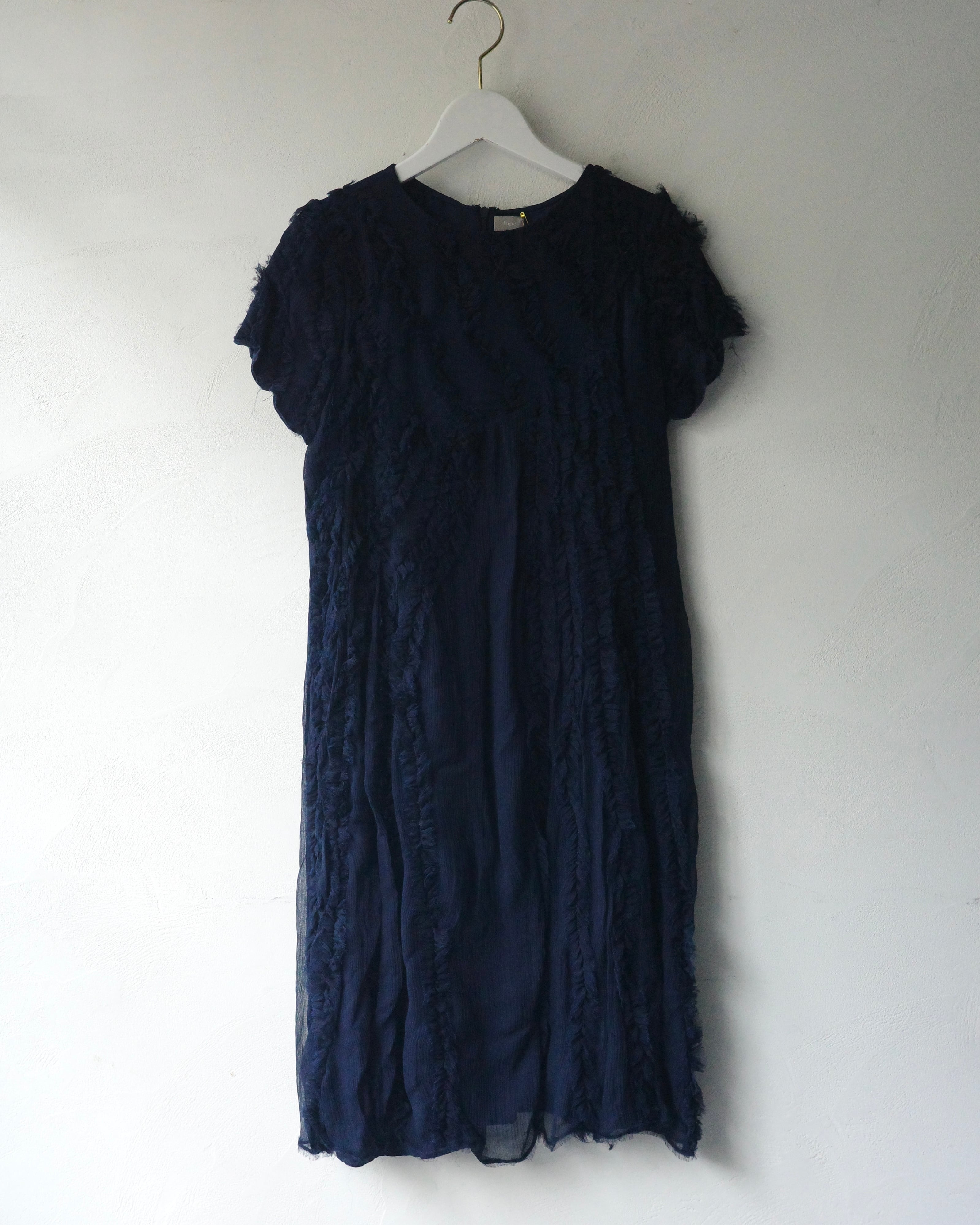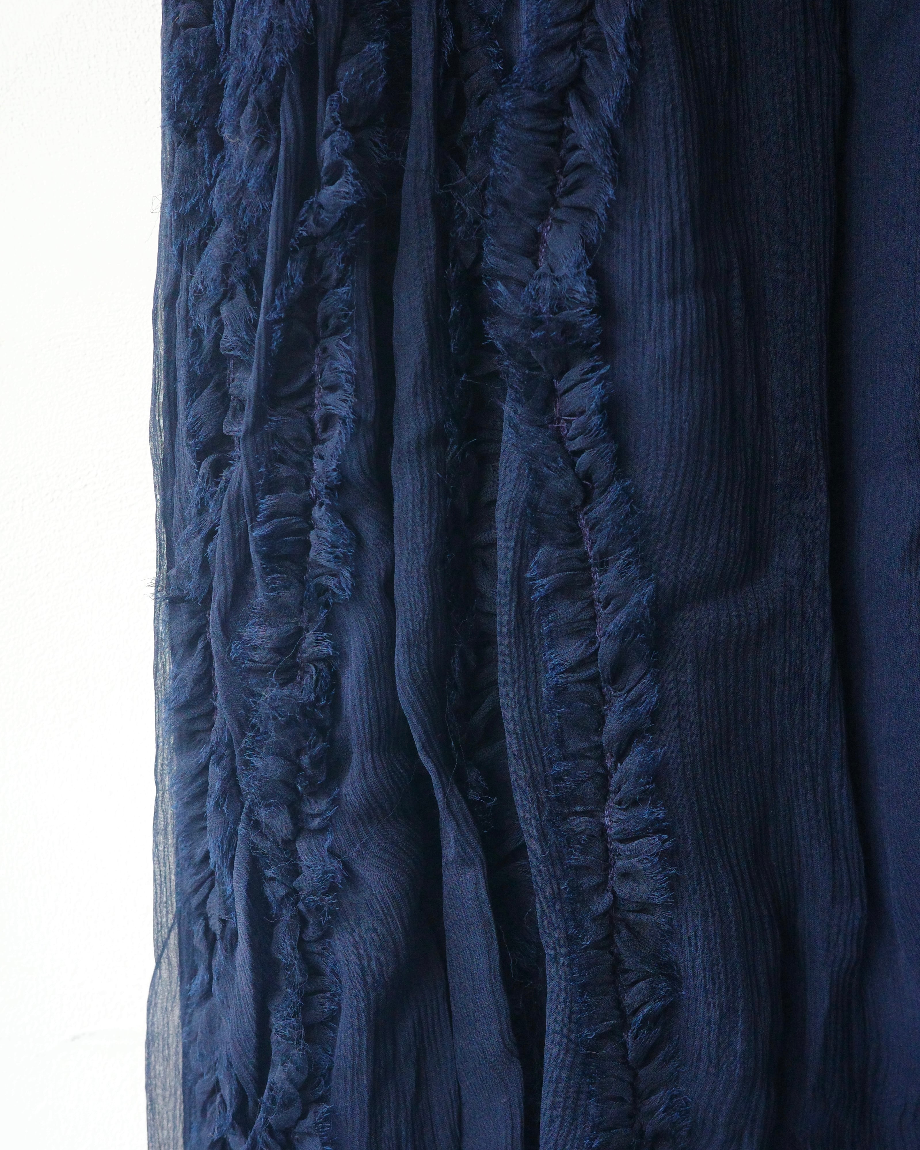 silkオーガンジー素材にフリンジのようにオーガンジーを配置されたドレス。
