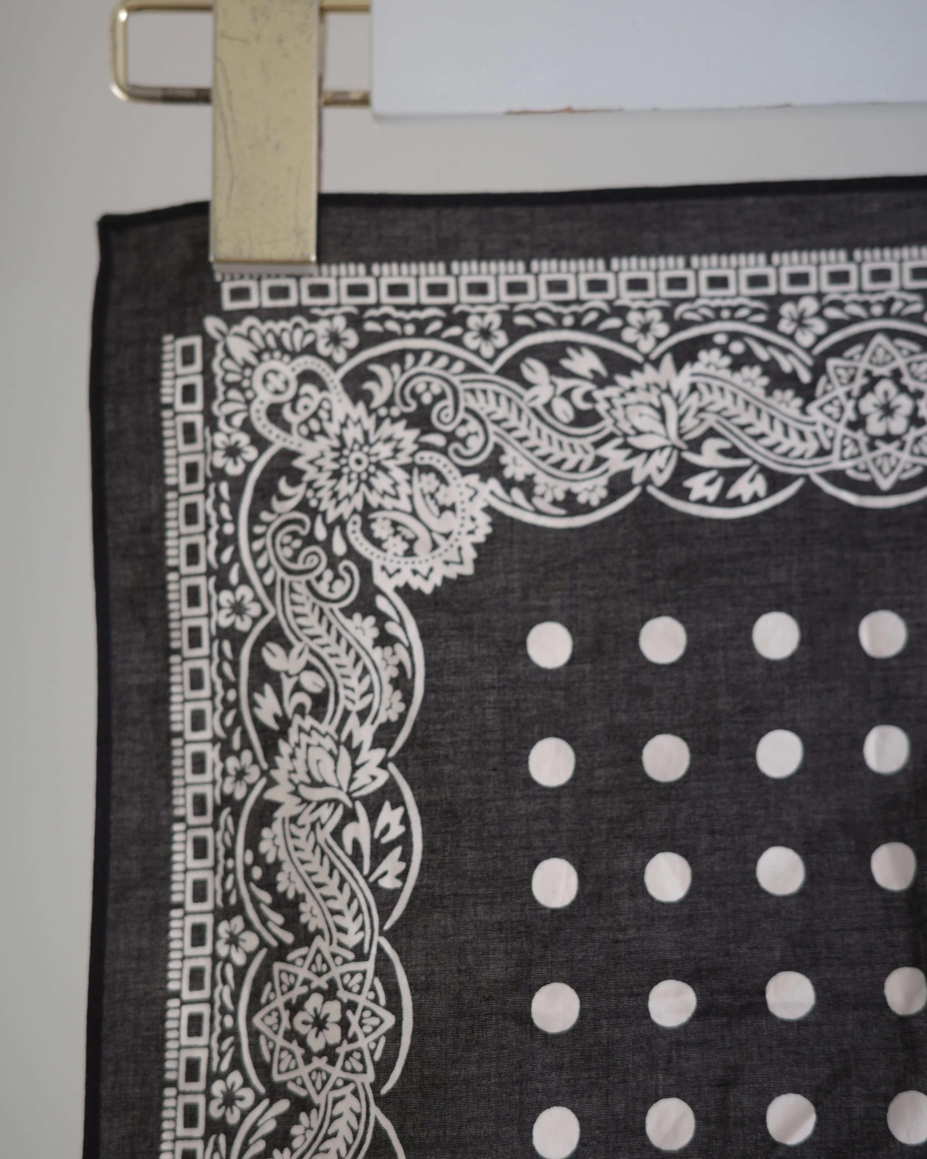 ポケットチーフに、デニムパンツのバッグポケットに、手首やバッグに巻くなど日々のワードローブでの着こなしのポイントになるアイテムです。