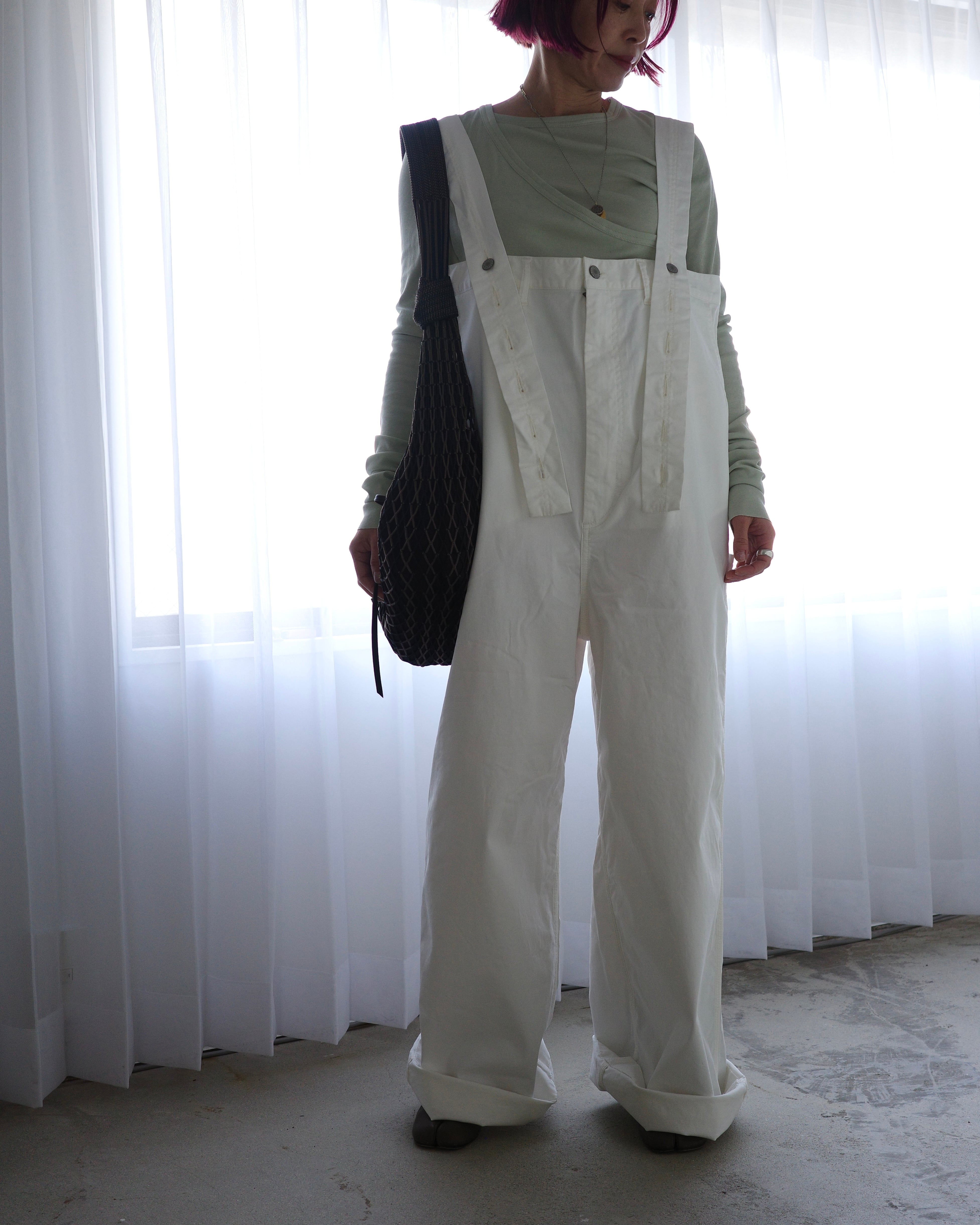 ワークウェアをベースに、力の抜けた佇まいに仕上げたオールインワン。